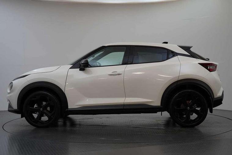12.3" full colour TFT screen combimeter, Drive modes select (Eco, normal and sport), Emergency and breakdown call, Front parking sensor, Idle start/stop system, Intelligent driver alert system, Intelligent lane intervention, Lane departure warning system, Nissan connect 12.3" touch screen entertainment system, Nissan connect nav with TomTom traffic, Nissan connect services, Outside temperature sensor, Power Steering, Rear parking sensor, Stop/start button, Traffic sign recognition, Trip computer, Voice recognition, WiFi connectivity, Wireless Apple CarPlay and Google Android auto, Wireless Smartphone charger, 10 Bose speakers 8 speakers and 2 headrest speakers for driver/passenger seats, 2 X Rear console USB port, Bluetooth system, USB, Aux-in and 12V socket, Bose personal plus audio system, DAB Digital radio, Auto dimming frameless rear view mirror, Automatic hazard signal with emergency stop signal, Body colour door handles, Electrically adjustable door mirrors with integrated indicators, Follow me home headlights, Front and rear electric window with one touch driver window, High beam assist, LED 3rd brake light, LED daytime running lights, LED headlamps, LED rear fog lamp, LED rear lamps, One touch passenger window, Rear privacy glass, Rear side wing doors, Rear wiper, Roof spoiler, Shark fin roof antenna in solid Black, Solid black door mirrors, Three blink turn signal, 3 height adjustable rear headrests, 3 seat bench in 2nd row, 60/40 split folding rear seat, Card holder on driver sunvisor, Door ambient lighting, Driver seat back pocket, Driver side rear coat hanger, Driver/passenger sunvisors and vanity mirrors, Front and rear cabin lights, Front armrest, Front door pockets with bottle holders, Front head restraints, Front/rear passenger grab handles, Gear console ambient circle lighting, Height adjustable driver's seat, Internal chrome door handles, Luggage board, Luggage space lighting, Monoform sporty seats, Multifunction steering wheel, Passenger seat back pocket, PVC fabric upholstery, Rear door bottle holders, Single front passenger seat, Smooth synthetic leather steering wheel, Steering wheel mounted gearshift paddles, Synthetic leather kneepad, Synthetic leather shift knob, Telescopic steering wheel adjustment, Two cupholders in front centre console, Two rear isofix child seat anchorage points with top tether, Welcome light and console tray ambient lighting, Comfort pack - Juke, Heat pack with height adjustable passenger seats - Juke, ProPilot pack - Juke Auto, ABS with EBD and brake assist, Active ride control, Active Trace Control, Driver and passenger airbags, Driver and passenger side airbags, Electric handbrake with auto hold function, Electronic Stability Programme (ESP), Front and rear curtain airbags, Height adjustable seatbelts, Hill start assist, Intelligent emergency braking with pedestrian and cyclist recognition, Rear door child safety locks, Seatbelt reminder for driver/front passenger and rear seats, Three 3 point rear seatbelts, Traction control, Tyre pressure monitoring system, VDC Dynamic Vehicle Control, Alarm, Immobiliser, Intelligent key and start push button with walk away lock and approach unlock functions, Remote central locking, 19" Alloy wheels, Tyre puncture repair kit,