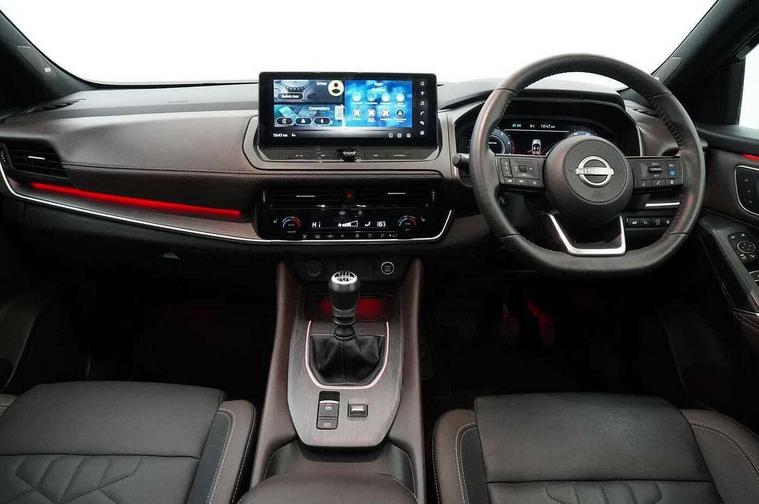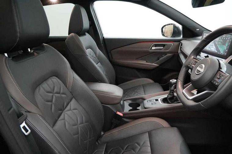 2 front USB-C ports, 2 rear USB-C ports, 360 degree Intelligent around view monitor with moving object detection, Advanced windscreen head up display, Blind spot intervention, Blind spot warning, Drive assist, Drive assist custom mode, Drive modes (sport, normal, eco), Driver drowsiness and attention warning, Electric speed sensitive power steering, Emergency and breakdown call, Emergency lane keep assist, Emergency Stop Signal (ESS), Engine start/stop button, Event data recorder, Front and rear parking sensors, Full Digital 12.3" TFT Digital Combimeter, Google virtual personal assistance, Hands free power tailgate, Idle stop/start system, In-car WIFI hotspot, Intelligent Cruise control (ICC), Intelligent forward collision warning, Intelligent speed assist, Lane departure warning system, Nissan connect 12.3 inch touchscreen infotainment system, Nissan connect navigation with google maps, Nissan connect services 2.0 (Google Automotive System), Outside temperature sensor, Rear cross traffic alert, Reversing detection, Wireless Apple CarPlay/Android Auto, Wireless charging pad, Limited slip differential, 6 speakers, AM/FM audio system with DAB, Bluetooth audio streaming, Auto dimming frameless rear view mirror, Auto rear wiper when reversing, Body colour mirror caps, Body coloured door handles, Bodyside mouldings, Chrome side window finisher, Electric auto folding door mirrors, Electrically adjustable and heated door mirrors with LED turn indicator, Follow me home headlights, Glossy black bumper inserts and fenders, High beam assist, Intelligent auto headlights, LED 3rd brake light, LED daytime running lights, LED headlights with adaptive driving beam, LED rear lights, LED sequential turn lights, One touch front and rear electric windows with remote opening and closing, One touch passenger window, Partially body coloured bumpers, Rear privacy glass, Rear roof spoiler, Rear side wing doors, Rear styling plate, Reverse tilting door mirrors, Shark fin antenna, Silver roof rails, Splash free rain sensing wipers, Super RED rear LED lights, Super UV and infrared cut glass, Thermaclear heated windscreen, 3 bench rear seats in 2nd row, 3 rear headrests, 60/40 split folding rear seat bench, Chrome interior door handles, Dark headlining, Driver seat back pocket, Dual zone automatic climate control with pollen filter, Fixed Glass roof with electric sunshade, Front door with bottle holders, Heated front seats, Heated steering wheel, Height adjustable front headrests, Leather shift knob, Luggage board system, Luggage space lighting, Multifunction steering wheel, Passenger seat back pocket, Quilted/PVC upholstery, Rear door bottle holders, RGB ambient light (Full area coverage), Single front passenger seat, Smooth leather steering wheel, Tilt/telescopic adjustable steering wheel, Two rear isofix child seat anchorage points with top tether, 3x3 point rear seatbelt pretensioners + load limiters, Autonomous emergency braking, Child locks on rear doors, Curtain and front side, far side airbags, Driver and passenger airbags, Driver, passenger and 2nd row rear seat belt reminder, Electric handbrake with auto hold function, Front seatbelt pretensioners + load limiters, Height adjustable front seatbelts, Hill start assist, intelligent front emergency braking, Rear automatic braking, Tyre pressure monitoring system, Vehicle dynamic control, Engine immobiliser, Intelligent key with walk away lock and approach unlock functions, Remote central door locking with deadlocking, Thatcham alarm, 19" Diamond cut alloy wheels, Tyre puncture repair kit,