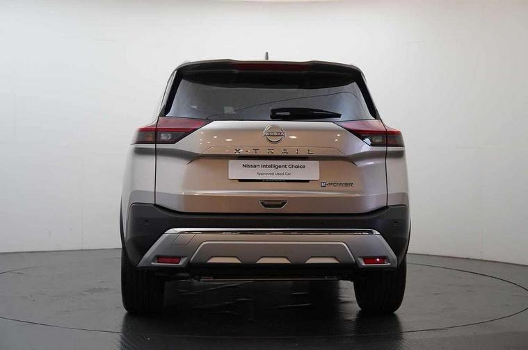Advanced 10.8" head up display, Android auto wireless, Blind spot warning, Drive assist custom mode, Drive modes (sport, normal, eco), Driver drowsiness and attention warning, e-Pedal step, Electric speed sensitive power steering, Emergency and breakdown call, Event data recorder, Front and rear parking sensors, Full Digital 12.3" TFT Digital Combimeter, Google maps services - search, weather, 3D maps and Google street view, Hands free power tailgate, Idle stop/start system, Intelligent around view monitor, Intelligent Cruise control (ICC), Intelligent driver alert system, Intelligent forward collision warning, Intelligent lane departure warning, Intelligent lane intervention, Intelligent lane keep assist, Lane departure prevention, Maximum speed limiter, Moving object detection, Nissan connect 12.3 inch touchscreen infotainment system, Nissan connect nav with TomTom traffic, Propilot assist with Navi-Link, ProPilot park, Push button starter, Rear cross traffic alert, Rear view camera, Remote control services - door locks, lights, horn and car locator, Reversing detection, Telematics - notifications and connectivity services, Traffic jam pilot, Traffic sign recognition with legal speed adjustment, Trip computer, Virtual personal assistant and firmware over the air capability, Wireless apple carplay, Wireless charging pad, 6 speakers, AM/FM audio system with DAB, Bluetooth audio streaming, Front USB connections (Type-A and Type-C), Rear USB charging only ports 2 Type-C, Auto rear wiper when reversing, Body colour mirror caps, Body coloured door handles, Bodyside mouldings, Chrome side window finisher, e-POWER badging, Electric auto folding door mirrors, Electric sunroof/sunshade, Electrically adjustable and heated door mirrors, Follow me home headlights, High beam assist, Intelligent auto headlights, LED 3rd brake light, LED daytime running lights, LED front fog lights, LED headlights with adaptive driving beam, LED rear lights, One touch front and rear electric windows with remote opening and closing, Partially body coloured bumpers, Rain sensing wipers, Rear privacy glass, Rear reversing light (bulb lighting), Rear roof spoiler, Rear side wing doors, Rear styling plate, Roof rails, Shark fin antenna, Smart rear view mirror with auto dimming, Splash free wipers, Super UV and infrared cut glass, Thermaclear heated windscreen, Three blink turn signal, 12v power socket in dashboard and luggage, 3 bench rear seats in 2nd row, 3 rear headrests, 40/20/40 folding rear seats with recline, Butteryfly console, Chrome interior door handles, Driver and front passenger sunvisors with illuminated vanity mirrors, Driver seat back pocket, Electric adjustable 2 way lumbar support for driver, Electric adjustable 2 way lumbar support for passenger seat, Electric adjustable driver and passenger seat with memory function, Fore/Aft adjustable rear seats, Front and rear heated seats, Front centre console and armrest, Front cupholders, Front door with bottle holders, Heated steering wheel, Height adjustable driver's seat, Height adjustable front headrests, Height adjustable passenger seat, Leather shift knob, Leather steering wheel, Luggage board system, Luggage space lighting, Multifunction steering wheel, Passenger seat back pocket, Rear armrest with 2 cupholders, Rear door bottle holders, Single front passenger seat, Sliding second row seats, Steering column mounted gear shift paddles, Synthetic leather monoform upholstery, Tilt/telescopic adjustable steering wheel, Tri zone automatic climate control with pollen filter, Two rear isofix child seat anchorage points with top tether, Sky pack - X-Trail, 3x3 point rear seatbelt pretensioners + load limiters, ABS with EBD and brake assist, Active brake limited slip, Auto hold function, Child locks on rear doors, Curtain and front side, far side airbags, Driver and passenger airbags, Driver, passenger and 2nd row rear seat belt reminder, Electronic parking brake, Front seatbelt pretensioners + load limiters, Height adjustable front seatbelts, Hill start assist, Intelligent blind spot intervention, Intelligent front emergency braking with pedestrian, cyclist recognition and junction assist, Intelligent rear automatic braking, Tyre pressure monitoring system, Vehicle dynamic control, Approach unlock and walk away lock, Engine immobiliser, Intelligent Key, Remote central door locking with deadlocking, Thatcham Cat.1 alarm, 19" Diamond cut alloy wheels, Tyre puncture repair kit,