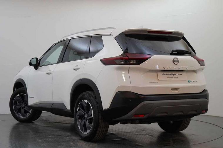 Android auto wireless, Blind spot warning, Drive assist custom mode, Drive modes (sport, normal, eco, snow, off-road), Driver drowsiness and attention warning, e-Pedal step, Electric speed sensitive power steering, Emergency and breakdown call, Event data recorder, Front and rear parking sensors, Full Digital 12.3" TFT Digital Combimeter, Google maps services - search, weather, 3D maps and Google street view, Hands free power tailgate, Idle stop/start system, Intelligent around view monitor, Intelligent Cruise control (ICC), Intelligent driver alert system, Intelligent forward collision warning, Intelligent lane departure warning, Intelligent lane intervention, Intelligent lane keep assist, Maximum speed limiter, Moving object detection, Nissan connect 12.3 inch touchscreen infotainment system, Nissan connect nav with TomTom traffic, Propilot assist with Navi-Link, Push button starter, Rear cross traffic alert, Rear view camera, Remote control services - door locks, lights, horn and car locator, Reversing detection, Telematics - notifications and connectivity services, Traffic jam pilot, Traffic sign recognition with legal speed adjustment, Trip computer, Virtual personal assistant and firmware over the air capability, Wireless apple carplay, Wireless charging pad, 6 speakers, AM/FM audio system with DAB, Bluetooth audio streaming, Front USB connections (Type-A and Type-C), Rear USB charging only ports 2 Type-C, Auto dimming rear view mirror, Auto rear wiper when reversing, Body colour mirror caps, Body coloured door handles, Bodyside mouldings, Chrome side window finisher, e-4ORCE badging, e-POWER badging, Electric auto folding door mirrors, Electrically adjustable and heated door mirrors, Follow me home headlights, High beam assist, Intelligent auto headlights, LED 3rd brake light, LED daytime running lights, LED Headlights, LED rear lights, One touch front and rear electric windows with remote opening and closing, Partially body coloured bumpers, Rain sensing wipers, Rear reversing light (bulb lighting), Rear roof spoiler, Rear side wing doors, Rear styling plate, Shark fin antenna, Splash free wipers, Three blink turn signal, 12v power socket in dashboard and luggage, 2 headrests in 3rd row, 2 seat bench in 3rd row, 2x 3-point seat belts in 3rd row, 3 bench rear seats in 2nd row, 3 rear headrests, 40/20/40 folding rear seats with recline, 50/50 split/folding 3rd row of seats, Butteryfly console, Chrome interior door handles, Cloth monoform upholstery, Cup holders in 3rd row, Driver and front passenger sunvisors with illuminated vanity mirrors, Driver seat back pocket, Dual zone automatic climate control with pollen filter, Fore/Aft adjustable rear seats, Front centre console and armrest, Front cupholders, Front door with bottle holders, Height adjustable driver's seat, Height adjustable front headrests, Height adjustable passenger seat, Leather shift knob, Leather steering wheel, Luggage board system, Luggage space lighting, Multifunction steering wheel, Passenger seat back pocket, Rear armrest with 2 cupholders, Rear door bottle holders, Single front passenger seat, Sliding second row seats, Tilt/telescopic adjustable steering wheel, Two rear isofix child seat anchorage points with top tether, 3rd row seat belts reminder, 3x3 point rear seatbelt pretensioners + load limiters, ABS with EBD and brake assist, Active brake limited slip, Auto hold function, Child locks on rear doors, Curtain and front side, far side airbags, Driver and passenger airbags, Driver, passenger and 2nd row rear seat belt reminder, Electronic parking brake, Front seatbelt pretensioners + load limiters, Height adjustable front seatbelts, Hill start assist, Intelligent blind spot intervention, Intelligent front emergency braking with pedestrian, cyclist recognition and junction assist, Intelligent rear automatic braking, Tyre pressure monitoring system, Vehicle dynamic control, Approach unlock and walk away lock, Engine immobiliser, Intelligent Key, Remote central door locking with deadlocking, Thatcham Cat.1 alarm, 18" Diamond cut alloy wheels, Tyre puncture repair kit,