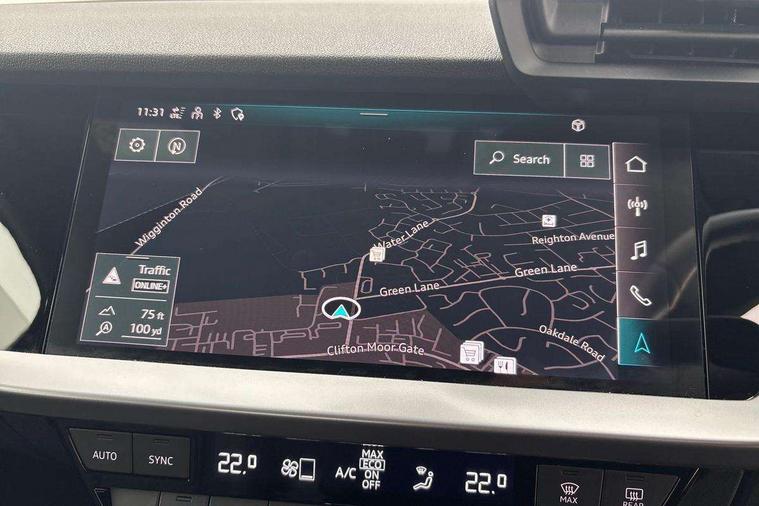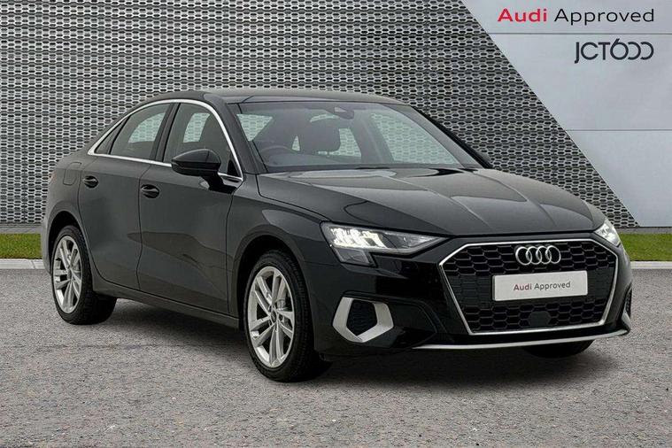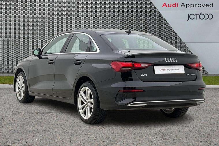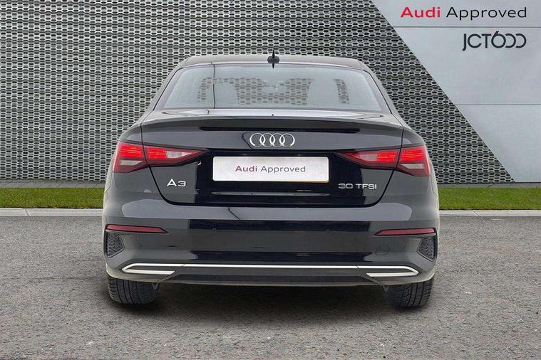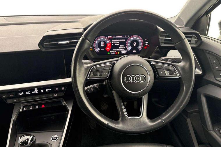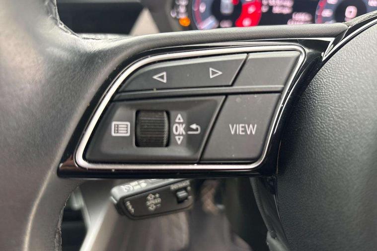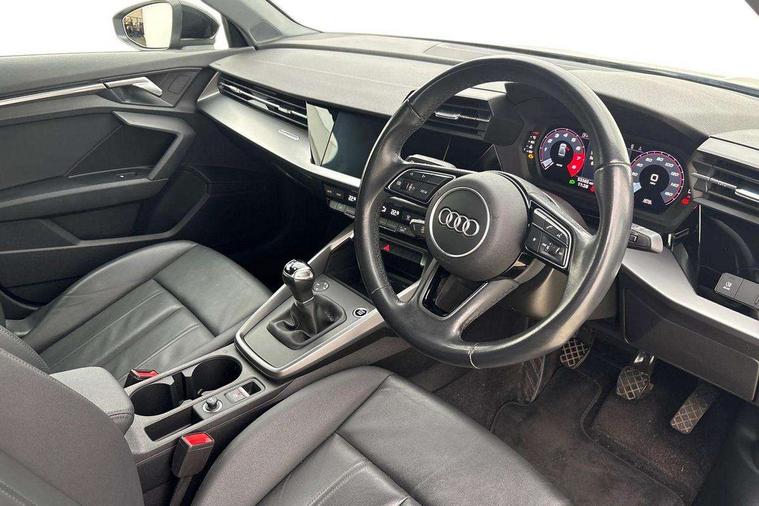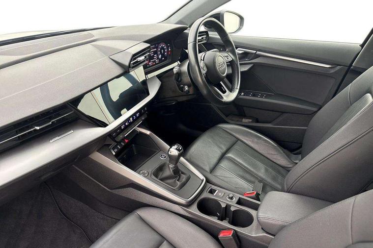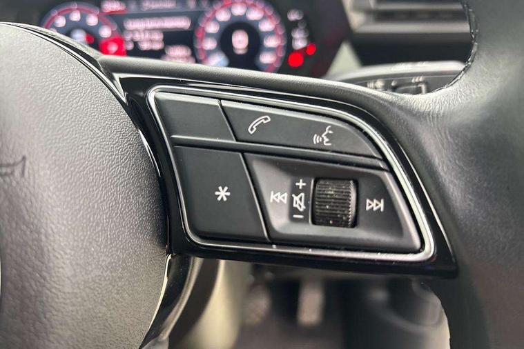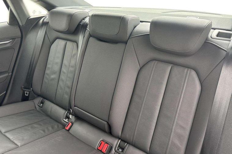 Audi connect emergency call and service, Audi drive select (Auto, Comfort, Dynamic and Individual), Audi smartphone interface, Audi Virtual Cockpit - 10.25" digital and colour instrument cluster, Automatic start/stop system with recuperation, Bluetooth interface, Collision avoidance assistant, Cruise control + speed limiter, Electromechanical power speed sensitive steering, Lane departure warning system, MMI Navigation Plus with high resolution 10.1" colour touch screen display, Rear parking sensors, Service indicator, Voice control system with natural language interaction, Standard suspension, 2x USB Type C ports (for charging and data transfer), 6 passive loudspeakers, CD player, DAB Digital radio, 3rd brake light, Acoustic glass windscreen, Aluminium window trim, Auto dimming frameless rear view mirror, Body colour exterior mirrors, Body colour roof spoiler, Electrically adjustable/heated/folding/auto dimming door mirrors with integrated LED indications + kerb view function for passenger side, Front electric windows, LED daytime running lights, LED headlights and halogen rear lights, Light and rain sensors, Model and engine designation badges at rear, Rear boot, Rear electric windows, Rear side wing doors, Rear window, rear door windows and rear side windows in clear glass, 12V socket and storage compartment in front centre console, 3 seat bench in 2nd row, 3 spoke leather multifunction steering wheel, 40/20/40 split folding rear seat bench with cupholder, Dual zone electronic climate control, Front and rear headrests, Front centre armrest, Front door sill trims with aluminium inlay, Front/rear floor mats, Height and reach adjustable steering wheel, Interior lighting - Front and rear roof module including reading lights, glove compartment light and right hand side, Luggage compartment floor covering, Manual boot compartment lid, Manually adjustable front seats, Seat side bolsters, Single front passenger seat, Steel grey cloth headlining, Twin leather upholstery, Aluminium interior elements pack - A3, Sport styling pack - A3 Saloon, 3x3 point rear seat belts, Driver and front passenger airbag with passenger airbag deactivation, Electronic Stabilisation Control (ESC) including ABS, ASR and EDL, First aid kit with warning triangle and 2 safety vests, Front side airbags with head airbags and interaction airbag, Hill hold assist, Pre-sense front with pedestrian and cyclist detection, Seatbelt monitoring, Tyre pressure loss indicator, Anti theft alarm, Anti-theft wheel bolts, Electronically operated child locks, Immobiliser, Remote control central locking, Aluminium air vent surrounds, Aluminium trim elements, Inlays with silk effect paint in platinum grey,