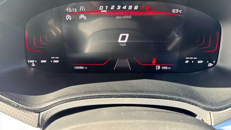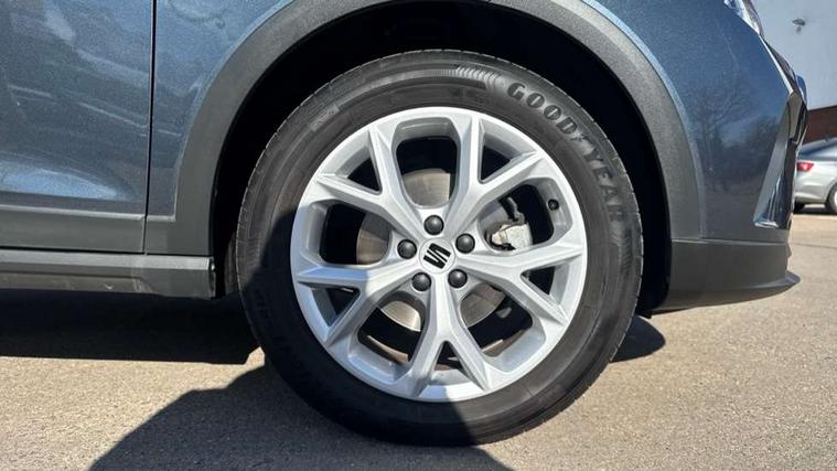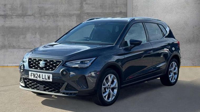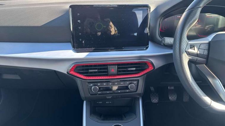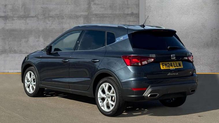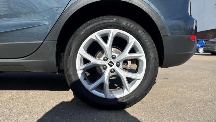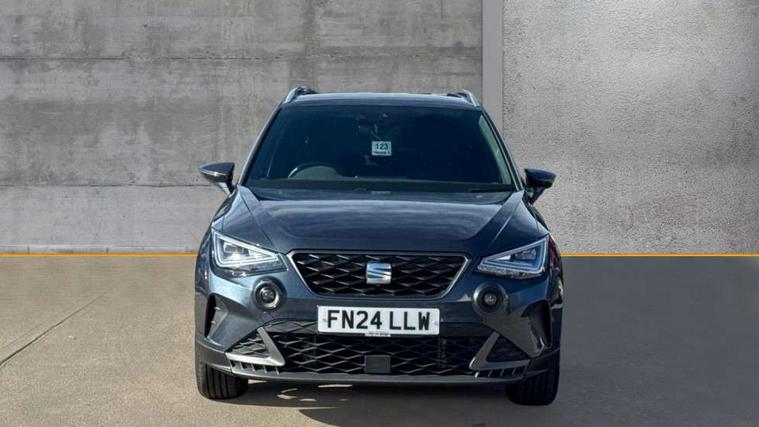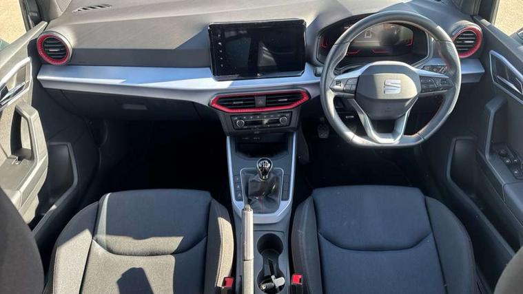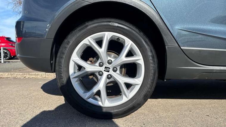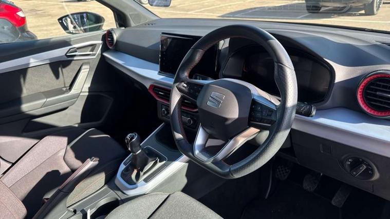 'Lights On' Reminder warning buzzer, 8" Digital cockpit, Digital clock, E-call, Electric speed sensitive power steering, Full Link Smartphone Integration with Mirror Link, Apple Car Play, Google Android Auto with USB Type C cable for Apple and Android compatibility, Lane keeping system, Low fuel warning light, Outside temperature display, Rear parking sensor, RPM counter, Seat connect with safety, service, remote and online, SEAT Drive profile - Four different models normal-sport-eco-individual, steering response, throttle response, Trip computer, Wireless phone charger, 9.2" colour touchscreen with navigation system, voice control and USB port (type c), Bluetooth interface for hands free and audio streaming, DAB digital radio and AM/FM radio, Steering wheel mounted audio controls, Anti theft roof antenna, Auto dimming interior rear view mirror, Automatic activation of hazard warning lights, Body coloured bumpers, Body coloured door handle inserts, Chrome roof rails and window surrounds, Dark tinted rear windows, Electric front/rear windows, Electrically adjustable, heated and folding door mirrors, Front fog lights with cornering function and rear fog light, FULL LED automatic headlights with dynamic headlight range control, coming and leaving home, LED daytime running lights, LED rear tail lights and licence plate lights, Protective side mouldings, Rain sensing wipers, Rear side wing doors, Rear spoiler, Rear window wash/wipe, Roof colour door mirrors, Third brake light, Twin exhaust pipe styling hidden exhaust pipe, Visible VIN plate, Windshield wiper with intermittent control and potentiometer, 2 cupholders, 3 seat bench in 2nd row, 60/40 split folding rear seat, Aircare filter, Black interior roof, Cloth upholstery, Double boot floor, Driver sunvisor with covered mirror + card holder, Dual zone climate control, Front courtesy light with front reading lights, Front sport seats, Gear shift indicator, Height adjustable front seats, Height/reach adjustable steering column, Illuminated boot, Instrument lighting with brightness control, Interior ambient lighting, Interior light in footwell, central console and door panel, ISOFIX points in outer rear seats with top tether anchorage points, Passenger sunvisor with vanity mirror, Perforated flat bottomed leather steering wheel/gear knob/handbrake with red stitching and FR logo, Single front passenger seat, Two front and three rear height adjustable headrests, Interior chrome pack - Arona, 3 point seatbelts on all rear seats, ABS, Active front headrests, Child locks on rear doors, Driver and front passenger airbags with front passenger airbag de activation, front side and curtain airbags, Electronic stability control, Emergency Brake Assist (EBA) and front assist, Front and rear seatbelt reminder, Hill hold control, Multi-Collision braking, Tiredness recognition system, Traction control, Tyre pressure monitoring system, Alarm with back-up horn, Electronic engine immobiliser, Locking wheel bolts, Remote central locking + deadlocks, Tow away protection, Titan black dashboard, 17" Dynamic alloy wheels,