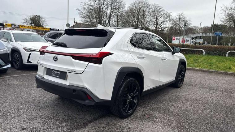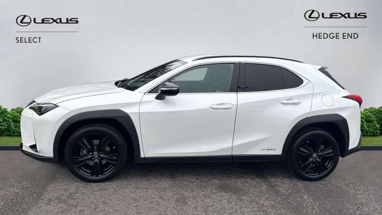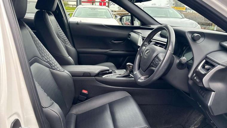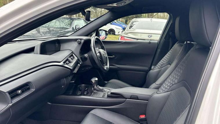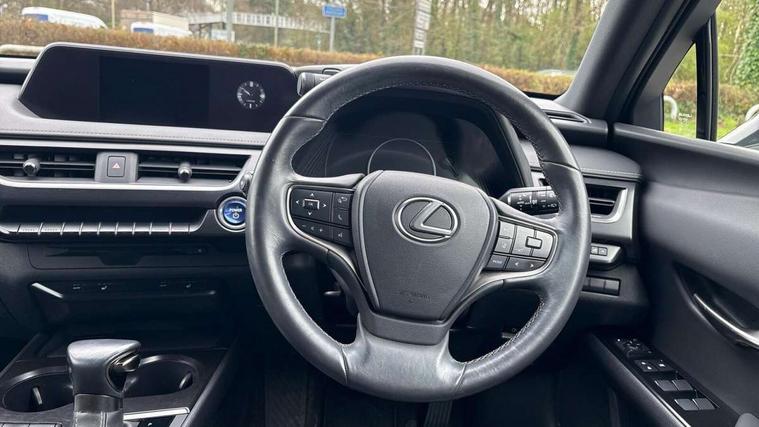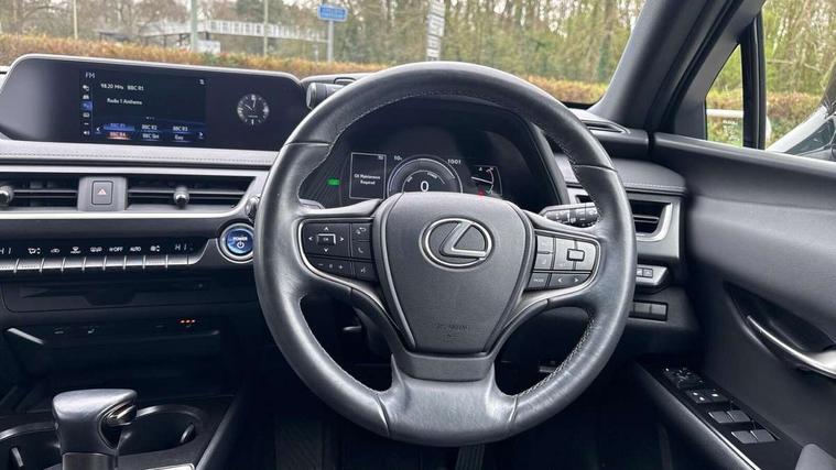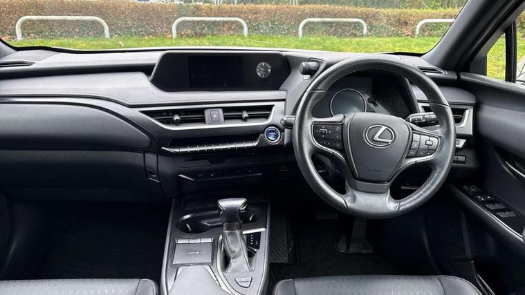 4 driving modes EV/Eco/Normal/Sport, 7" Lexus media display, 7" TFT instrument cluster, Analogue clock with GPS function, Apple car play/Android Auto, Compatible mobile phone bluetooth with audio streaming, E-call, Electric power steering (EPS) with speed sensitive features, Lane change flasher function, Lexus link connected services, Lexus navigation system, Lexus safety systems + includes dynamic radar cruise control, pre collision system day and night, lane tracing assist, road sign assist, Push button start, Remote touch interface, Reversing camera with back guide lines, Trip computer, Vehicle Dynamics Integrated Management (VDIM), Vehicle Stability Control (VSC), 2 front USB and 2 rear USB charging points, 6 speakers, AM/FM and DAB radio, AUX socket with VTR compatibility, CD player, Acoustic windscreen, Aero stabilising arch mouldings, Aero stabilising rear lights, Aero ventilated wheels, Aluminium roof rails, Bi-LED (low and high beam) headlights with Auto High Beam (AHB), Body adhesive, laser screw welding and laser brazed roof structure, Electric adjustable/heated door mirrors, Front and rear one touch power windows, with anti-jam protection, Headlight cleaners, LED daytime running lights, LED front and rear fog lights, LED tail lights, Light green UV glass, Rain sensor windscreen wipers, Rear wiper, Shark fin roof aerial, Single hidden exhaust pipe, Towing preparation, 12V accessory port centre console and luggage compartment, 2 cup holders in the front and rear centre console, 2 x folding shopping bag hooks in boot, 2 x sun visors with vanity mirror and lamp, 4 x tie down hooks in the boot, 5 headrests, 6 way driver and passenger manually adjustable front seats, 60/40 split folding rear seat, Card holder installed in driver and passengers sun visors, Centre armrest with storage, Driver and passenger door pocket, Dual zone electronic climate control + Nano-E humidity sensor, Glovebox, Leather gear lever, Leather steering wheel, LED interior illumination, Map pockets in the rear of passenger's front seat, Premium fabric upholstery, Rear air vents with 2 USB chargers, Rear armrest with 2 cupholders, Storage tray under audio panel, Textile carpet mats, Tilt/reach adjustable steering column, Under deck storage, Under desk side storage, 2 x Isofix child rear seat restraints, 3x3 point rear seatbelts, Anti-lock braking system (ABS), BAS (Brake Assist System), Driver and front passenger 2 stage airbag, Driver and front passenger knee airbag, Driver/front passenger side airbags, EBD - Electronic brakeforce distribution, ECB (Electronically Controlled Brake System), Electric parking brake, Front adjustable seatbelt anchor points, Front and rear curtain shield airbags, Front outer seatbelt+pre-tensioners, force limiter+tension reduction: 3-point with active safety link to PCS, Hill start assist control (HAC), Passenger airbag cut-off device, Rear outer seatbelt+pre-tensioners, force limiter+tension reduction: 3-point with active safety link to PCS, Centre belt w/o pre tensioner+force limiter, Secondary Collision Brake (SCB), TRC (Traction Control), Tyre pressure warning, 2 x remote key fobs, Anti theft system : Alarm instruction sensor, glass breakage sensor and engine immobiliser, Locking wheel nuts, Remote central door locking, Speed sensitive auto door locking, Two motion door lock with double lock, VIN Window etching, 17" alloy wheels, Tyre repair kit,