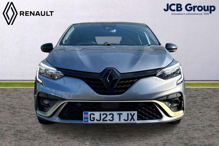 10" TFT Driver information display, Apple car play/Android Auto, Cruise control + speed limiter, E-call, Easy link navigation with 9.3" touchscreen+4x20W amplifier+FM DAB double tuner, sound auditorium, 2xUSB/1xjack/bluetooth, smartphone integration plus, Eco mode driving function, Emergency call system, Front parking sensors, Gear change indicator, Lane departure warning system, Lane keep assist, Over speed prevention, Rear parking sensors, Rear view camera, Traffic sign recognition, Trip computer, Variable assistance electric PAS, E-TECH battery, Auto dimming rear view mirror, Auto high beam assist, Auto light control and rain sensing wiper, Automatic headlights, Black Renault logo front and rear, Black wing mirrors, Body colour door handles, Bumpers - gold styling elements, Chrome front grille, Drivers one touch window with anti-pinch feature, E-TECH badging, gold sports front bumper, sports lower grill, side and rear E-TECH engineered markings and gold detailing, Electric front windows, Electric rear windows, Exterior rear hidden door handles, Extra tinted glass on rear windows + tailgate, Front and rear LED roof light x 2, Full C-shape LED front and rear signature lighting, Full LED front and rear headlamps integrating daytime running lights at the front and rear, Gun metal grey sport rear bumper, Gun Metal insert on lower side doors with Clio embossing, Heated rear windscreen, LED front fog lights, LED reverse light, LED third brake light, Manual folding wing mirror mechanism, Manually adjustable door mirrors, Rear fog lights, Rear roof spoiler - gold styling elements, Rear side wing doors, Rear wiper, Shark fin antenna, Variable speed on front windscreen wipers, 12V Accessory socket, 3 rear height adjustable headrests, 3 seat bench in 2nd row, 6.2L front glovebox, 60/40 split and fixed base rear seat bench, Air recirculation control, Auto climate control, Black headlining, Black hooks on boot floor x 4, Centre console with storage and armrest, Dark roof lining and aluminimum pedal set, E-TECH Engineered interior trim including airvent gold stripe, renault diamond gold surround and gearshifter with gold stitching, Fabric upholstery, Front cupholders, Front decor strip in red, Front door storage bin, Height adjustable front headrests, Height/reach adjust steering wheel, Isofix system on outer rear seats, Luggage nets in boot, Mechanical height adjustable front seats, Multi function steering wheel, Multisense including ambient lighting and selectable drive modes, Pollen filter, Single front passenger seat, Sun visor without light, Synthetic leather steering wheel, System for Restraint and Protection SRP-front seats, 3 point seatbelts on all rear seats, ABS+EBA, Active emergency braking system, Curtain airbags, Distance warning alert, Driver and passenger front and side airbag deactivation, Driver/Front Passenger airbags, Electronic parking brake with auto hold, ESC - Electronic Stability Control + traction control, Front side airbags(head+thorax), Height adjustable driver's seatbelt, Hill start assist, Seatbelt warning, Tyre pressure warning, Deadlocking system, Hands free key card with push button, start and stop function, Locking fuel filler cap, RAID (Renault Anti-Intruder Device) with automatic door locking, Rear side wing door and window child locking function (front driver door control panel), Remote central locking with thatcham approved immobiliser, Upper dashboard cover, 17" E-TECH Engineered Diamond Cut Alloy with Gold Inserts,