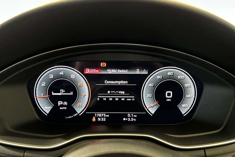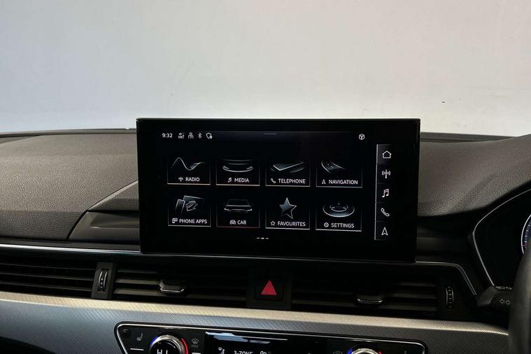 Audi connect safety and service (e-call), Audi connect with Amazon Alexa Integration, Audi drive select, Audi parking system plus with front and rear sensors, Audi smartphone interface, Audi virtual cockpit, Automatic start-stop system with coasting functionality and efficiency programme, Bluetooth interface, Cruise control system with speed limiter, Electric boot lid release, Electromechanical power steering, Email, calendar and text messages displayed via MMI, MMI Navigation plus with MMI touch includes 10.1" high resolution colour MMI display, 3D map, Rear view camera, Voice control system, 54 litre fuel tank, Comfort dynamic suspension, 2 USB charging ports, 8 passive loudspeakers, DAB digital radio reception, Auto dimming rear view mirror, Body coloured door mirrors, Electrically folding auto dimming/adjustable/heated door mirrors with LED side indicators and kerb view function for passenger side, LED headlights and rear lights with LED daytime running lights, New design rear diffuser, Rain and light sensors, Windscreen with acoustic glazing, 3 spoke high multi-function leather sport steering wheel with paddle shift and height and reach adjustable, 4 way electric lumbar support for driver and front passenger, 40/20/40 split folding 3 rear seat bench in 3 parts with rear centre armrest, Deluxe 3 zone electronic climate control, Door sill trims with aluminium inlay, Front and rear head restraints, Front centre armrest, Heated front seats, Interior lighting, ISOFIX child seat mounting and top tether, Manual seat adjustment, High gloss package - A4, 3 rear seatbelts, 6 airbags - Driver, front passenger, curtain and side windows, Electronic Stabilisation Control (ESC) including ABS, ASR and EDL, Hill hold assist, Multi collision brake assist, Pop-up bonnet for pedestrian protection, Pre sense city, Seatbelt monitoring, Warning triangle and first aid kit, Anti theft alarm, Anti theft wheel bolts, Keyless Go, Tool kit, Tyre repair kit,