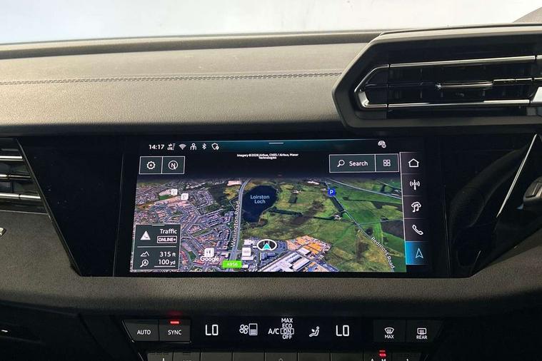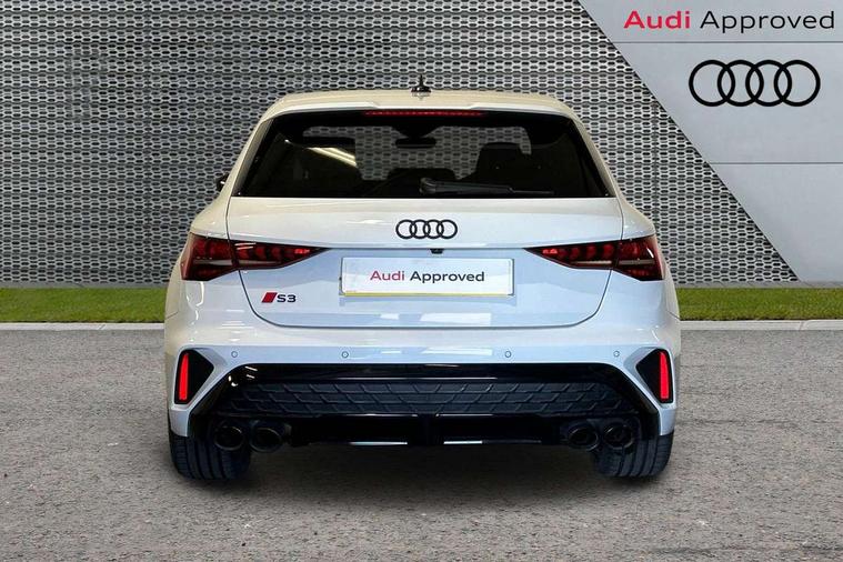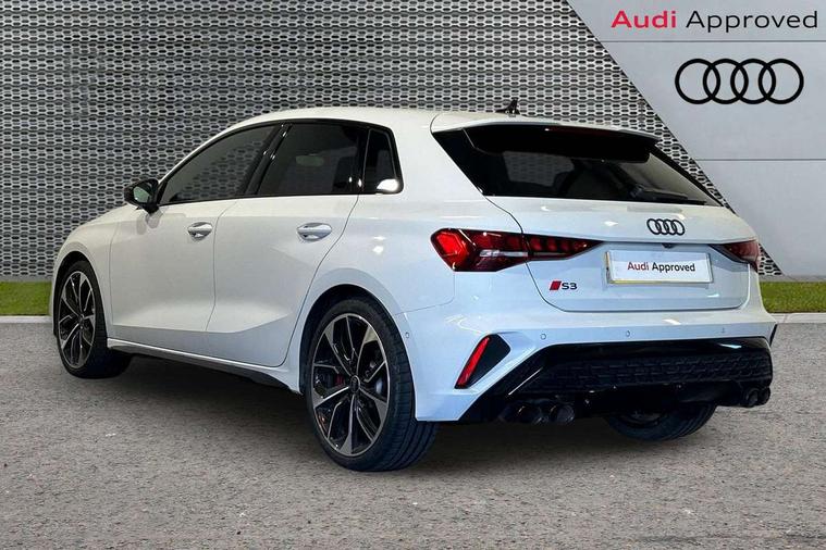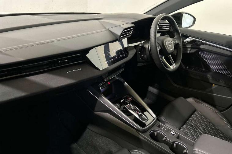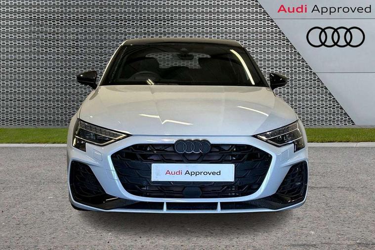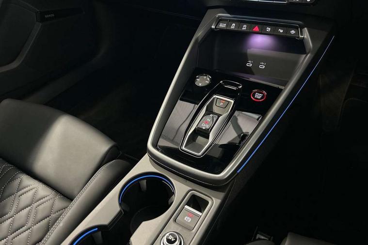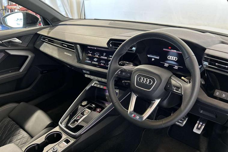 Adjustable speed limiter, Audi drive select, Audi smartphone interface with app store includes wireless Apple carplay, Android auto and Amazon alexa integration, Audi virtual cockpit plus - 12.3" full HD resolution dynamic digital instrument cluster, Automatic start/stop system with recuperation, Bluetooth interface, Camera based traffic sign recognition, Collision avoidance assistant, Distraction and Fatigue warning, e-Call (emergency call), Lane departure warning system, MMI Navigation Plus with high resolution 10.1" colour touch screen display, Park Assist with parking system Plus, Progressive steering, Service indicator, Tailgate, Trip computer, Voice control system with natural language interaction, quattro permanent all-wheel drive with torque splitter, S sport suspension with spring damper adjustment and lowering by 15mm, Audi Phonebox light with wireless charging, DAB Digital radio, USB ports with charging function in the rear, Anthracite grey Audi rings (front and rear), Audi Beam uses LEDs to project the rhombus S logo onto the ground as you exit your S3, Auto dimming frameless rear view mirror, Black accents front and rear bumpers including air inlets, Black accents in front grille and frame, Black accents window trims strips, Electrically adjustable/heated/folding/auto dimming door mirrors with integrated LED indications + kerb view function for passenger side, Exterior model badging, Front electric windows, Headlight washers, Heat insulating glass windscreen, Illuminated door sills with aluminium inserts at the front with S logo, LED 3rd brake light, LED daytime running lights, LED headlights with LED rear lights and dynamic rear indicators, Light and rain sensors, Privacy glass - dark tinted rear window, rear door and side windows, Rear electric windows, Rear side wing doors, Rear wiper, S grille, S3 front bumper with S specific air intake grilles, S3 roof spoiler, 12V socket and storage compartment in front centre console, 3 seat bench in 2nd row, 3 spoke flat bottomed leather multifunction sport steering wheel with gear shift paddles, 3-zone deluxe automatic air conditioning, 4 way electrically adjustable lumbar support for driver and front passenger, 40/20/40 split folding rear seat bench, Black cloth headlining, Fine Nappa leather upholstery with front sports seats S embossed logo, Front and rear centre armrest in artificial leather, Front and rear centre armrest in artificial leather with contrasting stitching on armrests and instrument panel, Front and rear headrests, Front/rear floor mats, Heated front seats, Height and reach adjustable steering wheel, Manual boot compartment lid, Manually adjustable front seats, Rear cup holders, S badging on the steering wheel, Seat side bolsters, Single front passenger seat, Stainless steel pedals and front footrest in black, Aluminium interior elements pack - A3 Sportback, Extended ambient lighting package Pro - S3 Black edition, Storage package - A3, Technology package - A3, 3x3 point rear seat belts, Driver and front passenger airbag with passenger airbag deactivation, Electronic Stabilisation Control (ESC) including ABS, ASR and EDL, First aid kit with warning triangle and 2 safety vests, Front side airbags with head airbags and interaction airbag, Hill hold assist, Pre-sense front with pedestrian and cyclist detection, Seatbelt monitoring, Tyre pressure loss indicator, Anti theft alarm, Anti-theft wheel bolts, Electronically operated child locks, Immobiliser, Remote central locking with safelock, Inlays in black dynamica microfibre, Tyre repair kit,