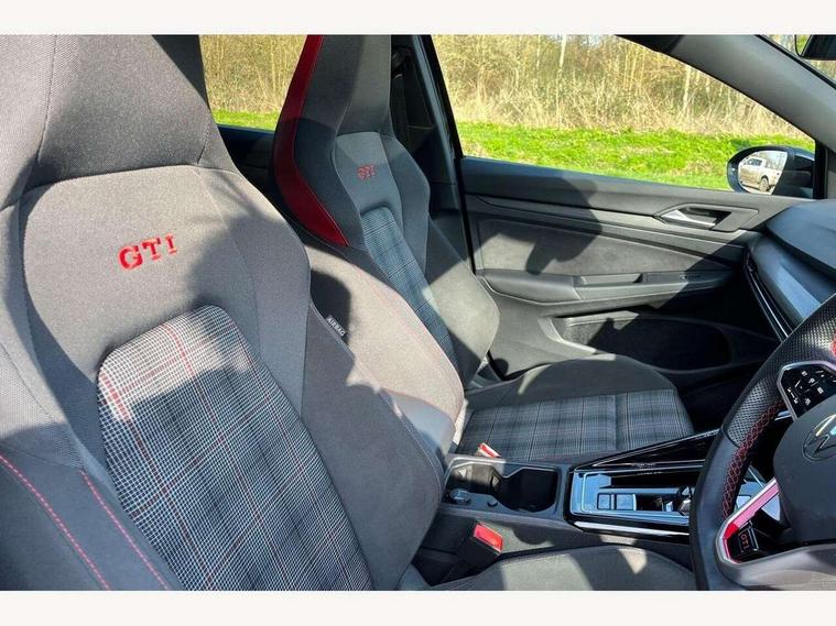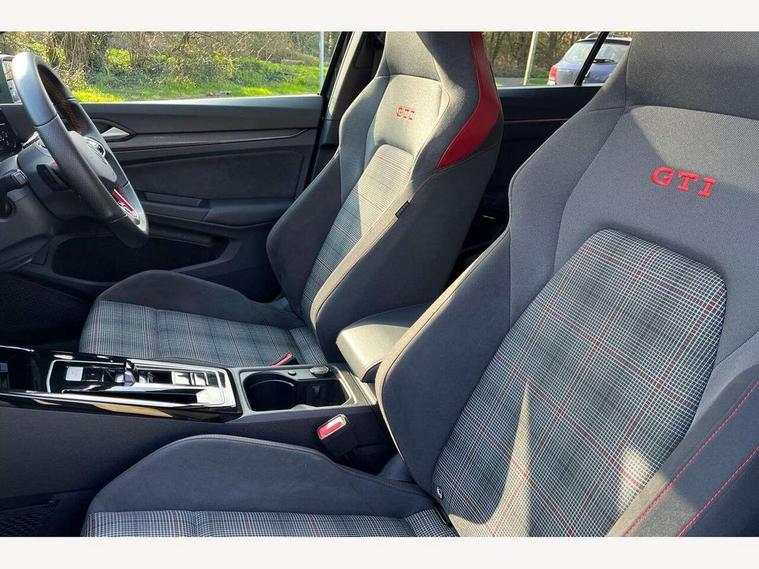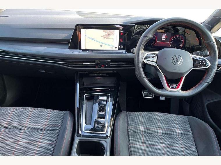 Adaptive cruise control (ACC) with speed limiter and front assist (reacting to vehicles pedestrians and cyclists), Car2X communication, Digital cockpit pro - 10.25" high resolution TFT dash display screen with customizable menus and information, Driver alert system, Dynamic road sign display, eCall - Emergency call service for SOS calls to emergency response, Lane assist, Lane change assistant, Mobile phone interface with wireless inductive charging function, Multifunction camera for distance control, PAS, Speedo, rev counter, electronic odometer, trip, service interval display, exterior temperature and fuel gauge, Start/Stop function, Travel assist with emergency side assist with electrically foldable door mirrors, USB-C ports in the front and rear centre console with increased charging performance, Warning buzzer and light for front seatbelts unfastened, Wireless app connect, Front differential lock, Petrol Particulate Filter, XDS electronic differential lock for improved traction and handling, Premium USB cable in choice of either Apple or Android smartphone compatibility, Ambient lighting, exterior illuminated styling elements at the sides, Auto dimming rear view mirror, Automatic headlamp activation with Coming home and Leaving home feature, Automatic headlights, Body colour bumpers, Body colour door handles, Body colour door mirrors with integrated indicators, Body colour rear roof spoiler, Chrome plated tailpipes (1 either side), Front and rear electric windows, GTI style bumpers, Heat insulating glass windscreen, Heated rear windscreen, High level 3rd brake light, Highway light, Illuminated front grille, IQ.Light - LED Matrix headlights, dynamic headlight control with advanced high beam control matrix dipped main beam + LED DRL + 22 LED lights, LED front fog lights with 5 honeycomb design, LED License plate illumination, LED rear combination lamp inlcuding dynamic turn signal, Rain sensor, Rear fog light on one side and reversing lights on both sides, Rear side wing doors, Rear tinted glass 65% light absorbing from B pillar backwards, Rear windscreen washer and wiper with interval delay, Remote electrically heated, adjustable and foldable door mirrors, including door mirror puddle lights and reverse activated kerb-view adjustment on pa, Welcome light, 12V socket in front centre console, 12V socket in luggage compartment, 3 rear head restraints, 3 seat bench in 2nd row, 3 zone climate with controls in the rear, Aluminium gear knob, Ambient lighting - Customisable 30 colour ambient lighting, Brushed stainless steel pedals, Chrome plated surround to electric mirror button, window switch and air vent surrounds, Drivers and front passengers sun visors with vanity mirrors, Front + rear carpet mats in recycled material, Front centre armrest with storage compartment, Front cupholders x 2, Front passenger seat, Front reading lights x 2 incorporating LED technology, Front seat lumbar support adjuster, Front sports seats, Glovebox, GTI logo on backrest, Height adjustable front seats, Height and reach adjustable steering wheel, Isofix child seat preparation for 2 rear child seats and front passenger seat, Leather wrapped multifunction sports heated steering wheel with red stitiching + paddle shift, Leatherette door armrests and centre armrest, Luggage compartment lighting, Removable luggage compartment cover, Soul black instrument panel, Soul black roof lining, Split folding backrest with centre armrest and unsplit rear seat bench, Woven fabric storage compartments in front and rear doors, 3 point height adj front seatbelts + pretensioners, 3 rear three point seatbelts, ABS, Child locks on rear doors, Driver and front passenger airbag with front passenger airbag deactivation, Drivers and front passengers safety optimised head restraints, Electronic parking brake with auto hold, ESC (Electronic Stability Control), Extended pedestrian protection measures, Front and rear passengers curtain airbag system including front side airbags, Front centre airbag, Front disc brakes, Front side airbags with curtain airbags, Rear disc brakes, Two tone horn, Tyre pressure monitoring system, Alarm with interior protection and deactivation via infotainment system, Electronic engine immobiliser, Keyless entry with start/stop button on centre console, Black metal chrome decorative inserts in dash and front door trim panels, High gloss black centre console,