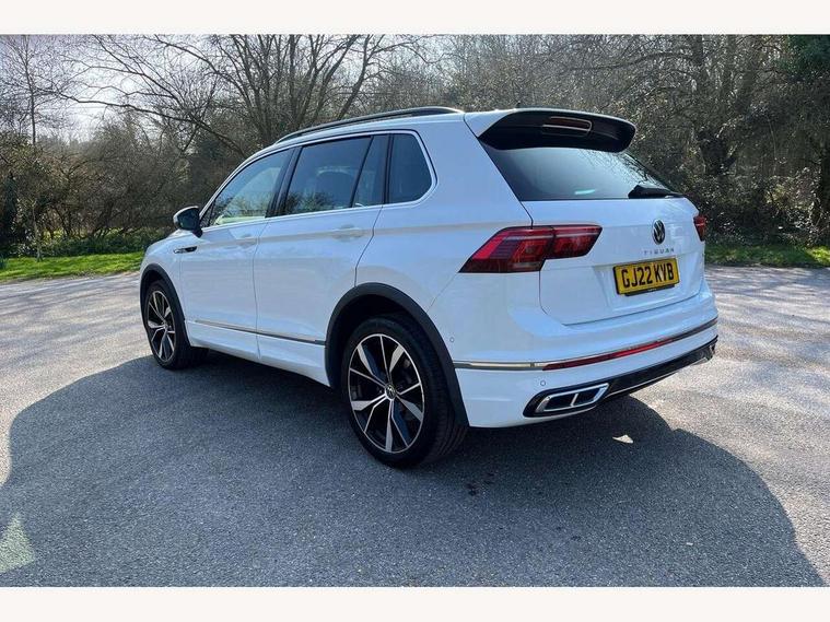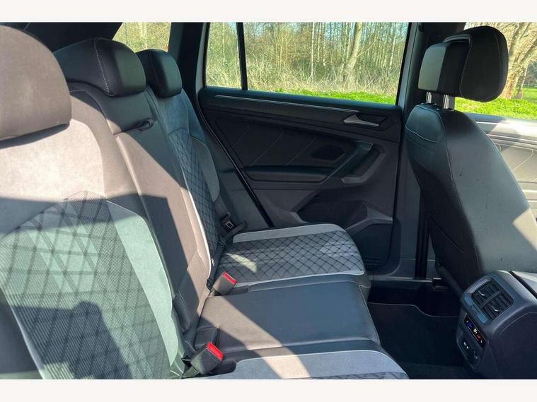 Adaptive cruise control ACC stop and go including speed limiter, App-Connect incl. App-Connect Wireless for Apple CarPlay and Android Auto, Bluetooth phone integration system, Digital Cockpit Pro - Active info display, Distance control assist, Driver alert system, Driver profile selection, Dynamic road sign display, eCall emergency call system, Electromechanical speed sensitive power steering, Engine start/stop button, Lane keeping system Lane Assist, Lights on warning, Multifunction front facing camera, Outside temperature display, Premium multifunction display with multi colour display, Remote control boot opening, Rev counter, Revision / skills operating concept travel assistant, Service interval indicator, Speed limit display, Start/stop system with regenerative braking, Trip computer, Warning sound and light for doors and tailgate open, All wheel drive - 4Motion, Battery regeneration during braking, Diesel particulate filter, Misfuel prevention device for diesel engine, Selective Catalytic Reduction, XDS electronic differential lock for improved traction and handling, 2 USB-C ports in the front, 1 USB-C charging socket on the center console in the rear, Diversity antenna for FM reception, Radio, SD card slot, Simultaneous pairing of 2 compatible mobile devices, SMS functionality - read, compose and send SMS messages using touch-screen display, Title and cover art display, Auto dimming interior rear view mirror, Automatic headlight control system, Black roof rails, Body colour door handles, Body coloured bumpers in R Line style, Body coloured door mirrors with integrated indicators, Chrome moldings on the side windows, Coming/leaving home lighting function, Dynamic headlight range control, Front and rear electric windows, Heated rear window, High level 3rd brake light, Laminated safety glass windshield, heat and sound insulating, LED rear number plate lights, License plate carrier in front and rear, Poor weather light and cornering light, Privacy glass for rear side windows and rear window, R Line body kit, R Line side sills, Rain sensor windscreen wipers, Rear exhaust tailpipe, Rear fog lamp, Rear side wing doors, Rear spoiler in R style, Rear windscreen washer and wiper with interval delay, Side and rear windows in heat insulating glass, Trailer Stability Programme, Unique R Line badging, Windscreen wipers/ intermittent wipe + 4 position delay, 12V outlet in center console rear and in luggage compartment, 12V outlet in front and tray, 2 cup holders in front, 2 LED front reading lights, 2 LED rear reading lights, 3 bench rear seats in 2nd row, 3 rear headrests, 4 load lashing points, 40:20:40 split folding rear seats, Air Care Climatronic 3 zone automatic climate control with enhanced air filter and controls in the rear, Backrest release for left front seat, Black headlining, Brushed stainless steel pedals and footrest, Carpet mats in front and rear with decorative stitching in Gray, Climate control unit rear with touch function, Door and side trim panel in foam film, insert in leatherette, Front centre armrest, Front footwell illumination, Front seats head restraints (x-adjustment), Height adjustable front seats, Height/reach adjust steering wheel, Instrument lighting white adjustable panel illumination, Interior light with delay, Isofix Preparation 2 Rear child seats, Leather gear knob, Lockable cooled glovebox, Luggage compartment lighting, Luggage net, Rear bench seat asymetrically split folding, longitudinally movable and folding with load-through hatch and center armrest, Remote unlocking for rear seat backrest, Removable luggage cover, Removable rear headrests, Safety optimised front head restraints, Single front passenger seat, Sliding/reclining rear seats, Standard rear seat release, Storage compartment in driver's door, Storage compartment in passenger's door, Storage compartment in rear doors, Storage compartments in luggage area left and right, Storage tray on dashboard, Sun visors with illuminated vanity mirrors, Top front comfort seats, Variable boot floor, height adjustable and removable, Ambience pack - Tiguan R Line, Driver assistance pack plus - Tiguan DSG, Park assist pack - Tiguan, 3 point seat belt for centre rear seats, 3 point seat belts with seat belt pretensioners for the outer rear seats, Active bonnet, Curtain airbags for front and rear passengers, Driver/Front Passenger airbags, Drivers knee airbag, Electronic parking brake with auto hold, Electronic Stability Control with driver steering recommendation, ABS, ASR, EDL, EDTC and trailer stabilization, Front assist with autonomous emergency braking (for Adaptive Cruise Control ACC up to 130 mph), Front disc brakes, Front passenger airbag deactivation, Front side airbags, Height adjustable front 3 point seatbelts + pretensioners, Hill hold control, Manual child proof rear door locks, Pedestrian monitoring system, Power assisted brakes, Proactive passenger protection system in combination with front assist, Rear disc brakes, Rigid safety cell with front and rear crumple zones, Two tone horn, Warning sound and light for front seat belts if unfastened, Anti theft alarm system with interior monitoring, backup horn and towing protection, Anti theft wheel bolts, Electronic engine immobiliser, 20" Misano black with diamond turned surface alloy wheels with Airstop tyres, Tool kit,