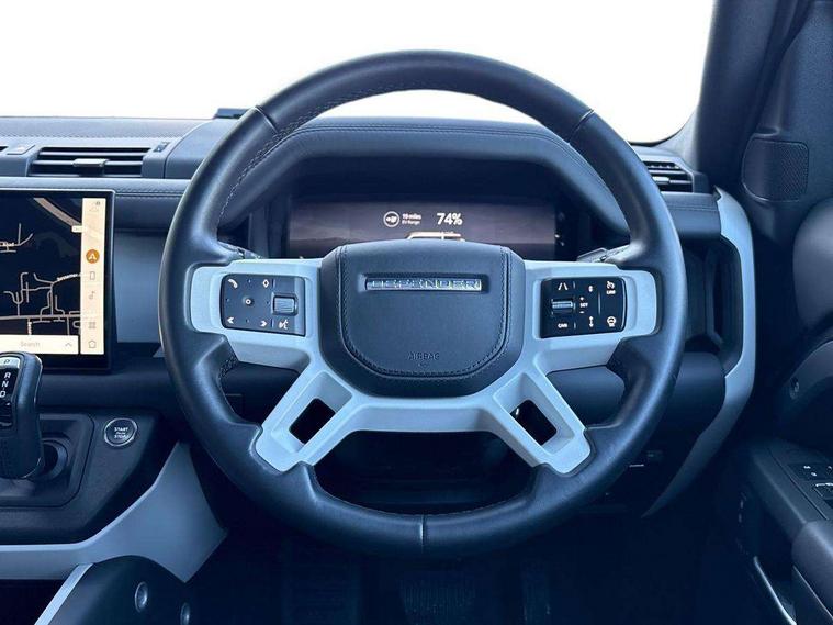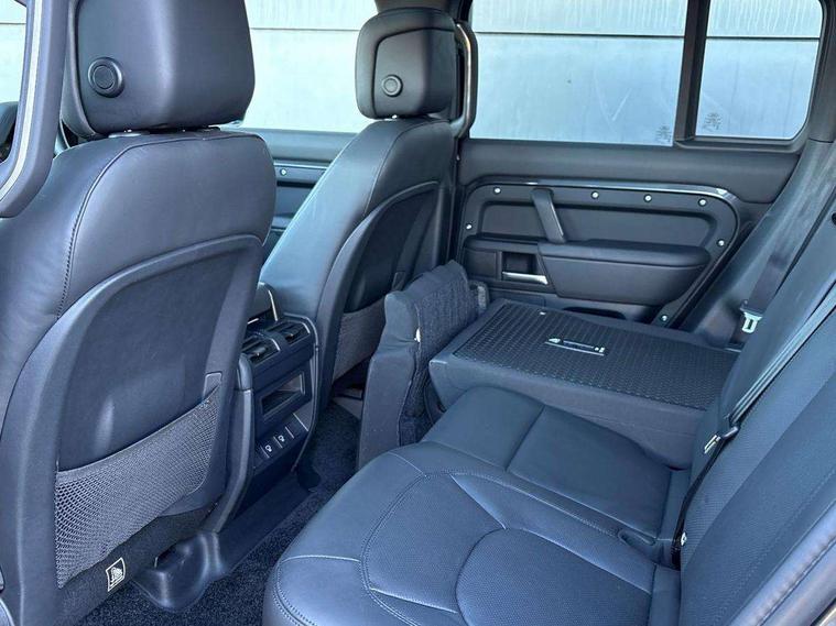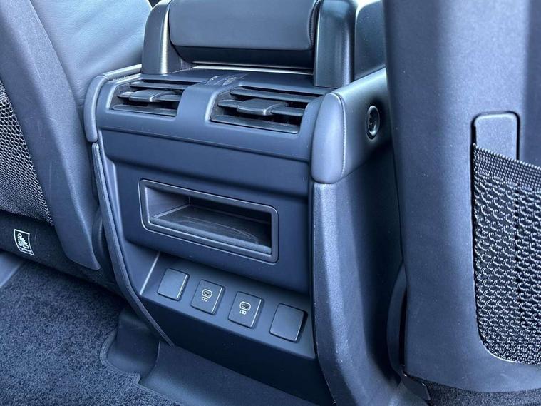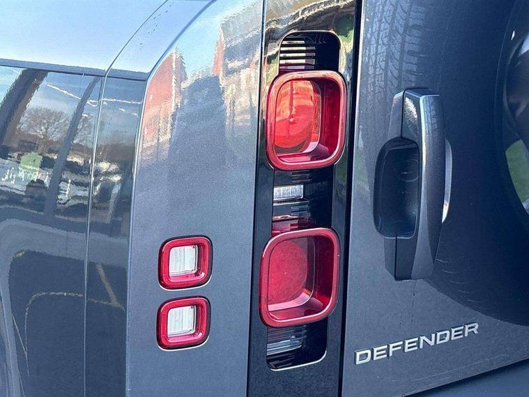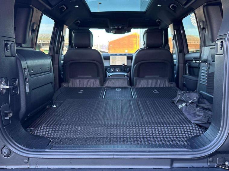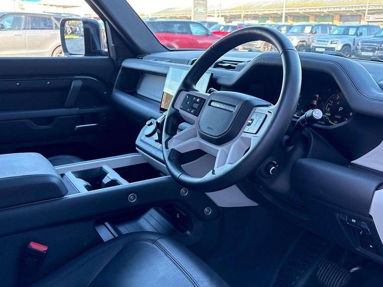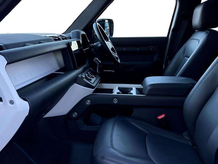 1 x USB-C (power only) & 1 x USB-C (power & data) in Row 1, 2 x USB-C in Row 2, 11.4" touchscreen, 360 degree parking aid, 3D Surround Camera with 360 View, 180 Rear View, Front Traffic Detection, Forward Vehicle Guidance, Tow Hitch Assist and clear sight Ground View, Adaptive cruise control, Android Auto, Apple CarPlay, Blind spot assist, Bluetooth system, Brake pad wear indicator, Clear exit monitor, Connected navigation pro, Driver condition monitor, Electric power assisted steering (EPAS), Interactive driver display, Lane keep assist, Push button start, Rear collision monitor, Rear traffic monitor, Traffic sign recognition with adaptive speed limiter, Trip computer, Wireless device charging, 8 speed automatic transmission, AC/DC charging, Adaptive dynamics, All wheel drive system, Electronic air suspension, Home charging cable mode 2 basic, Public charging cable, Twin speed transfer box, DAB Radio (Digital Audio Broadcasting), Meridian 700w surround sound audio system with 15 speakers, Pivi pro connected, Automatic headlight levelling, Automatic headlights, Black exposed rear recovery eyes, Body coloured bonnet, Centre high mounted stop light, Electric heated/power fold door mirrors with approach lights and auto dimming driver side, Electric windows with one touch open/close and anti-trap, Follow me home lighting, Front fog lights, Heated rear window with timer, Heated windscreen, Illuminated metal treadplates with brand name script, LED tail lights, Matrix LED headlights with signature DRL, Privacy glass, Puddle lights, Rain sensing windscreen wipers, Rear fog lights, Rear side wing doors, Rear wiper, Side hinged tailgate, Sliding panoramic roof, Standard tail door, Trailer stability assist, X-Dynamic badge, 12V power socket in loadspace, 3 seat bench in 2nd row, Alpine lights, Configurable cabin lighting, Durable rubber cabin flooring, Durable rubber loadspace flooring, Electric reach + rake adjustable steering column, Electrically adjustable steering column, Extended leather upgrade, Footwell lights, Front head restraints, Front passenger isofix child seat attachment, Heated steering wheel, Loadspace cover, Loadspace Hook, Multifunction steering wheel, No flat load floor storage, Overhead stowage for sunglasses, Rear headrests, Rear ISOFIX, Rear reading lights, Single front passenger seat, Soft close tail door, Standard seat configuration, Storage glovebox, Sunvisors with illuminated vanity mirrors, Twin front cupholders, Non-smoker package, Online pack with data plan - Defender, 5 x 3 point seatbelts, ABS, Brake hold function, Cornering brake control (CBC), Customer configurable autolock, Driver and passenger airbags, DSC - Dynamic Stability Control, EBD - Electronic brakeforce distribution, Electric parking brake (EPB), Emergency brake assist, Emergency braking, ESP + traction control, Front airbags with passenger seat occupant detector, HDC - Hill descent control, Hill launch assist, Low traction launch, Power operated child locks, Remote for (e-Call, Optimised assistance call, InControl app, Climate, beep and flash and door), RSC - Roll stability control, Seat belt reminder, TPMS (Tyre pressure monitoring system), Alarm, Immobiliser, Intrusion sensor, Keyless entry, Locking wheel nuts, Secure tracker pro,
