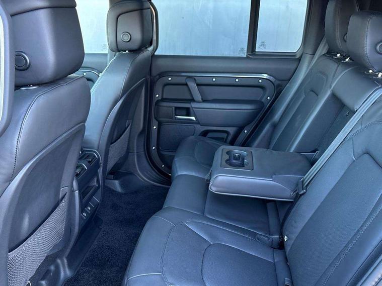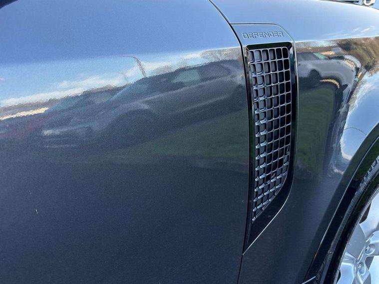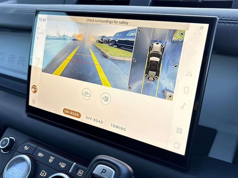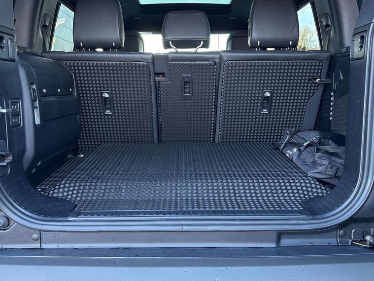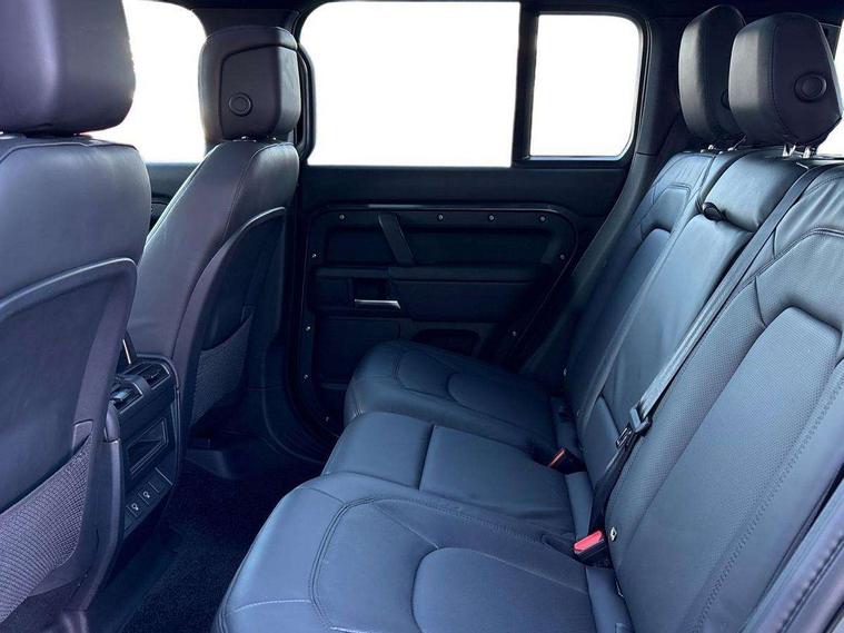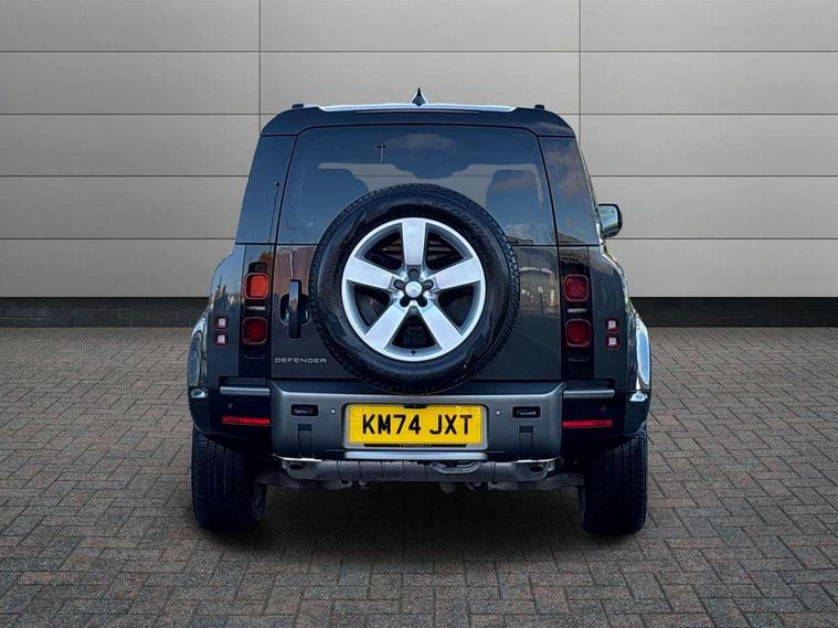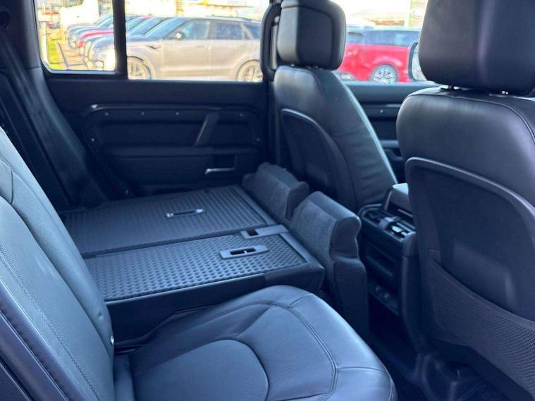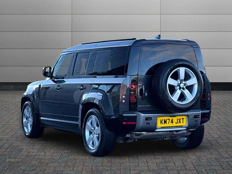 1 x USB-C (power only) & 1 x USB-C (power & data) in Row 1, 2 x USB-C in Row 2, 11.4" touchscreen, 360 degree parking aid, 3D Surround Camera with 360 View, 180 Rear View, Front Traffic Detection, Forward Vehicle Guidance, Tow Hitch Assist and clear sight Ground View, Adaptive cruise control, Android Auto, Apple CarPlay, Blind spot assist, Bluetooth system, Brake pad wear indicator, Clear exit monitor, Connected navigation pro, Driver condition monitor, Electric power assisted steering (EPAS), Interactive driver display, Lane keep assist, Push button start, Rear collision monitor, Rear traffic monitor, Traffic sign recognition with adaptive speed limiter, Trip computer, Wireless device charging, 8 speed automatic transmission, AC/DC charging, Adaptive dynamics, All wheel drive system, Electronic air suspension, Home charging cable mode 2 basic, Public charging cable, Twin speed transfer box, DAB Radio (Digital Audio Broadcasting), Meridian 700w surround sound audio system with 15 speakers, Pivi pro connected, Automatic headlight levelling, Automatic headlights, Black exposed rear recovery eyes, Body coloured bonnet, Centre high mounted stop light, Electric heated/power fold door mirrors with approach lights and auto dimming driver side, Electric windows with one touch open/close and anti-trap, Follow me home lighting, Front fog lights, Heated rear window with timer, Heated windscreen, Illuminated metal treadplates with brand name script, LED tail lights, Matrix LED headlights with signature DRL, Privacy glass, Puddle lights, Rain sensing windscreen wipers, Rear fog lights, Rear side wing doors, Rear wiper, Side hinged tailgate, Sliding panoramic roof, Standard tail door, Trailer stability assist, X-Dynamic badge, 12V power socket in loadspace, 3 seat bench in 2nd row, Alpine lights, Configurable cabin lighting, Durable rubber cabin flooring, Durable rubber loadspace flooring, Electric reach + rake adjustable steering column, Electrically adjustable steering column, Extended leather upgrade, Footwell lights, Front head restraints, Front passenger isofix child seat attachment, Heated steering wheel, Loadspace cover, Loadspace Hook, Multifunction steering wheel, No flat load floor storage, Overhead stowage for sunglasses, Rear headrests, Rear ISOFIX, Rear reading lights, Single front passenger seat, Soft close tail door, Standard seat configuration, Storage glovebox, Sunvisors with illuminated vanity mirrors, Twin front cupholders, Non-smoker package, Online pack with data plan - Defender, 5 x 3 point seatbelts, ABS, Brake hold function, Cornering brake control (CBC), Customer configurable autolock, Driver and passenger airbags, DSC - Dynamic Stability Control, EBD - Electronic brakeforce distribution, Electric parking brake (EPB), Emergency brake assist, Emergency braking, ESP + traction control, Front airbags with passenger seat occupant detector, HDC - Hill descent control, Hill launch assist, Low traction launch, Power operated child locks, Remote for (e-Call, Optimised assistance call, InControl app, Climate, beep and flash and door), RSC - Roll stability control, Seat belt reminder, TPMS (Tyre pressure monitoring system), Alarm, Immobiliser, Intrusion sensor, Keyless entry, Locking wheel nuts, Secure tracker pro,