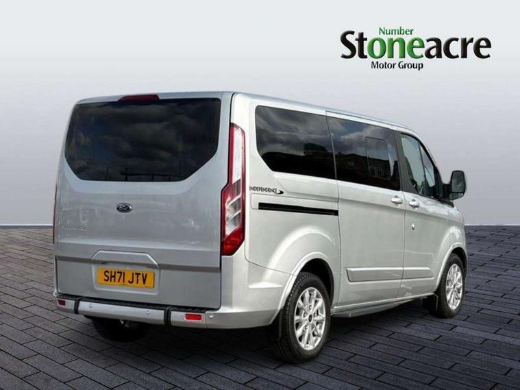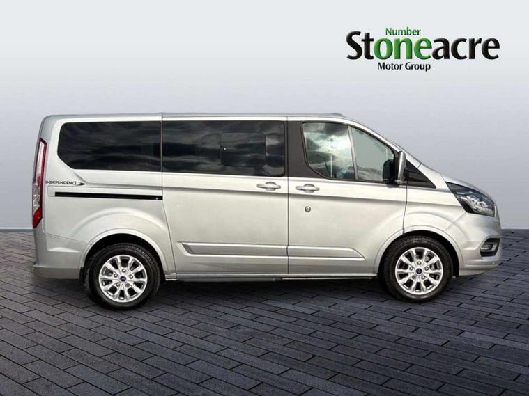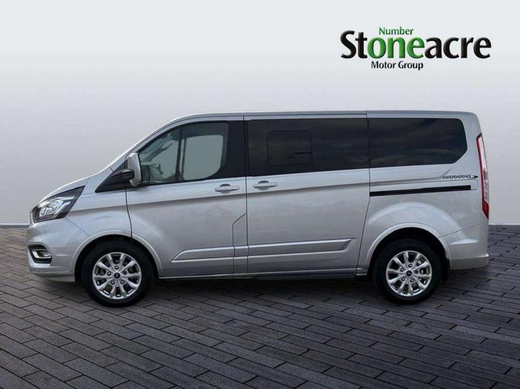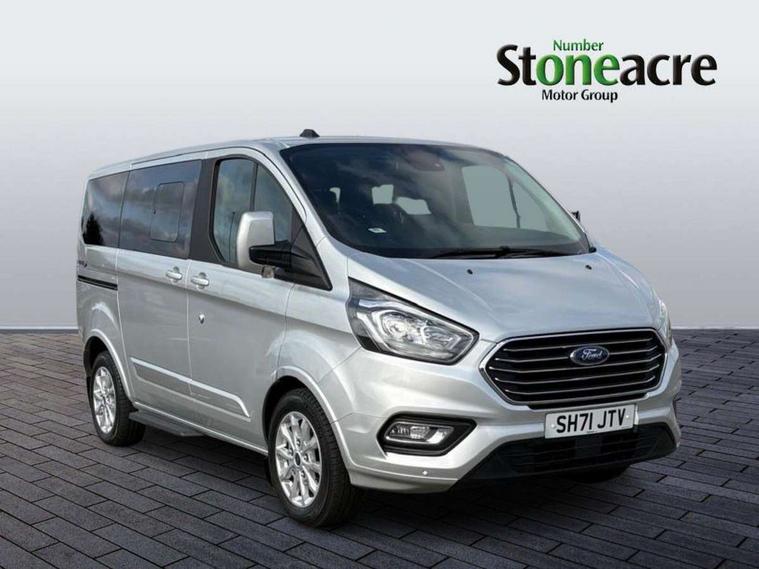 Embedded modem, PAS, Trip computer, Tyre pressure monitor, Voice control system, 10 speakers, Audio controls mounted on steering wheel, Aux input socket, 'Guide me home' headlights, 2 Speed wipers with electric wash, 3rd Row left and right fixed windows, Body colour door and tailgate handles, Body colour exterior mirror finish, Body colour front and rear bumpers, Door lenght running boards, Front and rear wheel arch extensions, Front mud flaps, Heated rear window, Low roof line, Power front windows with one shot up/down, Rain sensing wipers, Rear cargo liftgate door, Trans linked rear washer/wiper, Twin sliding side load doors, Wide bodyside body coloured moulding, Carpet floor covering in passenger compartment, Coat hook, Driver and passenger storage bins on facia with lids, Facia mounted tray with pen holder and cupholders, Front door map pockets, Full moulded headlining, Header mounted courtesy lights - 2 map lights, Header mounted package tray, Height adjustable head restraints, Height and reach adjustable steering wheel, Illuminated footwell, Isofix child seat attachments - centre and offside 2nd row seats, Leather gearknob, Load compartment interior light, Lockable glove box lid, Manual air conditioning, Map reading lights, Passenger sunvisor, Passengers side open storage, Rear armrest, Rear seat climate control, Rear side window blinds, Reclining rear seats, Tool kit, Twin bottle holders, Colour keyed exterior pack - Tourneo custom, Interior trim accent pack E - Tourneo custom, 3 point seatbelts for all seats, Driver and passenger seatbelt reminder, Driver's airbag, Front passenger airbag with deactivation, Front seatbelt pretensioners, Anti-theft perimeter alarm system, Category 2 immobiliser, Configurable Unlocking, Door entry remote control unit 2 Fobs key, Locking wheel lug nut, Remote central locking, ABS, Alternator - 150A, Battery saver, Brakes - ESP/HLA/FBS, Diesel particulate filter, Power socket in drivers stowage bin, Rear auxilliary power point socket, Roll stability control, Side wind mitigation, 17" alloy wheels,