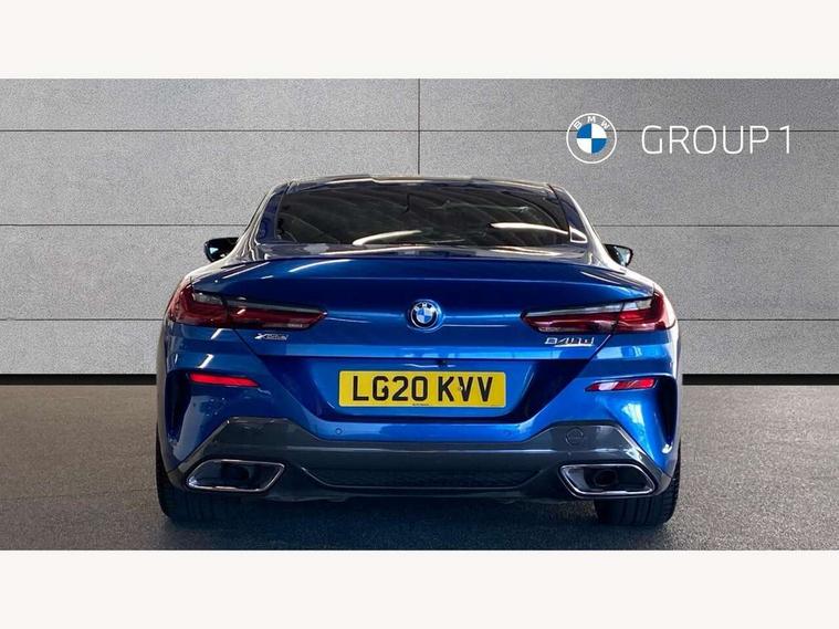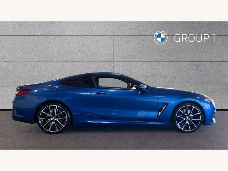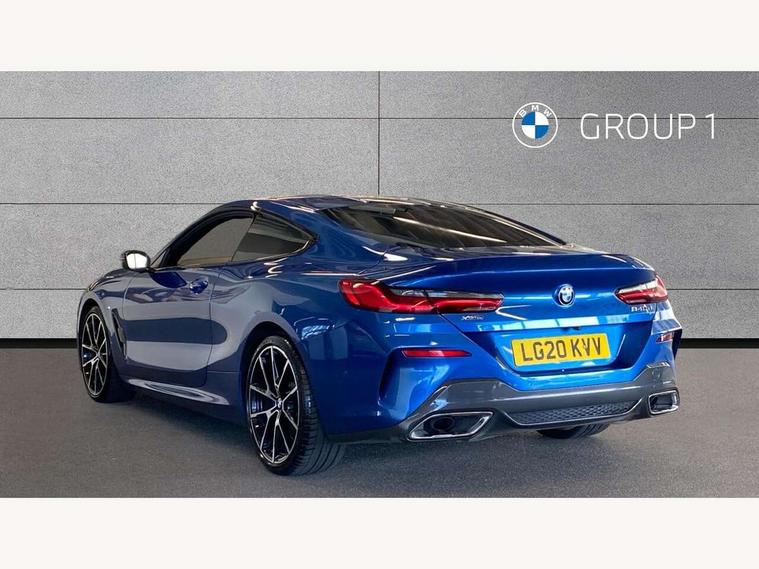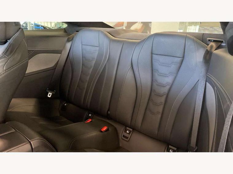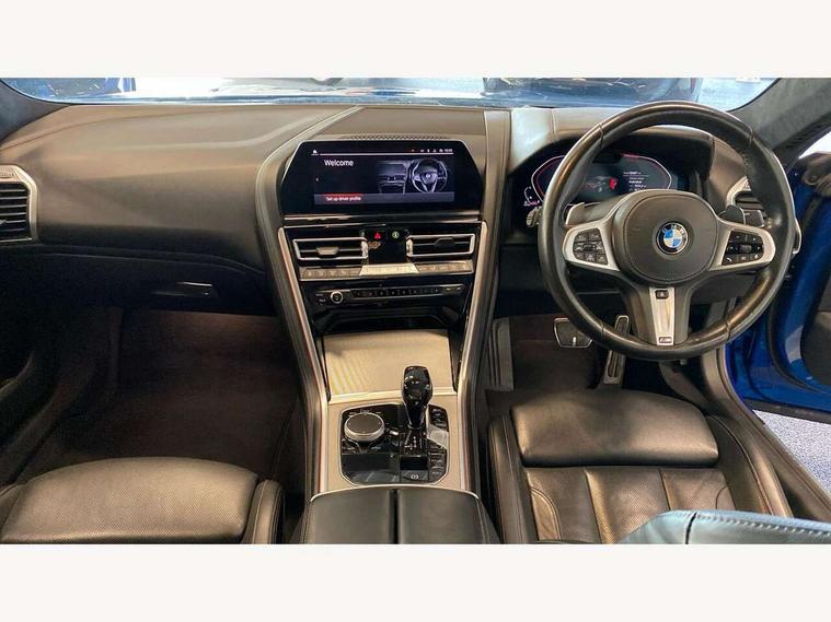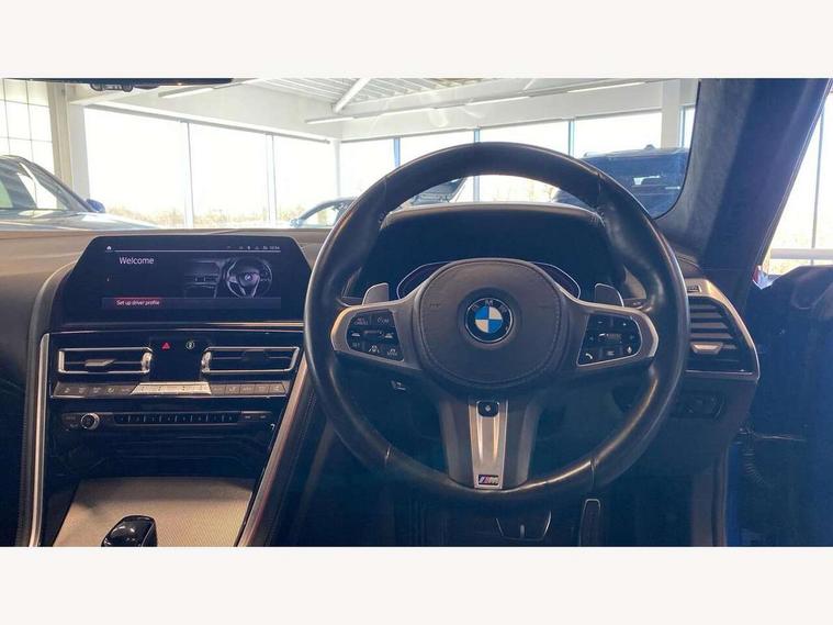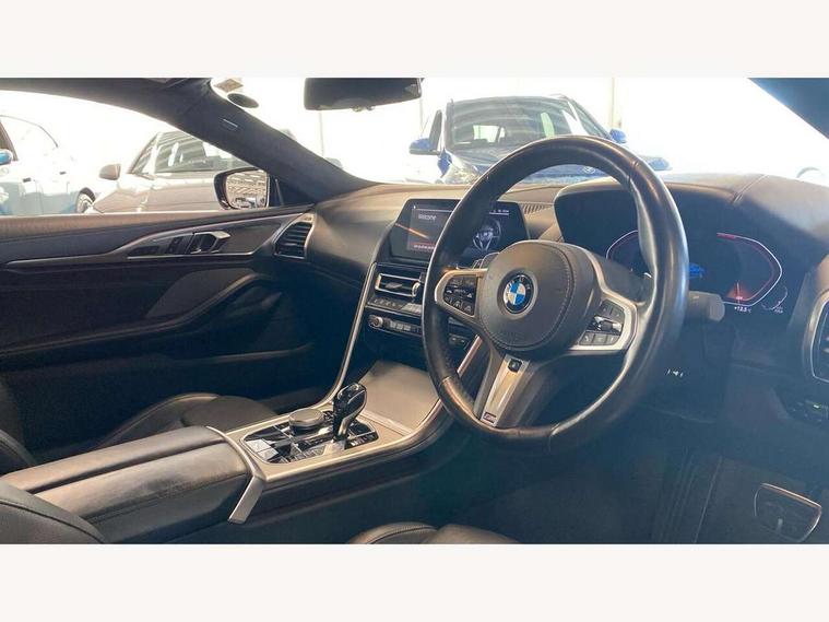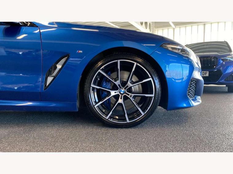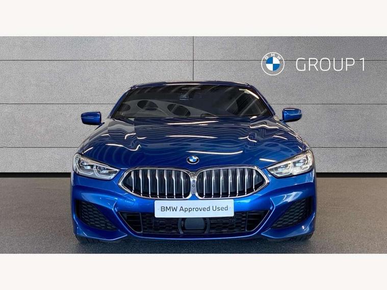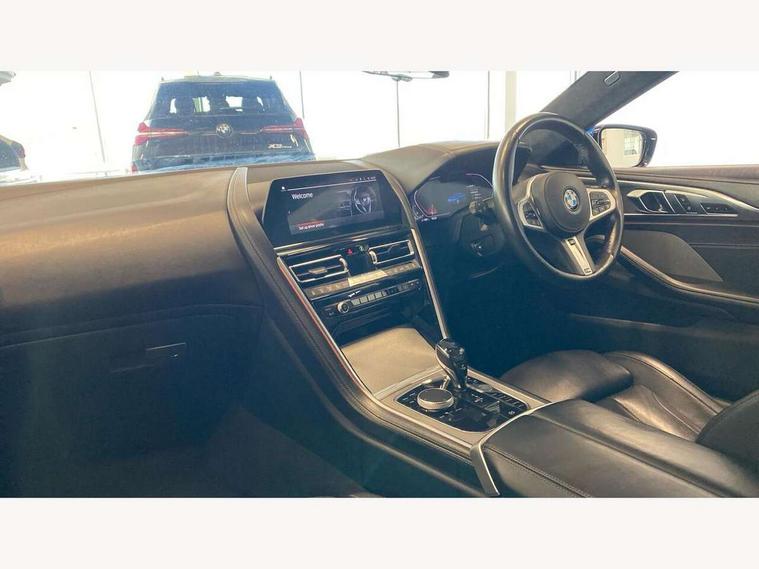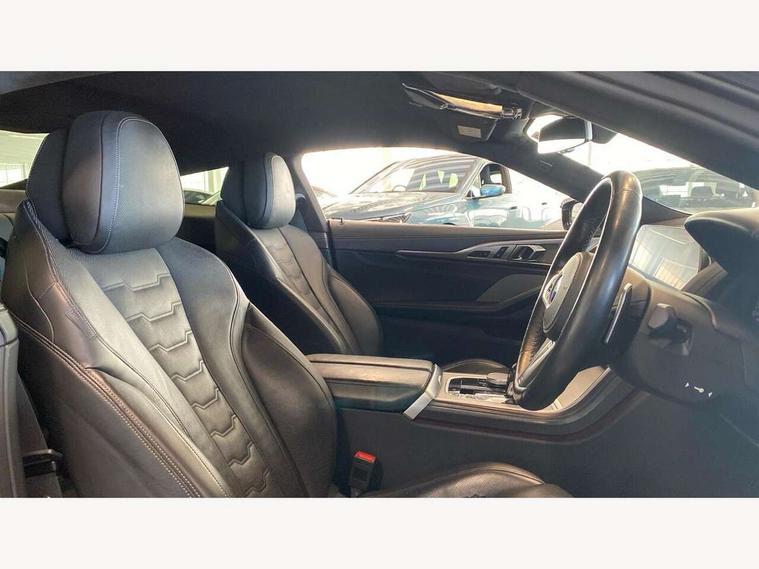 Active Guard incl speed limiting and lane departure functions with auto steering, and front collision warning with brake intervention, BMW legal emergency call, BMW Live Cockpit Professional sat nav system with intelligent personal assistant, voice control, gesture control, BMW Online services, BMW Teleservices, Brake pad wear indicator, Check control system, Condition based service, Drive experience control with Sport, Comfort, Eco Pro and Adaptive modes, Enhanced bluetooth with wireless charging, Head up Display, iDrive touch controller with shortcut buttons, Instrument and upper door panel in walknappa leather, Integral active steering, Integrated owners handbook, Oil sensor for level and grade, On board computer, Outside temperature display, Powered tailgate operation, Rear view camera, Run flat indicator, Service interval indicator, Wifi hotspot preparation, Adaptive M suspension, Diesel particulate filter, Double wishbone front axle, Dynamic Damper Control, Eight speed sport automatic transmission with gearshift paddle switches, DAB Digital radio, Favourite buttons, USB/audio interface, Bright chrome kidney grille, Carbon core, Chrome M designation on front side panel, left and right, Climate comfort windscreen, Dynamic brake lights, Electrically adjustable, heated, folding exterior mirrors, Follow me home headlight function, Frameless interior mirror, Front and rear bumper system with replaceable deformation elements, Front electric windows, Heated windscreen washer jets, High beam assistant, Illuminated door handles, LED rear lights, M aerodynamic body styling with dark shadow elements, Model logo on right tailgate, Rain sensor with automatic headlight activation, Rear apron trim insert in dark shadow metallic, Satinised aluminium kidney struts, Thermally insulated windscreen, Third brake light featuring LED technology, Welcome lights in interior and door handle area, xDrive designation on left tailgate, 2 cup holders in front, 2 X front 12v power sockets, 50/50 split folding rear seat, Automatic air conditioning with 2-zone control, Dynamic ambient interior lighting, Electric front seat adjustment with driver memory, Front entry lights doors, Front reading lights, Front seat heating, Front sun visors with ticket holder and illuminated mirror, Illuminated glovebox, Illuminated M door sill finishers, Lockable glove compartment with light, M Pedals, M sport leather steering wheel including multifunction controls, Microfilter and active carbon filter, Rear head restraints, Steering column with adjustable height and length and activation via control on the steering column, Velour floormats, Connected professional pack - 8 Series, M sport exterior styling aerodynamics pack - 8 Series, ABS/EBD, Active front seat headrests, Active protection, Airbags - Driver and front passenger airbag with seat occupancy detection, knee, side and front passenger seat airbag deactivation, Child seat ISOFIX attachment rear outer seats, Cornering brake control (CBC), Crash sensor activating central locking release, hazard warning lights, fuel cut off, interior lighting, safety battery terminal clamp and airbags, DSC - Dynamic Stability Control, Dynamic brake control, Dynamic Traction Control - DTC, Electromechanical parking brake with automatic drive away release and auto hold function, Front and rear brake discs with interior ventilation, Front and rear head airbags, Front three point with pyrotechnical belt latch tensioner seat belts, belt force limiter and belt stopper, Fuel supply cut off, Hill start assist, Rear three point with pyrotechnical belt latch tensioner seat belts and belt force limiter, Side impact protection, Two tone horn, Tyre pressure monitoring system (TPMS), Warning triangle and first aid kit, Alarm system (Thatcham 1) with electronic engine immobiliser, Centre lock switch, Closing system with central locking, Comfort access system, Keyless engine start, Locking wheel bolts, Vehicle key with exclusive M designation,