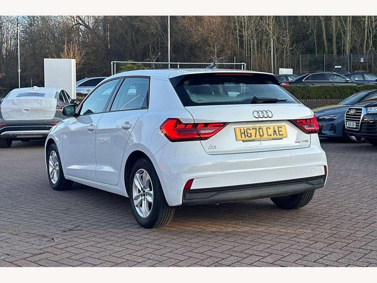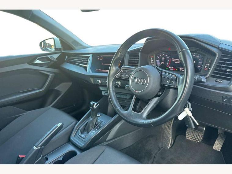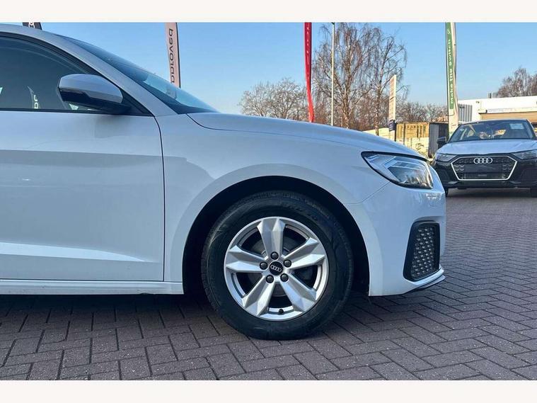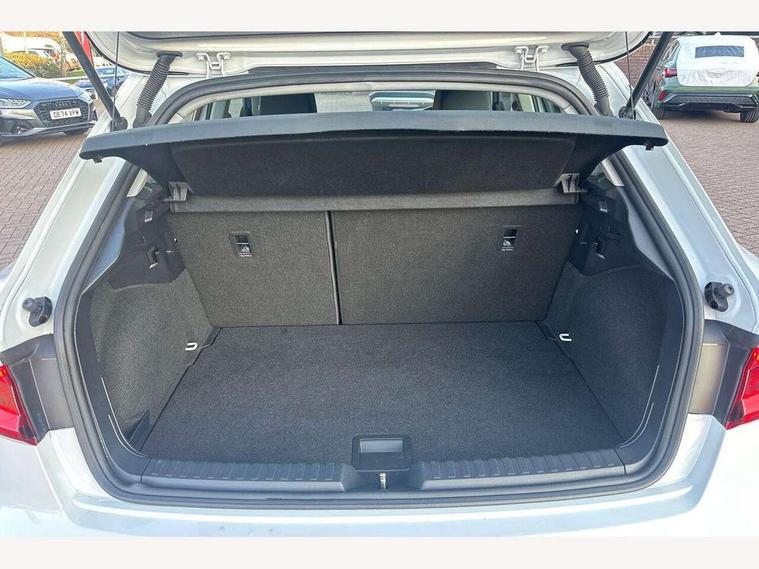 10.25" Digital instrument cluster display classis style instrument dials + speed, odometer, time, outside temperature, telephone menu + fuel level warning, Audi connect safety emergency and service including E-call, Audi smartphone interface with connect compatible smartphone via USB directly MMI display + Nav, music, third party apps controlled via MMI controller, Automatic start/stop system, Bluetooth interface, Driver's information system, Electromechanical power steering, Lane departure warning system, Service interval indicator, Speed limiter, Voice control system, Washer fluid level indicator, Dynamic suspension, 1 x SDXC card reader, 2 x USB type C connection points, 6 passive loudspeakers, DAB Digital radio, MMI radio plus with 8.8" colour MMI display screen and MMI touch, Auto dimming rear view mirror, Body coloured bumpers, Body coloured door mirrors, Electric front and rear windows, Electrically adjustable, heated, folding door mirrors with integrated LED side indicator, Front side air inlets with front spoiler lip and rear diffuser in matt black grained, Heat insulating glass windscreen and side windows, Heated rear windscreen, LED headlights with LED rear lights + dynamic rear indicators + headlight adjustment and high beam, turning light + LED daytime running lights, Radiator grille in matt black, Rain and light sensors, Rear fog lights, Rear wiper, 12V socket in centre console with two cup holders, 3 rear seats with headrests, 3 spoke leather multifunction plus steering wheel, 40:60 Split folding rear seat or folded fully, Air vents, door handle recesses and centre console in black, Delta cloth upholstery, Driver and passenger seat with manual height adjust with forward and backwards adjustment, Front head restraints, Front/rear floor mats, ISOFIX child seat mounting for front passenger and outer rear seats including top tether attachment point of outer rear seats, Leather gear knob with aluminium trim, Leatherette handbrake grip, Luggage compartment light with front and rear reading lights, Manual air conditioning, Titanium grey cloth headlining, Luggage compartment pack - A1, 3x3 point rear seatbelts, Audi pre-sense front with pedestrain and cyclist recognition, Brake assist function, Driver and front passenger airbag with front side and head airbags, Electronic Stability Control including ABS, EBD, ASR and EDL, Front and rear seatbelt reminder, Front passenger airbag deactivation switch, Hill hold assist, Seatbelt height adjustment for front seats, Seatbelt monitoring, Tyre pressure warning light, Warning triangle and first aid kit, Anti theft alarm, Anti theft wheel bolts and loose wheel warning, Immobiliser, Remote central locking with 2 foldaway keys, Black inlays polygon structure, 15" 5 arm design alloy wheels,