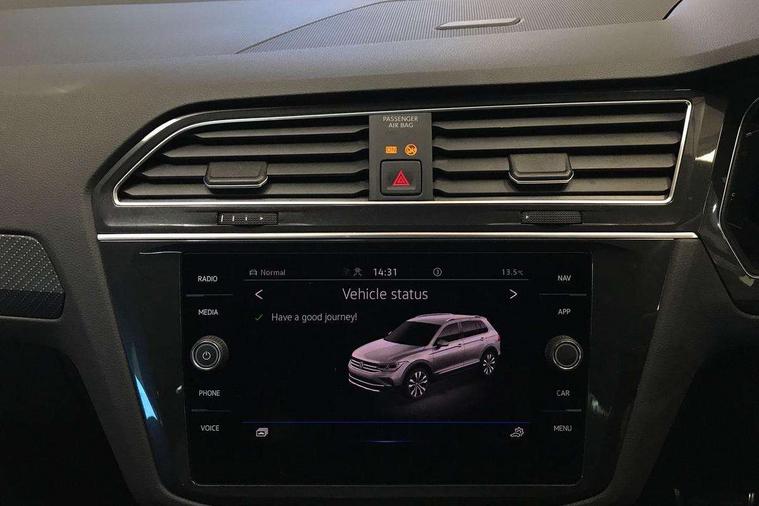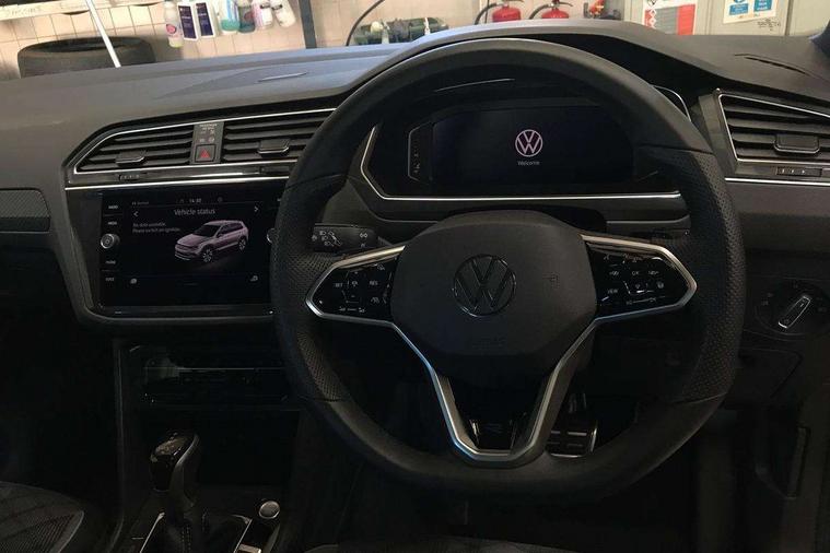 Adaptive cruise control ACC stop and go including speed limiter, App-Connect incl. App-Connect Wireless for Apple CarPlay and Android Auto, Bluetooth phone integration system, Distance control assist, Driver alert system, Driver profile selection, Dynamic road sign display, eCall emergency call system, Electromechanical speed sensitive power steering, Engine start/stop button, Lane keeping system Lane Assist, Lights on warning, Multifunction front facing camera, Outside temperature display, Premium multifunction display with multi colour display, Remote control boot opening, Rev counter, Revision / skills operating concept travel assistant, Service interval indicator, Speed limit display, Start/stop system with regenerative braking, Trip computer, Warning sound and light for doors and tailgate open, Battery regeneration during braking, XDS electronic differential lock for improved traction and handling, 4 X 20 watt output, 8 Speakers, Diversity antenna for FM reception, SD card slot, Simultaneous pairing of 2 compatible mobile devices, SMS functionality - read, compose and send SMS messages using touch-screen display, Title and cover art display, USB C ports, Auto dimming interior rear view mirror, Automatic headlight control system, Body colour door handles, Chrome moldings on the side windows, Coming/leaving home lighting function, Dynamic headlight range control, Front and rear electric windows, Heated rear window, High level 3rd brake light, Laminated safety glass windshield, heat and sound insulating, LED headlamps with LED separate daytime running light and dynamic cornering light, LED rear combination lamps, LED rear number plate lights, License plate carrier in front and rear, Poor weather light and cornering light, R Line body kit, R Line side sills, Rain sensor windscreen wipers, Rear exhaust tailpipe, Rear fog lamp, Rear side wing doors, Rear spoiler in R style, Rear windscreen washer and wiper with interval delay, Side and rear windows in heat insulating glass, Trailer Stability Programme, Unique R Line badging, Windscreen wipers/ intermittent wipe + 4 position delay, 12V outlet in center console rear and in luggage compartment, 12V outlet in front and tray, 2 cup holders in front, 2 LED front reading lights, 2 LED rear reading lights, 3 bench rear seats in 2nd row, 3 rear headrests, 4 load lashing points, 40:20:40 split folding rear seats, Air Care Climatronic 3 zone automatic climate control with enhanced air filter and controls in the rear, Backrest release for left front seat, Black headlining, Brushed stainless steel pedals and footrest, Carpet mats in front and rear with decorative stitching in Gray, Climate control unit rear with touch function, Door and side trim panel in foam film, insert in leatherette, Front centre armrest, Front footwell illumination, Front seats head restraints (x-adjustment), Height adjustable front seats, Height/reach adjust steering wheel, Instrument lighting white adjustable panel illumination, Interior light with delay, Isofix Preparation 2 Rear child seats, Leather gear knob, Lockable cooled glovebox, Luggage compartment lighting, Luggage net, Rear bench seat asymetrically split folding, longitudinally movable and folding with load-through hatch and center armrest, Remote unlocking for rear seat backrest, Removable luggage cover, Removable rear headrests, Safety optimised front head restraints, Single front passenger seat, Sliding/reclining rear seats, Standard rear seat release, Storage compartment in driver's door, Storage compartment in passenger's door, Storage compartment in rear doors, Storage compartments in luggage area left and right, Storage tray on dashboard, Sun visors with illuminated vanity mirrors, Top front comfort seats, Variable boot floor, height adjustable and removable, Driver assistance pack plus - Tiguan DSG, 3 point seat belt for centre rear seats, 3 point seat belts with seat belt pretensioners for the outer rear seats, Active bonnet, Curtain airbags for front and rear passengers, Driver/Front Passenger airbags, Drivers knee airbag, Electronic parking brake with auto hold, Electronic Stability Control with driver steering recommendation, ABS, ASR, EDL, EDTC and trailer stabilization, Front assist with autonomous emergency braking (for Adaptive Cruise Control ACC up to 130 mph), Front disc brakes, Front passenger airbag deactivation, Front side airbags, Height adjustable front 3 point seatbelts + pretensioners, Hill hold control, Manual child proof rear door locks, Pedestrian monitoring system, Power assisted brakes, Proactive passenger protection system in combination with front assist, Rear disc brakes, Rigid safety cell with front and rear crumple zones, Two tone horn, Warning sound and light for front seat belts if unfastened, Anti theft alarm system with interior monitoring, backup horn and towing protection, Anti theft wheel bolts, Electronic engine immobiliser, Tool kit,