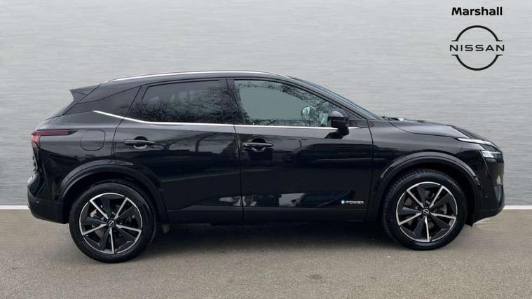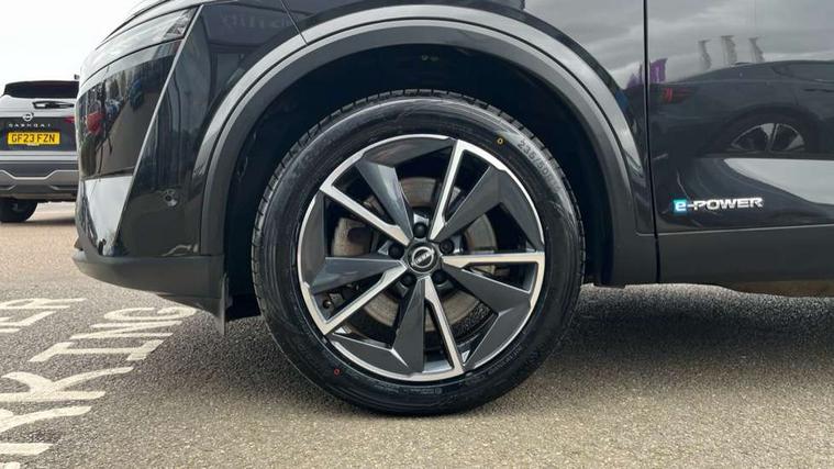 Advanced windscreen head up display, Android auto/Apple CarPlay (Wired), Blind spot warning, Drive modes (sport, normal, eco), Electric speed sensitive power steering, Emergency and breakdown call, Front and rear parking sensors, Full Digital 12.3" TFT Digital Combimeter, Google maps services - search, weather, 3D maps and Google street view, Hands free power tailgate, Idle stop/start system, Intelligent around view monitor, Intelligent Cruise control (ICC), Intelligent driver alert system, Intelligent forward collision warning, Intelligent lane intervention, Lane departure prevention, Lane departure warning system, Lane keep assist, Moving object detection, Nissan connect 12.3 inch touchscreen infotainment system, Nissan connect navigation, ProPILOT with Navi-Link, Push button starter, Rear cross traffic alert, Rear view camera, Remote control services - door locks, lights, horn and car locator, Telematics - notifications and connectivity services, TomTom live traffic services, Traffic sign recognition with legal speed adjustment, Trip computer, Virtual personal assistant and firmware over the air capability, Wireless apple carplay, Wireless charging pad, 6 speakers, AM/FM audio system with DAB, Bluetooth audio streaming, Front USB connections (Type-A and Type-C), Rear USB charging only ports (Type-A and Type-C), Auto dimming rear view mirror, Auto rear wiper when reversing, Automatic hazard signal with emergency stop signal, Body colour mirror caps, Body coloured door handles, Bodyside mouldings, Chrome side window finisher, Door handle with button, e-POWER badging, Electric auto folding door mirrors, Electrically adjustable and heated door mirrors with LED turn indicator, Follow me home headlights, Front and rear LED turning signals, Headlights auto levelling system, Intelligent auto headlights, LED daytime running lights, LED headlights with adaptive driving beam, LED rear lights, One touch front and rear electric windows with remote opening and closing, Partially body coloured bumpers, Privacy glass, Rear bumper with graphite insert, Rear reversing light (bulb lighting), Rear roof spoiler, Rear side wing doors, Rear styling plate, Shark fin antenna, Splash free rain sensing wipers, Super UV and infrared cut glass, Thermaclear heated windscreen, Three blink turn signal, 12v power socket in dashboard and luggage, 2x Rear coat hooks, 3 bench rear seats in 2nd row, 3 rear headrests, 4 folding assist grip, 6 Luggage hooks - 4 on floor, 2 on side, 60/40 split folding rear seat bench, Ambient lighting around centre console, Ambient lighting in front doors, Centre console storage tray, Chrome interior door handles, Cloth/syntech leather monoform upholstery, Dark black/blueish PVC wrapping, Dark headlining, Driver and front passenger sunvisors with illuminated vanity mirrors, Driver seat back pocket, Dual zone automatic climate control with pollen filter, e-POWER shifter, Electrically adjustable driver seat, Electrically adjustable lumbar support for driver, Front and rear door storage, Front centre console and armrest, Front cupholders x 2, Front door with bottle holders, Glovebox with light, Hard trunk cover, Heated front seats, Heated steering wheel, Height adjustable driver's seat, Height adjustable front headrests, Height adjustable passenger seat, Leather steering wheel, Luggage board system, Luggage space lighting, Manual lumbar support on passenger seat, Manually adjustable passenger (slide recline + lifter), Multifunction steering wheel, Passenger seat back pocket, Rear armrest with 2 cupholders, Rear door bottle holders, Single front passenger seat, Soft PVC kneepad, Steering wheel switches, Tilt/telescopic adjustable steering wheel, Two rear isofix child seat anchorage points with top tether, Welcome light and doors with console tray ambient lighting, Glass roof pack with roof rails - Qashqai, 3x3 point rear seatbelt pretensioners + load limiters, ABS with EBD and brake assist, Active brake limited slip, Auto hold function, Child locks on rear doors, Curtain and front side, far side airbags, Driver and passenger airbags, Driver, passenger and 2nd row rear seat belt reminder, Electronic parking brake, Front seatbelt pretensioners + load limiters, Height adjustable front seatbelts, Hill start assist, Intelligent blind spot intervention, Intelligent front emergency braking with pedestrian, cyclist recognition and junction assist, Intelligent rear automatic braking, Tyre pressure monitoring system, Vehicle dynamic control, Capless fuel filler, Engine immobiliser, Intelligent Key, Remote central door locking with deadlocking, Thatcham Cat.1 alarm, Interior instrumental panel C finisher, 19" Diamond cut alloy wheels, Tyre puncture repair kit,