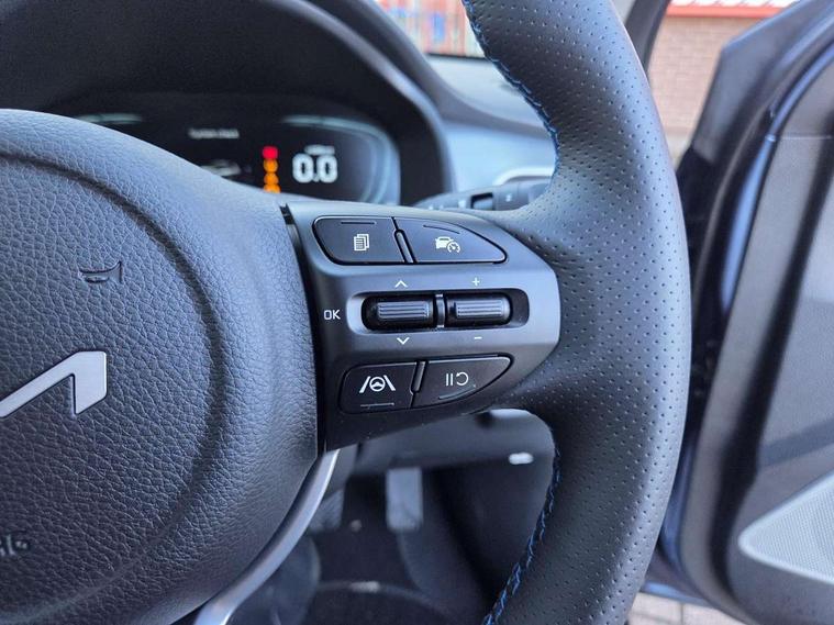 4.2" supervision colour cluster display, 8" touchscreen navigation, Apple car play/Android Auto with voice control, Cruise control + speed limiter, Drive mode selector, Electric power steering, Emergency call service, Emergency stop signalling system, External temperature display, Forward Collision-Avoidance Assist (FCA) - City/Pedestrian/Cyclist, Intelligent speed limit assist, Lane follow assist, Lane keeping assist system (LKAS), Driver attention warning (DAW) and High beam assist (HBA), Rear parking sensor, Reversing camera system, Trip computer, Intelligent Stop and Go, Audio system with 6 speakers, Bluetooth with music streaming, Steering wheel mounted controls, USB ports for connection of a media device, All round electric windows with drivers auto up/down function, Auto dimming rear view mirror, Automatic defog system, Automatic headlights control, Black side sill, door garnish and wheel arch trims, Black/body colour bumpers, Body coloured door mirrors with matt black lower housing, Body coloured exterior door handles, Body coloured rear roof spoiler with high mounted LED braking light, Chrome side window trim, Electrically adjustable/heated/folding door mirrors with LED indicators, Front and rear silver skid plates, Front fog lights, Headlight levelling device, Heated rear window, High gloss black radiator grille, LED Bi-function projection headlights with static bending, LED daytime running lights, LED position light, LED rear combination lights, Premium paint, Privacy glass - Rear windows and tailgate, Rain sensing front wipers, Rear fog lights, Rear side wing doors, Rear wash/wipe, Roof rails, Shark fin antenna, Speed variable front wipers, Tinted glass, Welcome and follow-me home light functionality, Windscreen Washer Level Warning, 12V power point front, 3 seat bench in 2nd row, 60/40 split folding rear seat, Air filter, All-round height adjustable headrests, Alloy pedals, Automatic air conditioning, Blue centre console detailing, Centre armrest storage box, Centre console with cupholders, Cloth and artificial leather upholstery, Dash illumination dimmer switch, Front and centre cabin lights, Front and rear door map pockets with bottle holder, Front and rear door storage, Gear shift indicator, Glovebox illumination, Heated front seats, Heated steering wheel, ISOFIX Child seat top tethers and anchor fixings outer rear seats, Leather steering wheel with blue contrast stitching, Leather trimmed gearshift, Luggage area light, Luggage area parcel shelf, Luggage net with hooks, Manual driver seat adjustment, Overhead console lamp, Overhead console with sunglasses cases, Passenger front seatback pockets, Rear USB charging port, Satin chrome interior door handles, Single front passenger seat, Sunvisors with vanity mirror illumination (Driver and front passenger), Tilt/telescopic adjustable steering wheel, ABS with Electronic Brakeforce Distribution (EBD) and Brake Assist System (BAS), All round 3-point seatbelts, Electronic stability control (ESC) and vehicle stability management (VSM), Front passenger airbag cut-off switch, Front seatbelt pretensioners + load limiters, Height adjustable front seatbelts, Hill start assist control (HAC), Impact sensing auto door unlocking, Manual child lock in rear doors, Rear airbags, Rear seat Occupancy alert, Seatbelt reminder warning, Twin curtain airbags, Twin front airbags, Twin front side airbags, Tyre pressure monitoring system, Alarm system, Customisable automatic door unlocking, Door deadlocks, Engine immobiliser, Locking wheel nuts, Smart key with engine start/stop button, Speed sensitive auto door locking, Visible vehicle identification number, High gloss black centre fascia, 17" Gunmetal grey alloy wheels, Tyre mobility kit,