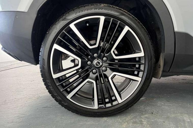 12.3" Progressive Driver Display, 360 degree surround view parking camera with side proximity sensors, 9" centre console portrait touch screen, Adjustable steering wheel force, Android auto (Wired), Apple carplay (wired), Bluetooth handsfree system, Driver alert control, Driver assistance (pilot assist and adaptive cruise control), Driver awareness - Blind spot information system with steer assist, cross traffic alert with autobrake and rear collision warning and mitigation, E-call, Front park assist, Google automotive services - Enabled entertainment apps, navigation with google maps, voice recognition with google assistant, Hands free power tailgate, Intelligent speed assistance, Lane keeping aid, Oncoming Lane Mitigation, Rear park assist, Speed sensitive steering, Volvo cars services with app - Driving journal, emergency and breakdown call, engine remote start, remote door locking/unlocking and vehicle dashboard, Wireless/Inductive Mobile Phone Charging, Automatic transmission with start/stop and manual change functions, Dynamic chassis, DAB Digital radio, Premium Sound by Harman Kardon, Dolby Pro Logic II Surround Sound, Dirac Unison, 12 speakers/600W and subwoofer, Steering wheel mounted remote controls, Active bending pixel LED headlights with adaptive shadow technology, Active high beam incorporating daytime running lights, Adaptive brake lights with high level LED brake lights, Auto dimming feature for exterior door mirrors, Auto dimming interior mirror, Automatic headlamp levelling, Dark tinted windows - rear side windows and rear screen, Front aluminium tread plates, Front and rear electric windows, Headlight cleaning system, High gloss black front and rear skid plate, High gloss black front bumper deco, High gloss black mesh front grille with high gloss black surround, High gloss black window trim, Home safe and approach lighting, Integrated roof rails in high gloss black, LED front fog lights with cornering function, Power glass tilt and slide panoramic sunroof with sun curtain, Puddle lights, Rain sensor with automatic windscreen wiper activation, Rear side wing doors, Rear wiper, Roof antenna, Roof spoiler, Visible VIN plate, 12V socket in front tunnel console and luggage compartment, 2-Zone electronic climate control with CleanZone air quality system and pollen filter, 3 seat bench in 2nd row, 3 Spoke tailored steering wheel with chrome trim, 60/40 versatile split folding rear seat, Centre console cupholders and storage, Flexible load floor and grocery bag holder, Floor mats, Front cabin courtesy lights, Front door pocket, front cupholder, ambient front door, rear reading, rear courtesy, instrument panel and tailgate lighting, Front footwell illumination, Front headrests, Front reading lights, Front seat cushion extensions, Front side step illumination (under door), Glovebox bag hook, Heated front seats, Height/reach adjustable steering column, High gloss centre tunnel deco, Illuminated glovebox, Illuminated luggage compartment, Illuminated vanity mirrors + ticket holder, Integrated waste bin, Isofix attachments on outer rear seats, Load cover, Load protection net, Multi directional lumbar support for driver and passenger seat, Power driver seat with memory + exterior mirrors memory, Power folding rear headrests, Power passenger seat, Rear armrest with cupholders, Single front passenger seat, Underfloor cargo storage, Climate pack without heated front seats - XC40, 3x3 point rear seatbelts, City safety with steering support with Pedestrian + cyclist + front collision warning with full auto brake and rear auto brake, Driver and passenger airbags, Drivers knee airbag, Electronic parking brake with auto hold, First aid kit, Front and outer rear seatbelt reminder and pretensioners, Front seats SIPS airbags, Hill descent control, Hill start assist, Inflatable curtain, Passenger airbag cut-off device, Power child locks on rear doors, Road sign information display, Run off Road Protection, SIPS (Side Impact Protection System), Slippery road and hazard light alert, Stability and Traction Control with Spin control, Engine Drag Control and Corner Traction Control, Tyre pressure monitoring system, Vehicle deceleration control with Anti-lock Brake System, Electronic Brake Distribution and Emergency Brake Assist, Warning triangle, WHIPS whiplash protection system - front, 2 x Key integrated remote control central locking including with deadlocking system and auto open/close windows and sunroof, Anti-theft alarm including immobiliser/volume sensor + level sensor, Keyless drive includes keyless entry and keyless start, Locking wheel nuts,