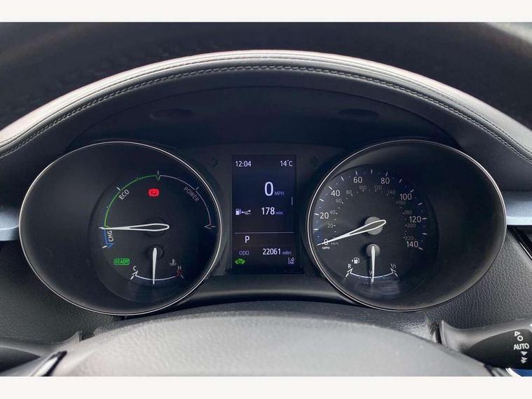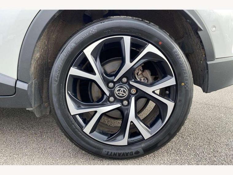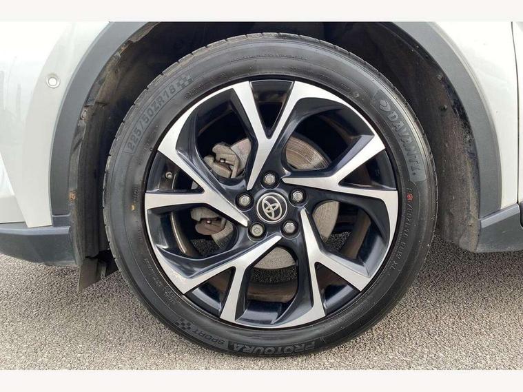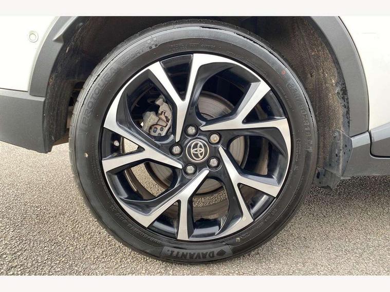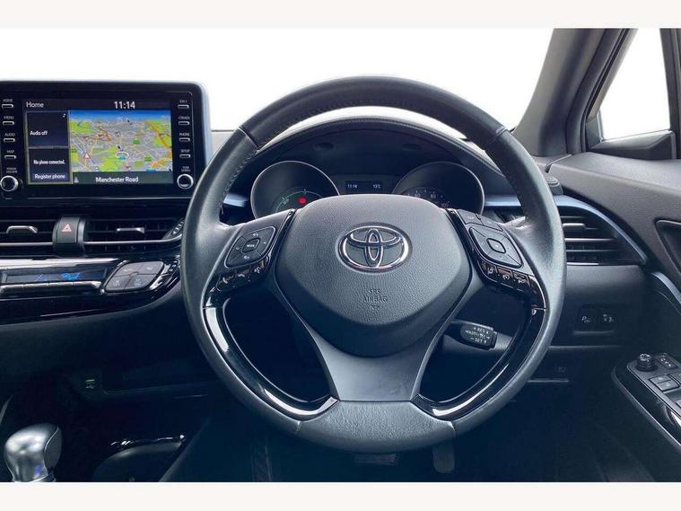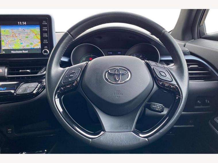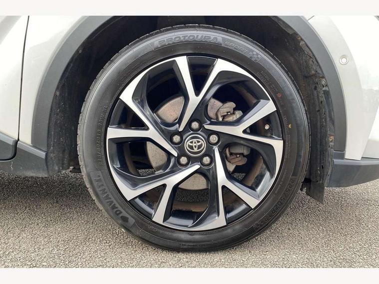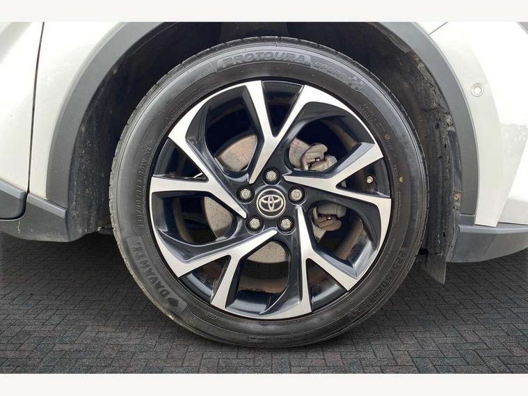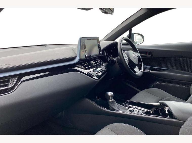 4.2" coloured TFT screen for multi-information display, Adaptive cruise control, Bluetooth connectivity, Electric power steering, Hybrid system indicator, Lane departure alert with steering control, Remote boot door release in cabin, Remote boot door release in key, Reversing camera, Road sign assist - RSA, Simple Intelligent parking assist, Touch 2 Go navigation system, Trip computer, Voice recognition, Vehicle Stability Control (VSC), 6 speakers, Aux connectors + 12V front outlet, DAB Radio (Digital Audio Broadcasting), Toyota touch 2 multimedia system with 8" display, USB connector integrated with radio and CD player, Wi-fi connectivity, Anti-jam protection on power windows, Auto high beam, Auto up and down function on all power windows, Automatic headlights, Automatic headlights cut-off, Automatic wipers with heated folding mirrors, Black and body coloured rear bumper, Black front bumper, Black upper front grille, Body colour door handles, Body colour door mirrors, Boot door release with push button, Electric heated door mirrors, Follow me home headlights, Front and rear power windows, Front fog lights, Front spoiler, Hard tonneau cover, Honeycomb lower front grille, LED daytime running lights, LED front light guide, LED High mounted stop light, LED rear brake lights, LED rear combination lights, Manual headlight levelling, Noise reduction layer on front windows and windscreen, Power adjustable door mirrors, Privacy glass, Rear spoiler, Rear tailgate, Rear window defogger, Rear window wiper, Reflective LED headlights, Shark fin antenna, UV-filter on driver and passenger windows, UV-filter on rear windows, 12v power outlet - front, 3 rear headrests, 3 spoke leather steering wheel, 60/40 split folding rear seat, Adjustable rear headrests, Adjustable speed limiter switch on steering wheel, Assist grips front and centre pillar, Audio and telephone switches on steering wheel, Black front door assist grips, Blue ambient lighting on front cup holders, Blue ambient lighting on front doors, Boot light, Chrome interior door handles, Cloth upholstery, Driver and front passenger personal light, Driver and front passenger Whiplash Injury Lessening seats, Driver and passenger seatback pockets, Dual zone automatic air conditioning, Floor mats, Front cupholders, Front head restraints, Front sports seats, Glovebox with internal light, Heated driver and front passenger seats, Hooks for luggage holding net, Humidifying Nanoe air purifier, Illuminated entry system, Isofix attachments on rear seats, Leather gearshift, Light on driver sun visor, Light on passenger sun visor, Manual telescopic steering wheel, Manual tilt steering wheel, Manually adjustable lumbar support on driver seat, Manually height adjustable driver seat, Manually height adjustable front passenger seat, Manually reclining driver seat, Manually reclining front passenger seat, Manually sliding driver seat, Manually sliding front passenger seat, Microphone on front personal light, Mirror on driver sun visor, Mirror on passenger sun visor, Multimedia switches on steering wheel, Pollen filter, Shopping bag hooks, Slow opening on lower glovebox, Voice recognition switch on steering wheel, Parking sensor pack - C-HR, 16 Disk front wheel brake, 3x3 point rear seatbelts, ABS+EBD+Brake assist, Electronic parking brake, ESP + traction control, Front and rear seatbelt reminder, Front passenger airbag on/off switch, Hill start assist control (HAC), Pre collision system with pedestrian detection, Pre-tensioners and force limiters, Rear door child safety locks, SRS Airbags - Driver + Front passenger, front side, front and rear curtain and driver's knee airbags, Toyota safety sense, Tyre pressure monitoring system, Glass-breaking alarm sensors, Immobiliser, Intrusion alarm, Intrusion sensor, Motion sensor alarm, Power door locks, Power passenger window lock, Remote central locking, Remote door lock, Black lower dashboard, Black lower driver dashboard, Black upper dashboard, Piano black console, Satin grey deco line on upper dashboard, Tyre repair kit,