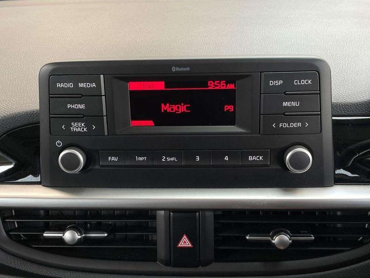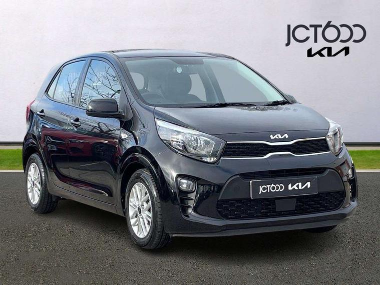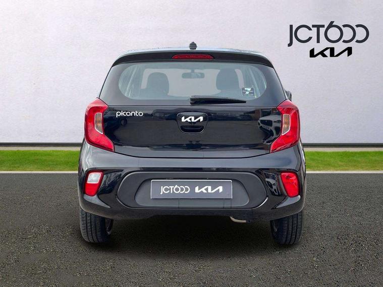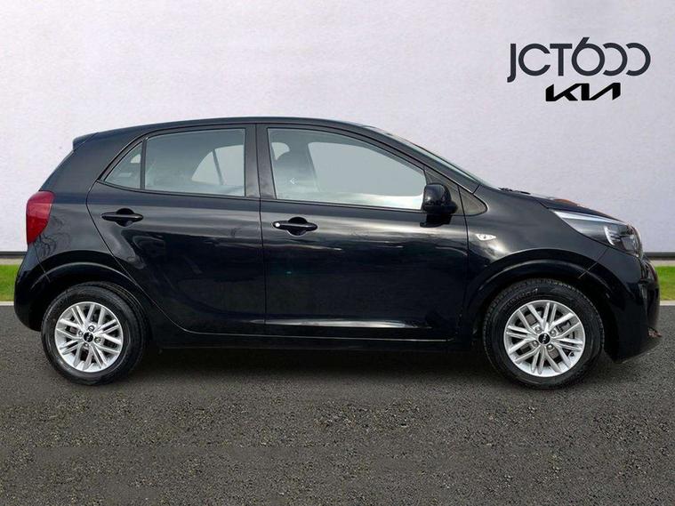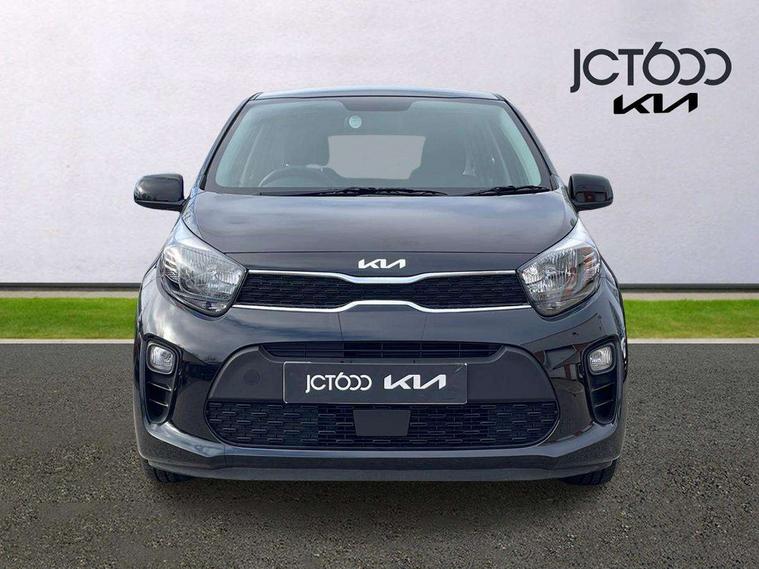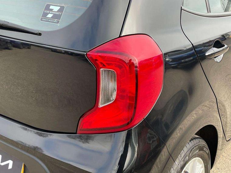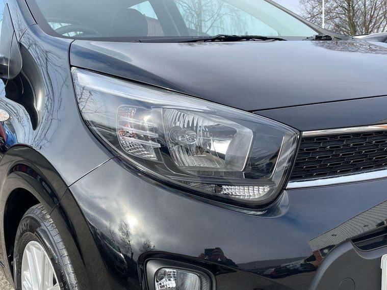 3.8" monochrome audio display with RDS and DAB, Emergency call service, Emergency stop signalling system, External temperature gauge, Motor driven power steering, Tachometer, Tailgate, Trip computer, 4 speaker audio system, Bluetooth with music streaming, Steering wheel mounted controls, USB ports for connection of a media device, Automatic headlight control system, Black radiator grille with chrome surround, Body colour bumpers, Body colour mirrors and door handles, Day/night rear view mirror, Daytime running lights, Electric adjustable heated door mirrors, Front and rear electric windows with drivers's auto up/down function, Headlamp levelling, Heated rear window, High mount brake light, MFR - Multi Focus Reflector halogen headlights with black bezel, Rain sensor, Rear fog lights, Rear side wing doors, Rear wash/wipe, Speed variable front wipers, Tinted glass, Visible VIN plate, Welcome and follow-me home light functionality, 1 x rear coat hook, 12V power point front, 2 seat bench in 2nd row, 3 x passenger assist grips, 60/40 split/folding 2nd row of seats, All round height adjustable headrests, Cupholders in centre console, Driver and front passenger sunvisor with vanity mirror, Driver seat height adjust, Front cabin lights, Glovebox, High gloss lower centre fascia trim, door armrest and air vents, ISOFIX Child seat top tethers and anchor fixings, Leather trimmed steering wheel and gearshift, Luggage area light, Luggage area parcel shelf, Manual air conditioning, Passenger front seatback pockets, Premium cloth upholstery, Silver paint finished interior door handles, Single front passenger seat, Slide/reclining front seats, Tilt adjustable steering wheel, Advanced Driver Assistance Pack - Picanto, 2 x 3-point rear seatbelts, ABS/EBD, Automatic unlocking of doors in case of impact, Dual front airbags, ESC + BAS + VSM + HAC, Front passenger airbag cut-off switch, Front seatbelt height adjusters, Front seatbelt pretensioners + load limiters, Hill hold control, Knee airbags, Rear child proof door locks, Seatbelt warning, Side impact protection, Torque vectoring brake based and straight line stability (SLS), Traction control, Twin curtain airbags, Twin front side airbags, Tyre pressure monitoring system, Anti theft alarm, Engine immobiliser, Folding key, Locking wheel nuts, Remote central door locking, 14" alloy wheels, Tyre mobility kit,