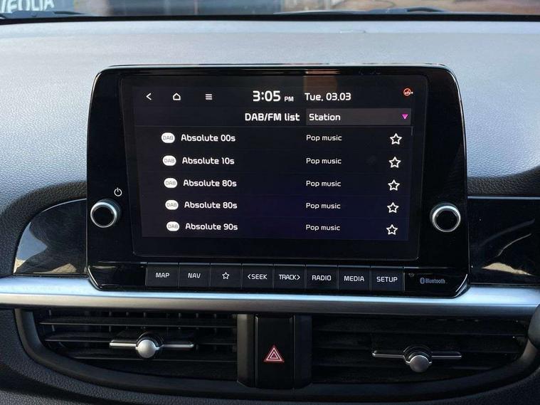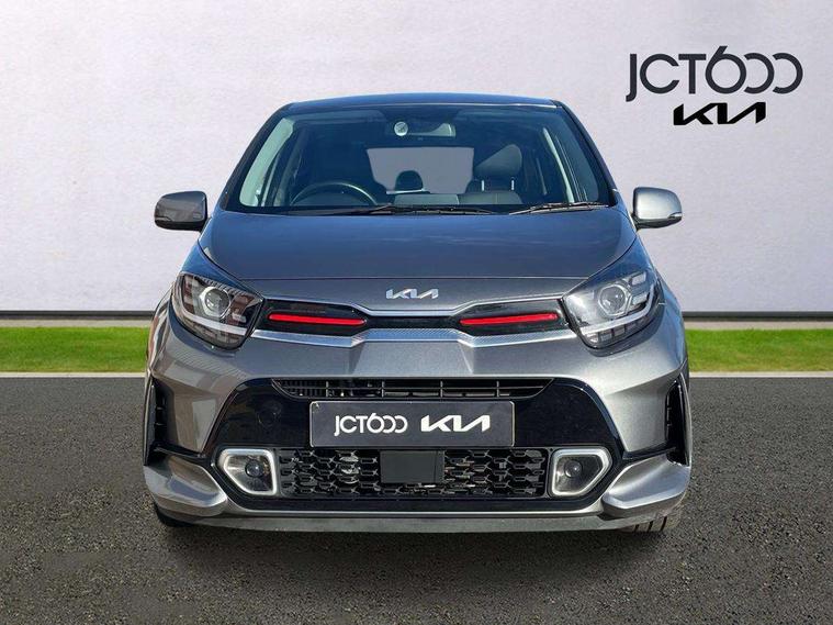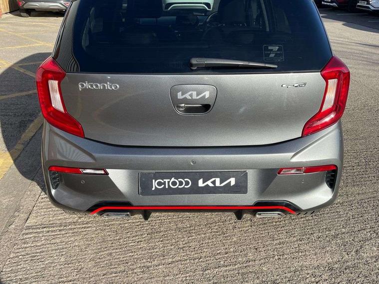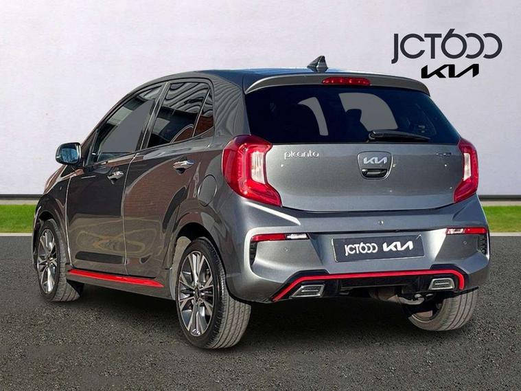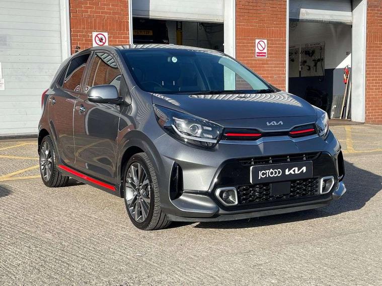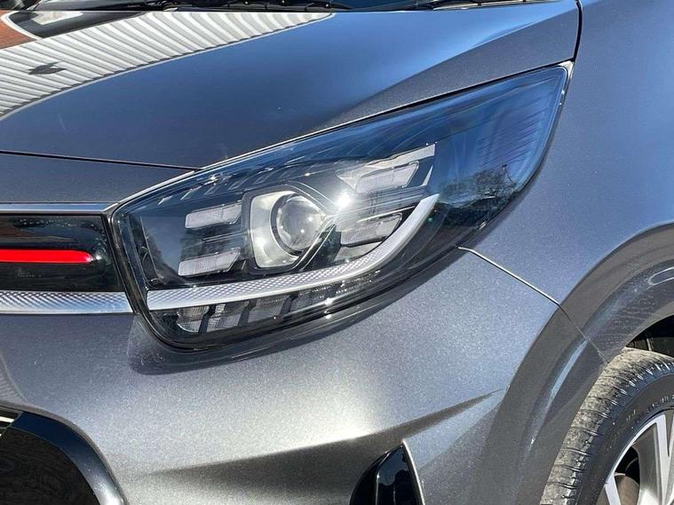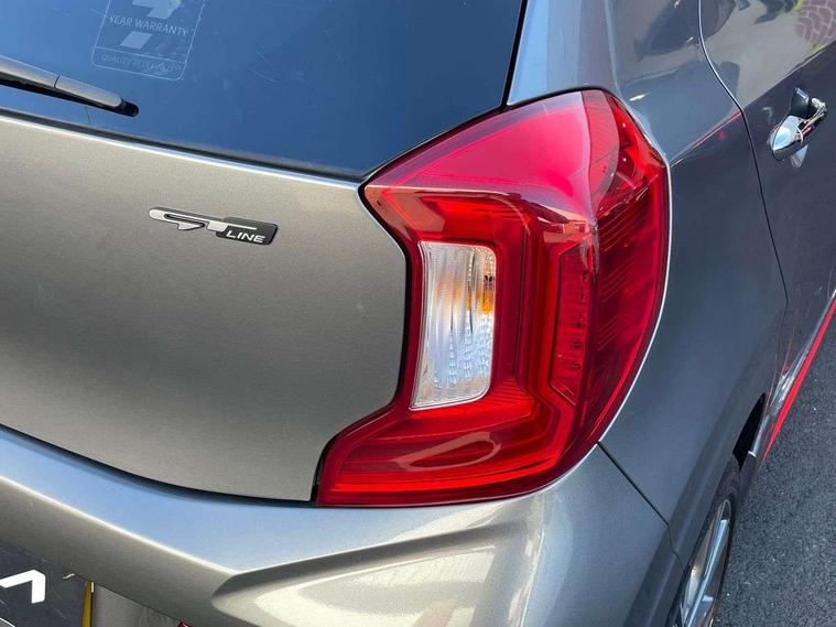8" touch screen satellite naviagtion with RDS and DAB with telematics, Apple car play/Android Auto with voice control, Cruise control + speed limiter, Emergency call service, Emergency stop signalling system, External temperature gauge, Kia Connect (UVO), Motor driven power steering, Rear parking sensors, Reversing camera system with dynamic guidelines (Integrated into centre fascia screen), Tachometer, Trip computer, Wireless Smartphone charger, 6 speaker audio system, Bluetooth with music streaming, Steering wheel mounted controls, USB ports for connection of a media device, Automatic headlight control system, Bi-function projection headlights, Black beltline mouldings, Black grille with silver surround, Body colour B pillars, Body colour bumpers, Body colour side sill mouldings, Body coloured mirrors and chrome exterior handles, Day/night rear view mirror, Electric adjustable/heated/folding door mirrors with LED indicators lights, Front and rear electric windows with drivers's auto up/down function, Front fog lights, Headlamp levelling, Heated rear window, High mount brake light, LED daytime running lights, LED rear fog lights, Privacy glass - Rear windows and tailgate, Rain sensor, Rear side wing doors, Rear wash/wipe, Speed variable front wipers, Sports front and rear bumpers with gloss black skid plates twin exhaust, Tinted glass, Visible VIN plate, Welcome and follow-me home light functionality, 1 x rear coat hook, 12V power point front, 2 seat bench in 2nd row, 3 x passenger assist grips, 60/40 split/folding 2nd row of seats, All round height adjustable headrests, Automatic air conditioning, Black and red accents front door armrest, Centre Console with Storage Box and Sliding Armrest, Cupholders in centre console, D-cut steering wheel with red stitching, Driver and front passenger sunvisors with driver's side illuminated vanity mirrors, Driver seat height adjust, Faux leather upholstery, Front cabin lights, Glovebox, Heated front seats, Heated steering wheel, High gloss lower centre fascia trim, door armrest and air vents, ISOFIX Child seat top tethers and anchor fixings, Leather trimmed steering wheel and gearshift, Luggage area light, Luggage area parcel shelf, Passenger front seatback pockets, Satin chrome interior door handles, Single front passenger seat, Slide/reclining front seats, Tilt adjustable steering wheel, Advanced Driver Assistance Pack - Picanto, 2 x 3-point rear seatbelts, ABS/EBD, Automatic unlocking of doors in case of impact, Dual front airbags, ESC + BAS + VSM + HAC, Front passenger airbag cut-off switch, Front seatbelt height adjusters, Front seatbelt pretensioners + load limiters, Hill hold control, Knee airbags, Rear child proof door locks, Seatbelt warning, Side impact protection, Torque vectoring brake based and straight line stability (SLS), Traction control, Twin curtain airbags, Twin front side airbags, Tyre pressure monitoring system, Anti theft alarm, Engine immobiliser, Locking wheel nuts, Smart key with engine start/stop button, 16" alloy GT-Line wheels, Tyre mobility kit,