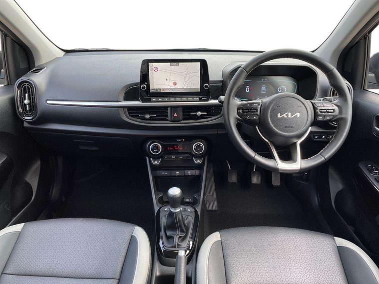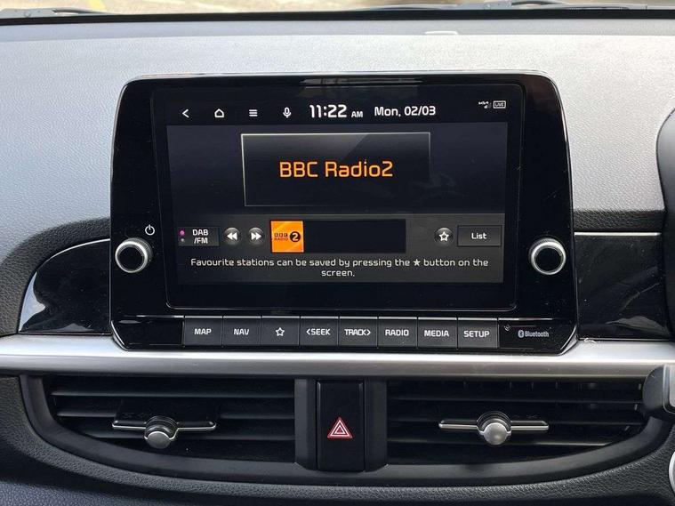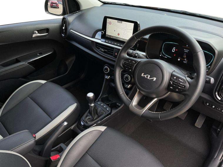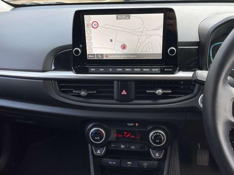 4.2" driver display screen, 8" touchscreen navigation, Apple car play/Android Auto with voice control, Cruise control + speed limiter, Emergency call service, Emergency stop signalling system, External temperature gauge, Forward Collision-Avoidance Assist (FCA) 1.0 - City/Pedestrian/Cyclist, Intelligent speed limit assist, Kia Connect (UVO), Lane Follow Assist 1.0, Lane keep assist, Motor driven power steering, Rear parking sensors, Reversing camera system, Tachometer, Trip computer, Wireless Smartphone charger, 4 speaker audio system, Bluetooth with music streaming, USB ports for connection of a media device, Automatic defog system, Automatic headlight control system, Body colour bumpers, Body colour side sill mouldings, Body coloured door mirrors, Body coloured wheel arches, Electric adjustable/heated/folding door mirrors with LED indicators lights, Electric front and rear windows, Electric front touch drivers front window, Headlamp levelling, Heated rear window, High mount brake light, LED daytime running lights, LED Headlights, LED rear lights, Privacy glass - Rear windows and tailgate, Rain sensor, Rear fog lights, Rear side wing doors, Rear wiper, Silver window surround, Speed variable front wipers, Tinted windshield glass, Visible VIN plate, 12V power point front, 3 seat bench in 2nd row, 60:40 Split folding rear seats, All round height adjustable headrests, Artificial leather steering wheel, Artificial leather upholstery, Automatic air conditioning, Centre console storage box, Driver and front passenger sunvisors with driver's side illuminated vanity mirrors, Front and rear door storage, Front cabin lights, Front passenger USB-C charging port, Glovebox, Grey headlining, Heated front seats, Heated steering wheel, ISOFIX Child seat top tethers and anchor fixings, Luggage area light, Luggage area parcel shelf, Luggage board, Luggage net + hook, Manual adjust steering wheel, Manual adjustable driver and front passenger seat, Rear cabin lights, Rear USB charging port, Single front passenger seat, All round 3-point seatbelts, Anti-lock braking system (ABS), Electronic stability control, Front + rear side airbags, Front airbags, Front passenger airbag cut-off switch, Front seatbelt height adjusters, Hill hold control, Hill start assist control (HAC), Rear airbags, Seatbelt warning, Side impact protection, Torque vectoring brake based and straight line stability (SLS), Traction control, Tyre pressure monitoring system, Vehicle stability management, Anti theft alarm, Engine immobiliser, Folding key, Locking wheel nuts, Manual child locks, Rear occupant alert, Remote central door locking, Smart key with engine start/stop button, Smart key with motion sensor, Thatcham category 2 security alarm and immobiliser, 16" alloy wheels, Tyre mobility kit,