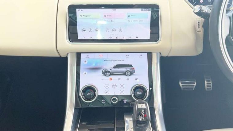 All Terrain Info Centre, Android Auto, Apple car play, Bluetooth connectivity, Electric power assisted steering (EPAS), Incontrol apps in vehicle touchscreen, Interactive Driver display instrument cluster, Mist sensor, Navigation pro system with 10" touch screen, app interface and media storage, Pro services and wifi hotspot, Push button start, Remote premium - Upgraded Incontrol remote app including remote climate control (engine dependent), remote lock + Unlock and remote beep + flash, TFT Virtual Instrument Panel, Touch pro duo system, Trip computer, Gradient release control (GRC), Bluetooth audio streaming, DAB Radio (Digital Audio Broadcasting), Incontrol protect - SOS emergency call with automatic collision detection, optimised assistance call and Incontrol remote app essential, USB/aux input socket, Acoustic front and toughened rear side glass, Acoustic laminated front windows, Adaptive brake lights, Auto dimming interior rear view mirror, Automatic headlights, Body coloured bumpers, Body coloured door mirrors, Centre high mounted stop light, Electric windows with one touch open/close and anti trap, Electrical towing preparation, Engine cover, Follow me home lighting, Front and rear recovery eyes, Front fog lights, Headlight power wash, Heated rear window, Heated windscreen includes heated washer jets, LED rear lamps, Privacy glass (Tinted glass rear of B pillar), Rain sensing windscreen wipers, Rear fog lights, Rear side wing doors, Rear wash/wipe, Remote window closing, Side repeater indicators in mirror, Sport Badge in silver, Standard bonnet, Trailer stability assist, 2 way active front head restraints, 2 way rear head restraints, 3 seat bench in 2nd row, 60/40 load through rear seats, Auto air recirculation, Bright metal foot pedals, Centre console with armrest, Climate control memory, Customer configurable single point entry, Driver's footrest, Front and rear cupholders, Front door storage space, Front map lights, Front seat back map pockets, Front stowage pocket, Front/rear passenger grab handles, Heated steering wheel, Isofix child seat preparation, Leather steering wheel with Atlas inserts, Loadspace light, Loadspace mounting provisions, Lockable glovebox, Multifunction steering wheel, Pollen filter, Power socket, Reach/rake electric adjustable steering column + entry/exit tilt away, Rear centre armrest, Rear ISOFIX, Roller blind loadspace cover, Satin chrome gearshift paddles, Single front passenger seat, Three 12V accessory power outlets, Smartphone pack - Range Rover Sport, 3 point seatbelts on all seats, Anti-lock braking system (ABS), Brake pre-fill technology, Cornering brake control (CBC), Curtain airbags, Customer configurable autolock, DSC - Dynamic Stability Control, Dual stage driver/passenger airbags, EBD - Electronic brakeforce distribution, Electric parking brake, Electronic traction control, Emergency braking includes city, urban AEB and pedestrian, Front seatbelt pretensioners, Gradient acceleration control, Grey anodised brake calipers, Height adjustable front seatbelts, Hill descent control, Hill launch assist, Low traction launch, Passenger seat occupant detector with front airbags, Power operated child locks, Roll stability control, Seatbelt warning, TPMS (Tyre pressure monitoring system), Immobiliser, Intrusion sensor, Keyless entry, Locking wheel nuts, Perimetric and volumetric anti theft alarm, Remote locking, Grand black veneer,