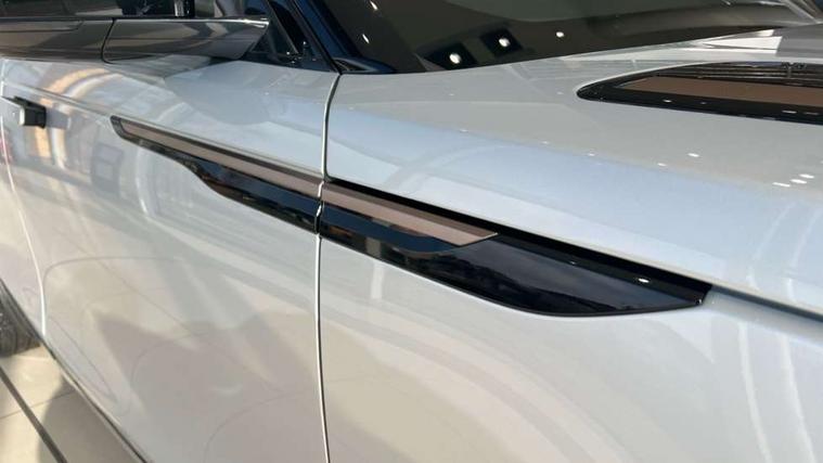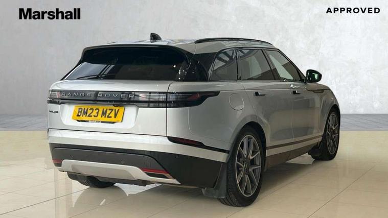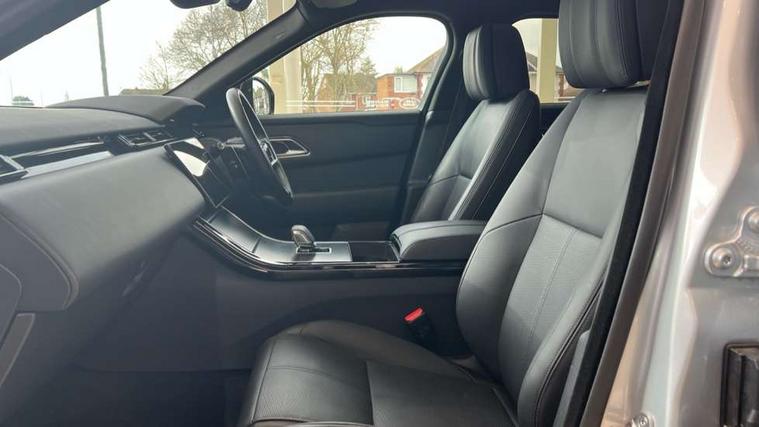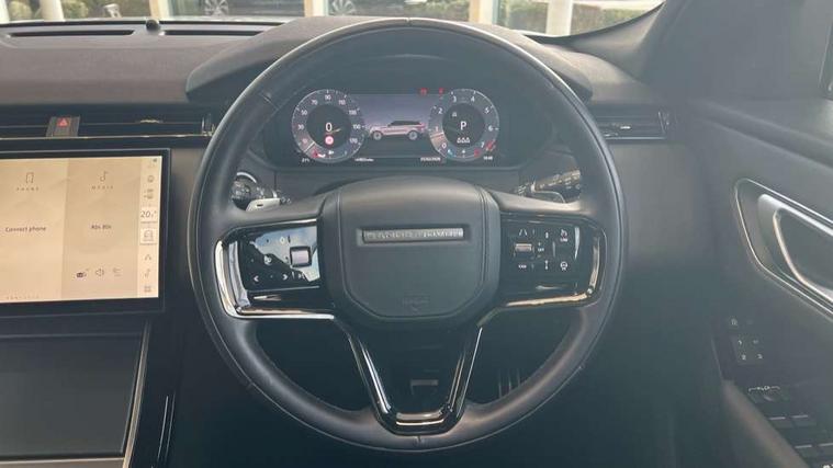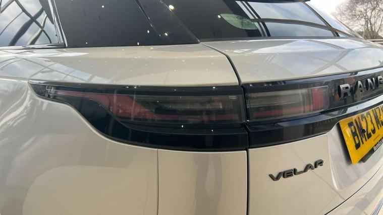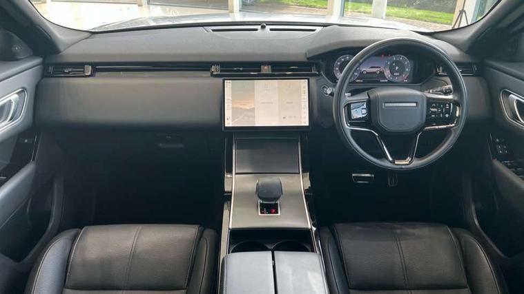 Adaptive cruise control with steering assist, Android Auto, Apple CarPlay, Blind spot assist, Bluetooth connectivity, Brake pad wear indicator warning light, Driver condition monitor, eCall emergency call system, Front and rear parking aid, InControl remote, Land Rover InControl apps, Lane keep assist, Pivi pro with connected navigation, Rear collision monitor, Rear traffic monitor, Service indicator, Speed proportional electronic power assisted steering (EPAS), Traffic sign recognition with adaptive speed limiter, Trip computer, Voice control system, 8 speed automatic transmission, Adaptive dynamics, All terrain progress control, Open differential with torque vectoring by braking, Single speed transfer box, DAB radio, Steering wheel mounted controls, 3rd brake light, Acoustic laminated windscreen, Auto dimming interior rear view mirror, Automatic headlamp levelling, Automatic headlights, Black roof rails, Body coloured bumpers, Boot protection plate, Electric windows with one touch open/close and anti trap, Flush deployable exterior door handles, Follow me home headlights, Heated rear window with timer, Heated washer jets, Metal front tread plates, Metal load space scuff plates, Pixel LED headlights with signature DRL, Power fold, auto-dimming, heated door mirrors with memory and approach lights, Rain sensor windscreen wipers, Rear animated directional indicators, Rear fog lights, Rear side wing doors, Rear wash/wipe, Tailgate/boot lid spoiler, Trailer stability assist, Velar badge, 3 seat bench in 2nd row, Ambient lighting, Bright metal pedals, Carpet mats, Driver/passenger sunvisors with illuminated vanity mirrors, Ebony morzine headlining, Electrically adjustable steering column, Heated steering wheel, Isofix system on outer rear seats, Loadspace cover, Overhead lighting console, Overhead stowage for sunglasses, Passive front headrests, Rear air vents, Rear centre headrest, Single front passenger seat, Twin front cupholders, Twin sliding front centre armrest, Online pack with data plan - Velar, Power socket pack 2 - Velar, 355mm Front and 325mm Rear brakes, 3x3 point rear seatbelts, Anti-lock braking system (ABS), Cornering brake control, Curtain airbags, Customer configurable autolock, Door side intrusion beams, Driver airbag, DSC - Dynamic Stability Control, Electronic brake force distribution, Electronic parking brake, Electronic traction control, Emergency braking, Front and rear seatbelt reminder, Hill descent control, Hill launch assist, Low traction launch, Passenger airbag, Power operated child locks, Rear airbags, Roll stability control, Side airbags, Tyre pressure monitoring system (TPMS), Global lock and unlock switch on driver door, Immobiliser, Intrusion sensor, Keyless entry, Lock only switch on front passenger door, Locking wheel nuts, Perimetric alarm, Remote central locking,