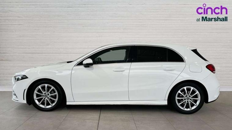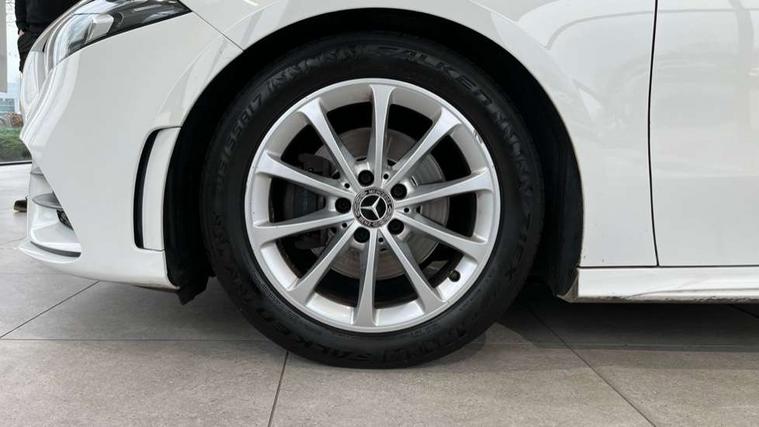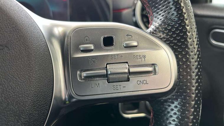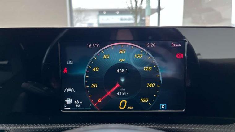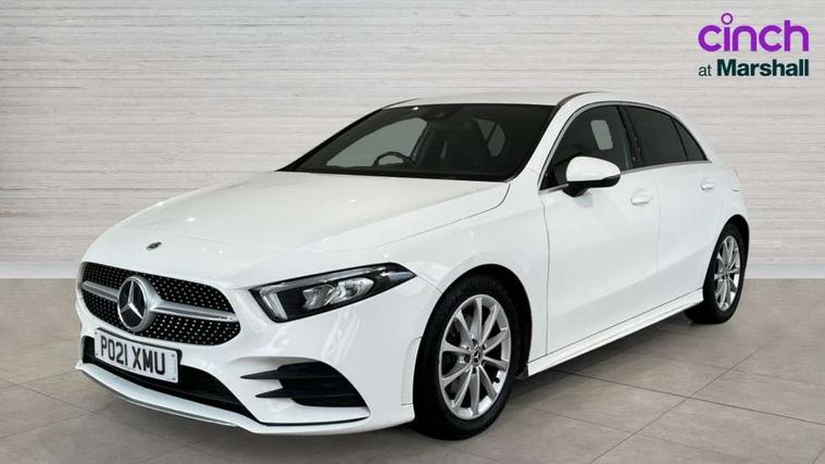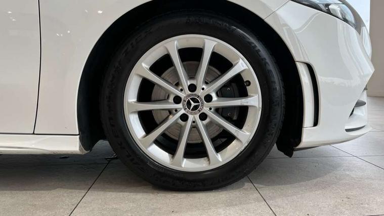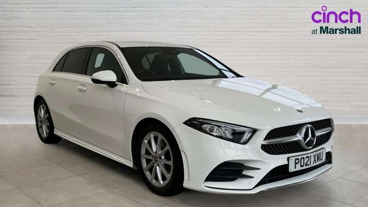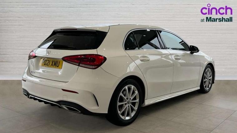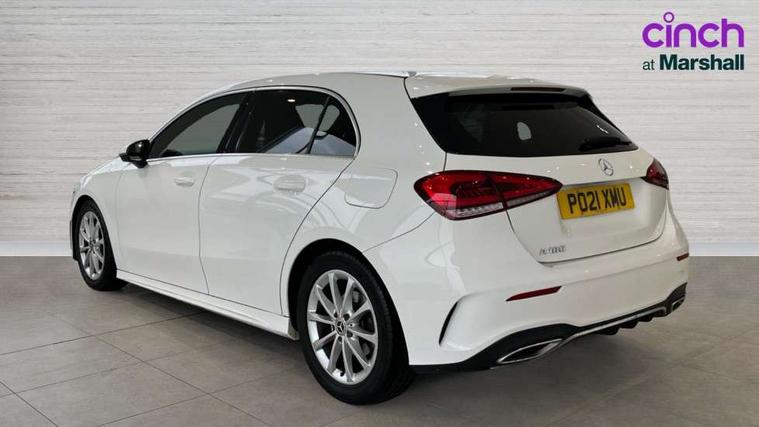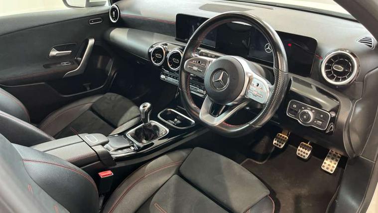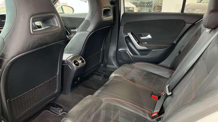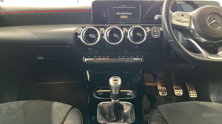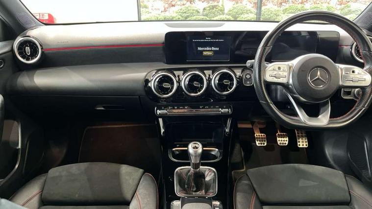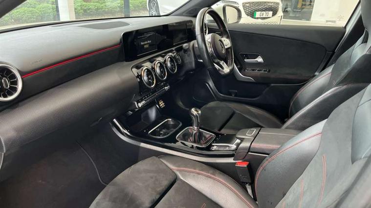 180 degree rear view camera with parking guidelines, 7" colour screen in instrument panel, 7" touchscreen media display, Attention assist, Brake pad wear indicator warning light, Car wash mode, Cruise control + speed limiter, Direct steering, Dual bluetooth interfaces, DYNAMIC SELECT with a choice of driving modes (ECO, Comfort, Sport and Individual), ECO start/stop function, Fluid level warning indicator for fuel, oil, coolant and washer fluid, Hard-disk navigation, Hey Mercedes Voice activation, Lamp failure indicator, Mercedes me connect including emergency call system, accident recovery, breakdown and maintenance management, Mercedes me remote services, Outside temperature gauge, Owners manual in English, Pre-installation for private car sharing, Preinstallation for Mercedes Benz link, Service indicator (ASSYST), Speed sensitive power steering, Trip computer, Lowered comfort suspension, Rear axle torsion beam, 2 USB ports (type C) in rear stowage compartment and one in front of center console, 6 speakers, DAB Digital radio, MBUX multimedia system with DAB digital radio and touchpad including satellite navigation, Mercedes-Benz sound system - 100W, 4 Electric Front and Rear windows, Adaptive brake lights, AMG bodystyling - Front apron with splitter in chrome, rear apron with chrome trim and chrome visible trim elements in tailpipe, Black weather strip, Body colour bumpers, Body colour door handles, Body colour side skirt, Body coloured door mirrors, Chrome beltline trim, Diamond radiator grille with chrome pins and silver louvre + chrome insert, Electric adjustable and heated door mirrors with integrated LED side indicators, Exhaust system - Twin visible tailpipes in polished stainless steel, Headlamp assist automatic headlamp activation, Heated glass rear windscreen + timer control, LED high performance headlamps with integrated LED daytime running lights, LED tail lamp, LED third brake light, Privacy glass, Radio aerial, Rain sensing windscreen wipers with two sensitivity settings, Rear fog lights, Rear wiper, Window line trim strip in chrome, 3 Spoke flat bottom leather multi function steering wheel with perforated leather in grip area, 40:20:40 split folding rear seats, Artico man-made leather/Microfibre Dinamica upholstery with red contrast stitching, Auto Mercedes-Benz child seat recognition sensor, Black air vents with surround in silver chrome, Black roof lining, Brushed stainless steel sports pedals with rubber studs, Controller on centre console with chrome surround, Floor mats with stitched edging and AMG lettering, Front centre armrest with storage compartment, Front door sills with Mercedes Benz lettering, Front seat backs luggage nets, Front seat cushion length adjustment, Heated front seats, Height/reach adjustable steering column, Interior mirror with reading lamps in black and frameless, Manual height adjustable front seats, Rear head restraints, Seat occupancy sensor for front passenger seat, Sports seats with integrated headrests, Sunvisors with illuminated vanity mirrors, Touchpad on center console, Twin front cupholders, Two zone thermotronic luxury automatic climate control, Light and sight pack - A Class, Seat comfort pack - A Class, 3 rear 3 point seatbelts, ABS with Brake Assist, Active bonnet, Active brake assist includes forward collision warning system with autonomous braking, Adaptive brake assist with hold function and hill start assist, Black seatbelts, Childproof locks manually operated for rear doors and electrically operated for rear power windows, Crash responsive emergency lighting, Driver and passenger head and side airbags, Drivers knee airbag, Dual stage driver/passenger airbags, Electronic parking brake, ESP curve dynamic assist, ESP with ASR, Front and rear seatbelt reminder, Front brake callipers with Mercedes Benz lettering, ISOFIX and top tether child seat fixing points in two outer rear seats, Tyre pressure monitoring system, Warning triangle and first aid kit, Window airbags, Alarm system/interior protection/immobiliser, Keyless Go, Remote central locking and crash sensor with emergency opening function, Urban guard vehicle protection system with immobiliser and interior protection, Dinamica microfibre trim in black, 18" AMG 5 twin spoke light alloy wheels in titanium grey with highsheen finish, Summer tyres, Tirefit sealant kit,