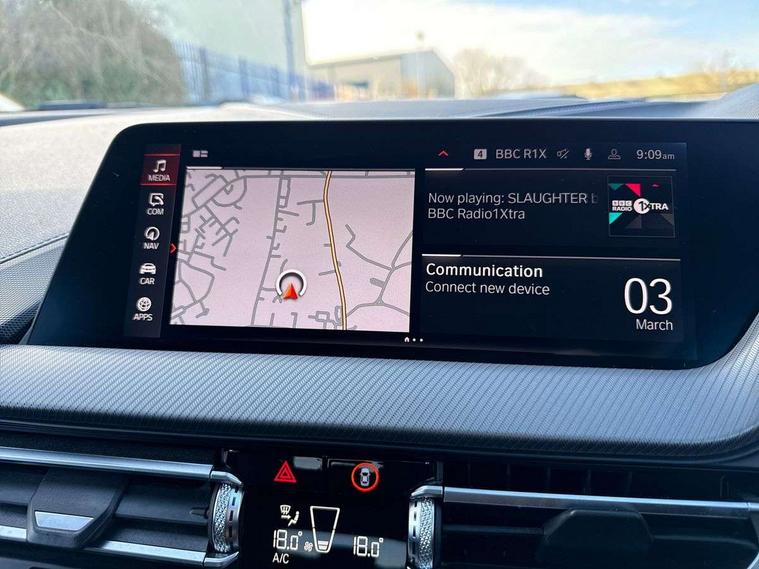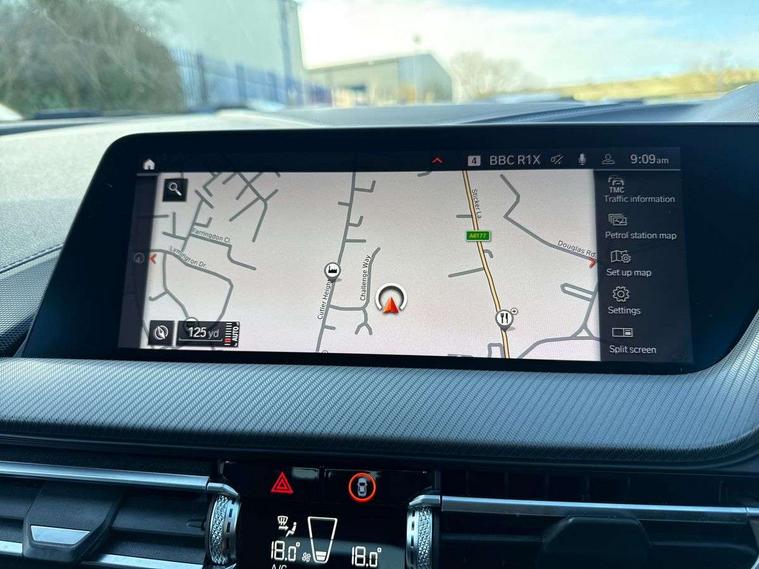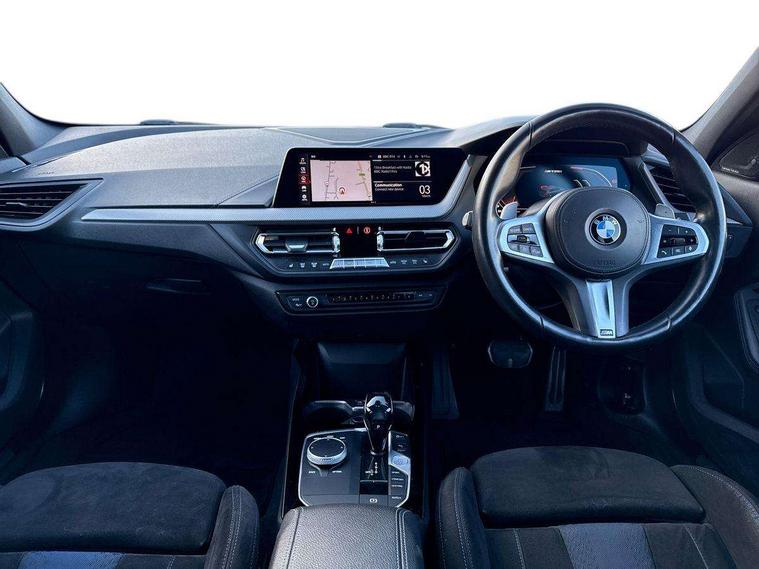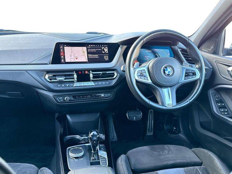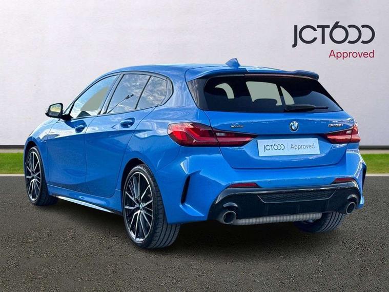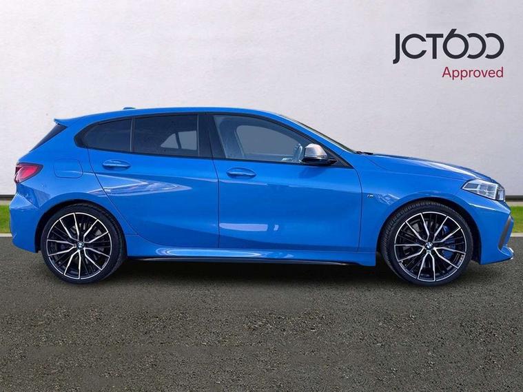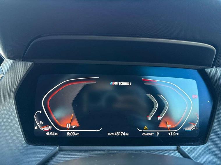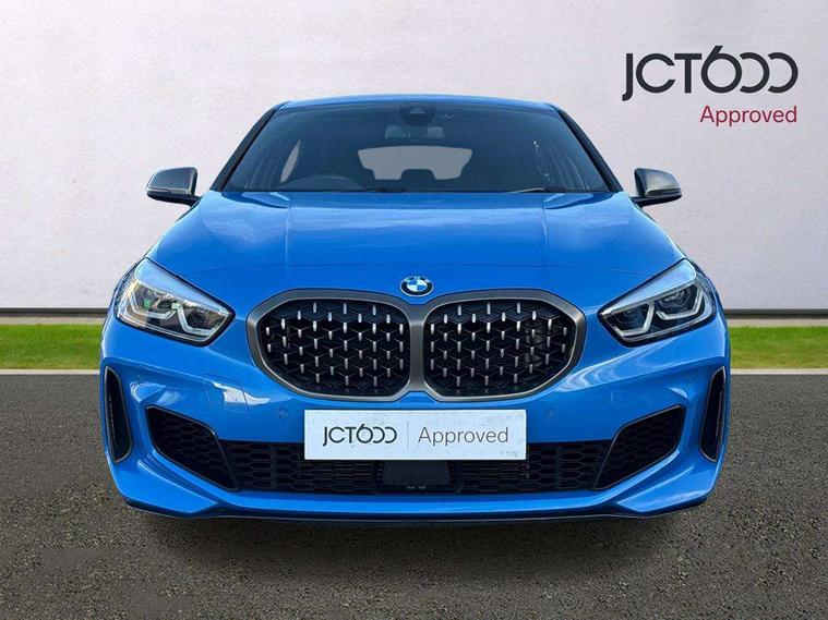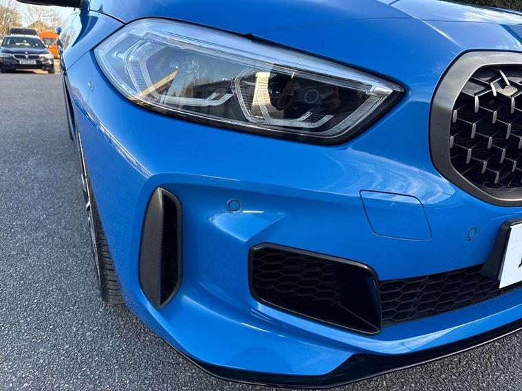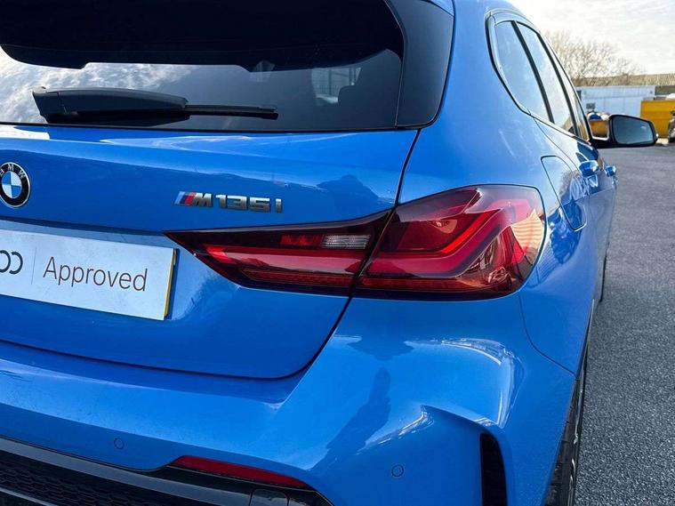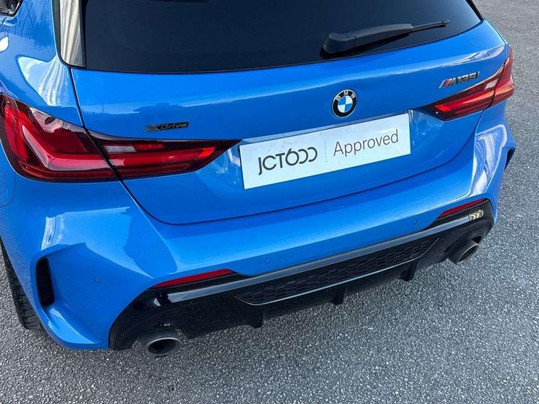 Active guard plus, Attentiveness assist, BMW Live Cockpit Professional sat nav system including 10.25" high resolution display and Intelligent Voice Assistant, BMW Online services, BMW Teleservices, Check Control warning system for monitoring of lights and door/luggage compartment open warning, Eco pro mode, Gearshift time display in manual mode, Integrated owners handbook, M Sports steering, Oil sensor for level and grade, On board computer, Optimum shift indicator, Personal Profile, Pull away assistant, Speed limiter, Sporty fast gear shifting in sport mode, Aluminium lightweight construction, Anti roll bar front and rear, Balancer shaft, Double VANOS, Drive Performance Control, Eight speed sport automatic transmission with electronic selector lever, Electronic differential lock, Engine cover with M performance designation, High precision injection, Larger fuel tank capacity (50 litres), Launch control, Petrol Particulate Filter, VALVETRONIC engine management, Bluetooth audio streaming, DAB Digital radio, Auto dimming rear view mirror, Automatic headlight beam throw control, Body colour door handles, Cerium grey exterior mirror caps, Direction indicator side lights in exterior mirrors, Electric folding and anti dazzle exterior mirrors, Fading support, Follow me home headlights, Front and rear electric windows with open and close fingertip control, anti trap facility and comfort closing, Front door sill finishers with M135i designation, Green tinted heat protection glazing, Heated, electrically adjustable exterior mirror aspheric on driver side, convex on passenger side, High gloss shadow line exterior trim, High gloss shadowline window frame, Recess cover mirror frames and B/C pillar embelisher trim, High level third brake light, Kidney grille frame in Cerium Grey with Mesh design, LED daytime running lights, LED eyebrow turn indicators, Lightweight engineering, M logo designation side in cerium grey, M performance exhaust system, M rear spoiler, Matt black air guide grilles, Model designation on right side of tailgate, Nearside reverse light in rear light cluster, Rain sensor including auto headlights activation, Rear fog lights, Rear window wiper, Round exhaust system with twin cerium grey tailpipes in left and right split, Shark fin antenna, Visible VIN plate, Welcome lighting, Windscreen wipers with integrated washing jets, 12V power socket in centre console, 2 cupholders in front centre console, 3 rear seat head restraints, 3 spoke M sports design leather steering wheel finished in nappa leather with specific M badge, Anthracite headlining, Anthracite Velour floor mats, Child seat ISOFIX attachment for two outer rear seats and front passenger seat with anchorage points, Conditioned based service, Driver and front passenger seat heating, Driver side folding compartment in instrument panel, Folding rear clothes hook, Folding rear seats, Four grab handles integrated in roof lining, Front and rear door pockets, Front and rear side armrest integrated into door trim, Front armrest foldable with integrated storage compartment, Front M seats, Glove compartment, Height adjustable front head restraints, Manual adjust steering wheel, Multi-function controls for steering wheel, Rear seat backrest with manual 60:40 split folding with 3 top tether clips integrated on rear of seat panels, Storage compartment in centre console, Sun visors with vanity mirrors and insert tab, Two zone automatic air conditioning, Connected pack professional - 1 Series, Extended Lighting pack - 1 Series M135i, Extended storage pack - 1 Series, Interior lights pack - 1 Series, Luggage compartment pack - 1 Series, M Sport exterior styling aerodynamics pack - 1 Series 135i, 2 tone horn, 3 point seatbelts on all seats, front pyrotechnic belt tensioners, stopper and belt force limiters, rear coded belt buckles, Airbags - Front driver and passenger, front and rear head, front side, curtain head protection, Anti lock braking system (ABS) with brake assist, BMW emergency call, Brake drying, Braking readiness, Crash sensor activating central locking release, hazard warning lights, fuel cut off, interior lighting + activation of safety battery terminal clamp, Driver and front passenger seat belt security check, Dynamic stability control + (DSC+), Dynamic Traction Control - DTC, Electrically operated hand brake, Front and rear disc brakes, Front passenger manual airbag deactivation, M Sport braking system, M sport seatbelt, Rear child proof door locks, Seatbelt warning, Side impact protection, Torsen mechanical limited slip differential, Tyre pressure monitoring system, Warning triangle and first aid kit, Automatic drive away locking facility, Central locking switch for all doors, fuel filler cap and luggage compartment, Deadlocking function system to all doors, Locking wheel bolts, Remote control with integrated key with High-gloss Black inlay and M designation and 1 button for open/ close lock, window, open luggage compartment, Start/stop button with comfort go keyless engine start and auto start stop deactivation button, Thatcham Cat.1 alarm and immobiliser, Contrast stitching on instrument panel, 18" Burnished M double spoke Bi-colour alloy wheels finished in Cerium grey matt - style 556M, BMW mobility system, Reduced rolling resistance tyres,