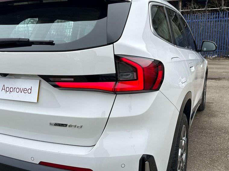 Active Guard + lane departure warning, speed limiting, front collision warning, Left turn warning with brake function and evasion assist, Attentiveness assist, Automatic start/stop function, BMW Live Cockpit Plus with 10.25" instrument cluster and 10.7" display, BMW Online services, BMW Teleservices, Brake pad wear indicator, Condition based service, Connected eDrive Services, Drive off assistant, Electrically opening/closing tailgate with opening/closing with remote control and contactless opening and closing, iDrive controller, Language version English, My Modes, Parking Assistant with Reversing Assistant, active PDC, Lateral Parking Aid, Rear View Camera and Park Distance Control, Personal Profile - automatic lock when driving away selectable, Servotronic PAS, Tyre puncture warning system, Widescreen display, Diesel particulate filter, Diesel with SCR emission control system, Performance Control, Standard suspension, Steptronic transmission with double clutch, DAB Digital radio, Aluminium satinated roof rails, Badge on engine compartment lid and tailgate, BMW individual exterior line aluminium satinated window frame and window guide rail in front door/pillar trim/door mirrors in high gloss black, Contoured rear roof spoiler in vehicle colour with side aeroblades in black high-gloss, Dynamic brake lights, Electric adjustable heated door mirrors, Electric windows - front and rear, with open/close fingertip control, anti-trap facility and comfort closing, Folding door handles integrated flush with surface, Follow me home headlights, Front bumper panel with air inlet in matt black, Front door exit lights, Front entry sills aluminium inserts with BMW inscription, Heated rear window, Invisible exhaust tailpipe, LED 3rd brake light integrated in rear spoiler, LED daytime running lights, LED number plate light, Mirror caps painted in contrasting colour dark grey, Model inscription on right tailgate, Radiator grille frame in aluminium matt, Radiator grille struts in aluminium matt, Rain sensor including auto headlights activation, Rear bumper panel with two L-shaped trims In pearl chrome, Rear side wing doors, Rear wiper, Roof trim strips painted in body colour, Trailer stabilisation logic, Welcome lighting, Window washer nozzle for rear view camera, Windscreen wipers with front and rear heated washer nozzles, 12V - Power sockets with front centre console and luggage compartment, 2 cup holders in front, 2 x USB Type C ports for charging and data transmission (front centre console) and 2 x USB Type C ports for charging (rear centre console), 3 rear headrests, 3 seat bench in 2nd row, 3 upper retaining strap clips integrated into rear panels of seat backrests, 40:20:40 split folding rear seats, Ambient interior lighting, Anthracite Velour front and rear floormats, Bottle trays in all doors, Child seat ISOFIX attachment for two outer rear seats and front passenger seat with anchorage points, Clothes hook rear, Driver and front passenger heated seats, Dual zone automatic air conditioning, Front and rear door pockets, Front centre console storage compartment, Front sports seats, Front/rear adjustable head restraints, Glove compartment, Light on right in luggage compartment, Manual steering column height and depth adjustment, Map pockets, Middle centre console storage compartment, Rear armrest in door trim panel, Single front passenger seat, Sport leather multifunction steering wheel with thumbrests and operation of instrument display, audio, telephone and driver assistance, Storage compartment with folding cover under centre console armrest cushion, Trim elements on steering wheel spokes in pearl chrome, Connected Package Professional - X1, ABS/EBD, Automatic hold function, Automatic Stability Control (ASC), Black belt painted in contrasting colour dark grey, BMW emergency call, Braking readiness, Cornering brake control (CBC), Crash Sensor - activates hazard/interior lighting + unlocks doors, Driver/Front Passenger airbags, Driver/front passenger side airbags, Dry braking, Dynamic stability control + (DSC+), Electromechanical parking brake, Energy recovery system, Front and rear brake discs, Front and rear head airbags, Front passenger airbag deactivation, Integrated brake system, PC iBrake PostCrash approach control warning with light braking function, Rear door child safety locks, Three point seat belts in all seats, Tyre pressure monitor, Warning triangle, Alarm system with tilt sensor, monitoring doors, bonnet interior and tailgate, Closing system with central locking, Locking wheel bolts, Luxury instrument panel,