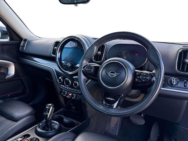 Active Guard incl speed limiting and lane departure functions with auto steering, and front collision warning with brake intervention, Automatic start/stop function with brake energy recuperation, Digital cockpit, Electro-mechanical speed dependant steering assistance, Instrument cluster, Mini E-call, MINI TeleServices, On board computer, Rear parking distance control, Double Vanos system, Fully variable valve control, High precision injection, Steptronic transmission with double clutch, FM tuner and DAB digital radio, Body colour fuel filler cap, Chrome line exterior, Day time driving lights, Door sill strips, Dynamic brake lights, Electric windows, Heated rear window, Heated windscreen washer jets, LED fog lights, LED Headlights, Left exhaust tailpipe with chrome finisher, Model logo, Model logo on Tailgate, Radiator grille, Rain sensor with auto headlights, Rear fog lights, Rear window wiper, Side scuttle panel with integrated indicator, Split rear doors, Sun/heat protection glass, White indicator lenses, 12V Accessory socket in centre console, 360L luggage compartment capacity, 4 lashing eyes in luggage compartment, 40:20:40 split folding rear seats, Chrome interior highlights, Colour line - Carbon black, Cupholders, English handbook, Front headrests, Glove compartment, Height and length steering column adjustment, Interior lighting with 12 basic colours selectable via toggle switch in roof, Isofix rear child seat preparation, Leather gearshift lever and handbrake gaiters, LED reading lights, vanity mirror lights, front foot well light and spotlight on front seats, Manual air conditioning, MINI Yours fine walk nappa leather steering wheel with contrast stitching in silver and MINI Yours badge, Multifunction steering wheel, Passenger seat height adjuster, Rear headrests, Storage compartments in doors, Sunvisors with vanity mirrors, Tool kit, Excitement pack - Countryman, Navigation pack - Countryman, 2 tone horn, 3 point seatbelts on all seats, 6 Airbags - front, side, head and seat belt tensioners, Anti-lock braking system (ABS), DSC - Dynamic Stability Control, Electronic handbrake, Front and rear disc brakes, Hill start assist, Tyre pressure monitoring system, Alarm system with tilt sensor, monitoring doors, bonnet interior and tailgate, Auto drive away locking, Deadlocking function, Electronic vehicle immobiliser, Locking wheel bolts, Start/stop toggle with keyless go, Chrome line interior,