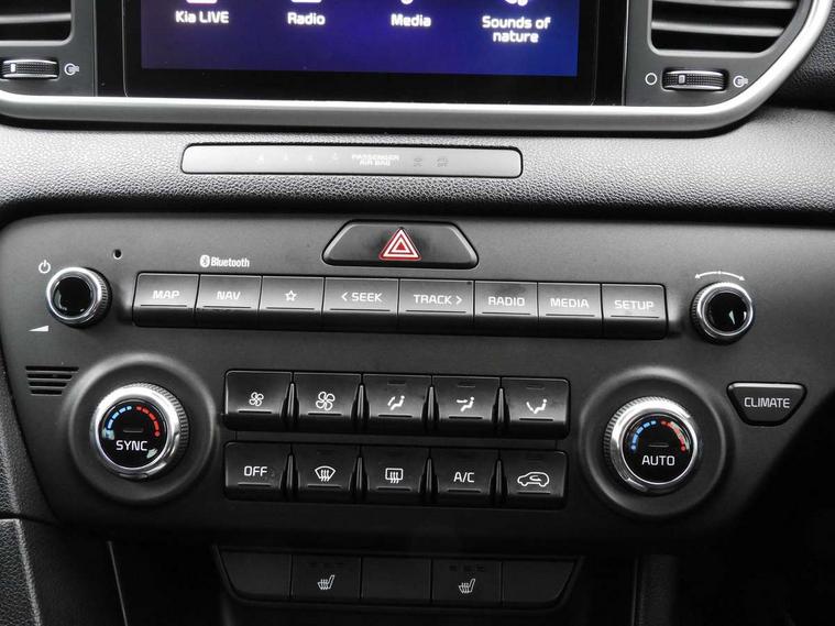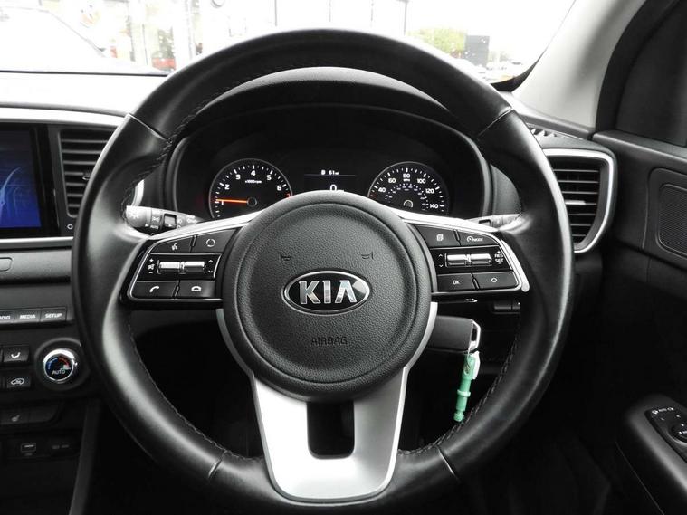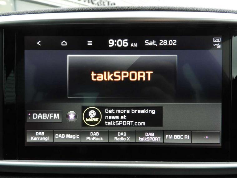 3.5" supervision cluster display, 8" touchscreen satellite navigation with European mapping and traffic messaging channel, Android auto with voice control, Apple car play with voice control, Cruise control + speed limiter, Driver attention warning, Emergency stop signalling system, Kia connected services featuring TomTom live, Lane keep assist, Rear parking sensor, Reversing camera, Speed limit information, Speed sensitive power steering, Telematics system with UVO connect services, Trip computer, Windscreen washer level indicator, Intelligent Stop and Go, 6 speaker audio system, Bluetooth audio streaming, DAB Radio with MP3, Rear USB port, Steering wheel mounted audio controls, USB/iPod/auxiliary input connections, All round electric windows with drivers auto up/down function, Auto dimming rear view mirror, Automatic lighting control, Automatic window defogger, Bi-Function halogen headlights, Black side sill and wheel arch body mouldings, Body colour door handles with chrome inserts, Body colour door mirrors, Chrome front bumper insert, Chrome grille surround, Chrome window surround, Electrically adjustable/heated/folding door mirrors with LED indicators, High beam assist, High gloss black diamond mesh radiator grille, LED daytime running lights, Privacy glass - Rear windows and tailgate, Projection front fog lights with matt black surround, Rain sensing front wipers, Rear spoiler, Rear wiper, Roof rails, Shark fin antenna, Tinted glass, Trailer stability assist, Welcome and follow-me home light functionality, Wide view drivers door mirror, 12V power in front and rear centre console, 3 x passenger assist grips, 60/40 split folding rear seat, Air filter, All-round height adjustable headrests, Centre cabin light, Centre console storage box, Driver and front passenger side sunvisors with illuminated vanity mirrors, Driver's seat manual height adjust, Drivers seat power lumbar support, Dual zone automatic air conditioning, Front and rear door storage, Front cabin LED map light with sunglasses case, Front door courtesy reflectors, Front seat and rear pockets, Front/rear centre armrests, Gear shift indicator, Glovebox illumination, Heated front and outer rear seats, Ignition key lock illumination, Interior door lock/unlock function, ISOFIX Child seat top tethers and anchor fixings, Leather steering wheel, Leather trimmed door armrests, Leather trimmed gearshift, Light grey headlining, Luggage area light, Luggage area load cover, Luggage net with hooks, Premium cloth upholstery, Rear centre armrest with cupholder, Rear coat hooks, Satin chrome interior door handles, Tilt/telescopic adjustable steering wheel, Ventilation ducts to rear compartment, Active front headrests, All round 3-point seatbelts, Anti-lock braking system with electronic brakeforce distribution, Dual front side airbags, Electronic stability control with downhill brake control, Front passenger airbag cut-off switch, Front seatbelt pretensioners + load limiters, Height adjustable front seatbelts, Hill start assist control (HAC), Impact sensing auto door unlocking, Rear door child safety locks, Traction control, Twin curtain airbags with roll over sensor, Twin front airbags, Tyre pressure monitoring system, Advanced anti-theft system including immobiliser and alarm, Door deadlocks, Locking wheel nuts, Remote central door locking with fold away key, Speed sensitive auto door locking, Visible vehicle identification number, Metallic finish centre fascia, 17" Alloy wheels, Tyre mobility kit,