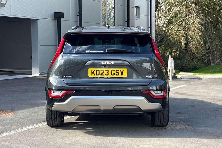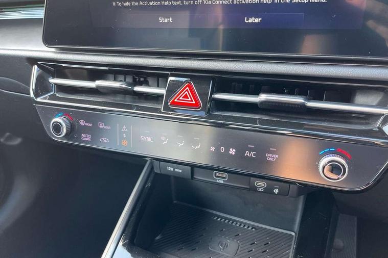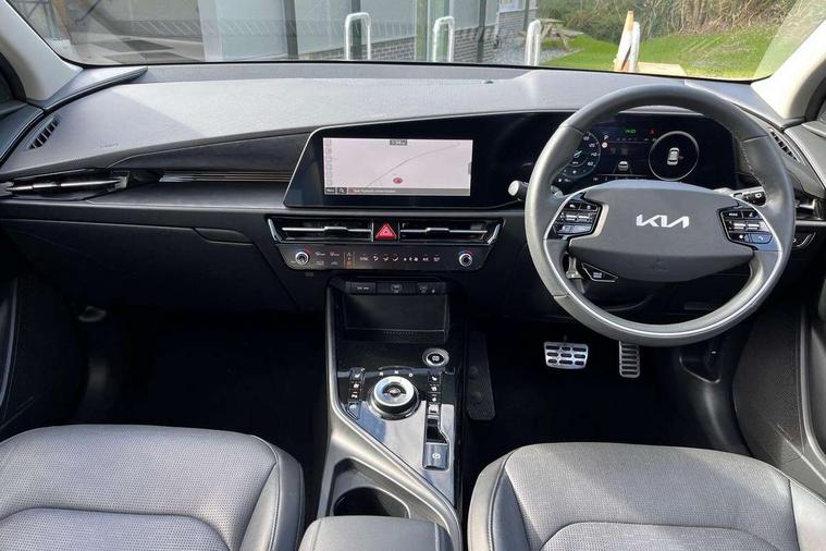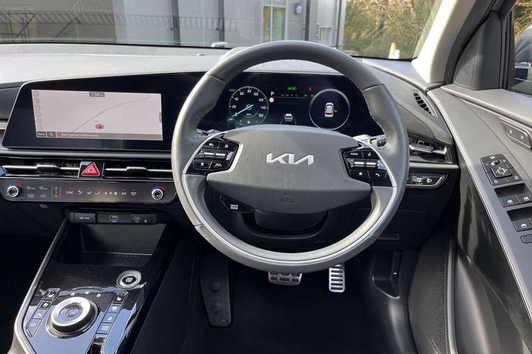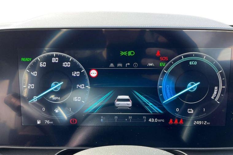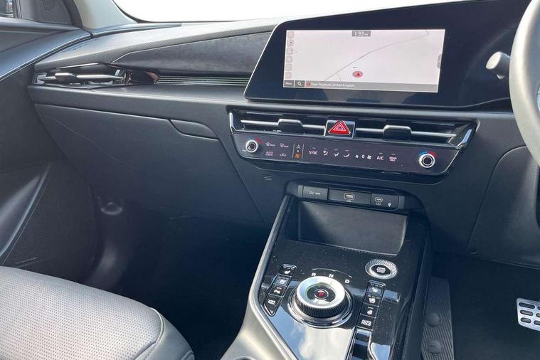 10.25" Supervision colour cluster display, 10.25" touchscreen satellite navigation, Adaptive smart cruise control function (SCC) with stop and go, Apple car play/Android Auto with voice control, Blind spot collision avoidance assist, Drive mode select (Eco, sport), E-call, Emergency stop signalling system, Forward Collision-Avoidance Assist (FCA) 1.5 - City/Pedestrian/Cyclist/Junction turning, Front parking sensors, Head up Display, Highway Driving Assist (HDA), Kia Connect (UVO), Lane Following Assist (LFA), Lane keep assist, Motor driven power steering, Parking collision avoidance assist (PCA), Power opening/closing tailgate, Rear cross traffic alert, Rear parking sensors, Remote smart parking assist, Reversing camera with dynamic guide lines, Safe exit warning (SEW), Speed limit assist, Trip computer with distance/fuel consumption/average speed, Wireless Smartphone charger, 220v AC Inverter, 'Shark fin' mobile antenna, 2 type C USB ports on front seats, 2 USB ports in centre console including 1 type C, 6 speakers, Bluetooth with music streaming, DAB Digital radio, Steering wheel mounted controls, Acoustic windshield, All round electric windows with drivers and front passenger auto up/down and safety function, Auto dimming rear view mirror, Automatic defog system, Automatic headlight control system, Black grille with chrome surround, Body colour bumpers, Body colour exterior door handles, Deluxe door scuff plates, Dual LED headlights (low and high projection), Electric heated door mirrors, Electrically folding door mirrors, Front and rear chrome skid plates, Front fog lights, Heated rear window with timer, High gloss black cladding, High gloss black door mirrors, LED daytime running lights, LED rear combination lights, LED third brake light, One touch single tilting/sliding power sunroof, Privacy glass - Rear windows and tailgate, Rain sensing front wipers, Rear fog lights, Rear side wing doors, Rear spoiler, Rear wiper, Roof rails, Solar glass windscreen, Welcome and follow-me home light functionality, Windscreen Washer Level Warning, 12V socket in front, 12V socket in luggage compartment, 3 seat bench in 2nd row, 60:40 split remote folding rear seats, All-round height adjustable headrests, Aluminium pedals, Artificial leather centre console storage box, Artificial leather steering wheel, Centre console cupholder, Chrome coating interior door handles, Driver and front passenger power adjusted seat, Driver power adjusted memory seat, Driver/passenger sunvisors with illuminated vanity mirrors, Drivers seat power lumbar support, Dual zone automatic air conditioning, Front and rear door storage, Heated front seats, Heated outer rear seats, Heated steering wheel, Illuminated glovebox, Interior door lock/unlock function, ISOFIX Child seat top tethers and anchor fixings, LED overhead console, 2nd row and luggage lamp, Luggage area load cover, Luggage board, Paddle shifts, Passenger premium relaxation seat, Power adjustable lumbar support on front passenger seat, Rear armrest, Seatback pocket - driver, Seatback pocket - front passenger, Shift by wire SBW, Single front passenger seat, Tilt/telescopic adjustable steering wheel, Vegan leather upholstery, Ventilated front seats, Ventiliation ducts to rear compartment, Towing pack - Niro, 3 point seatbelts on all seats, ABS, Automatic unlocking of doors in case of impact, Centre side front airbags, Curtain and side airbags, Drivers knee airbag, Dual shell horn, Electric parking brake with auto hold function, Electronic stability control, Front passenger airbag deactivation, Height adjustable front seatbelts, Hill start assist control (HAC), Manual rear child locks, Rear seat alert system, Traction control, Tyre pressure monitoring system, Alarm system and engine immobiliser, Deadlocks, Engine Start/Stop Button with Smart Entry System, Locking wheel nuts, Visible vehicle identification number, Warranty - 7 Years/ 100, 000 miles, Centre fascia chopped carbon, 18" Alloy wheels, Tyre mobility kit,