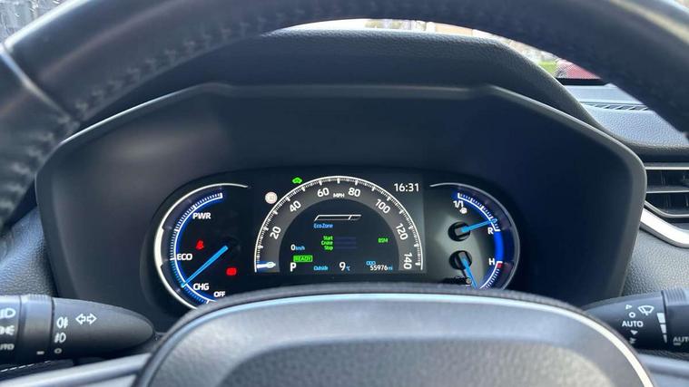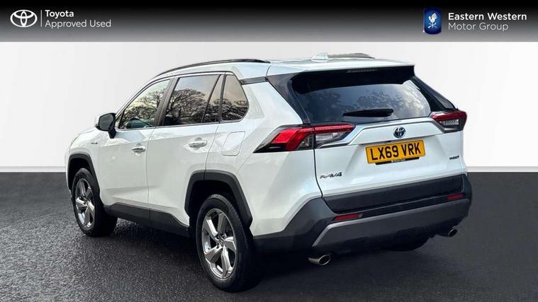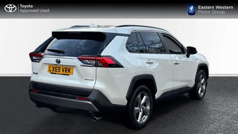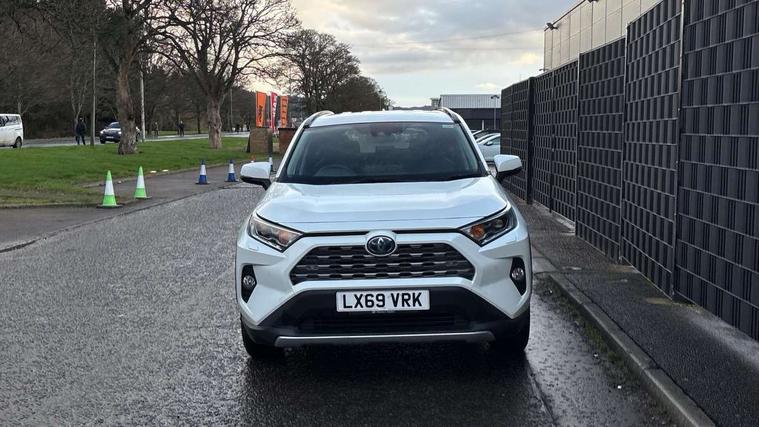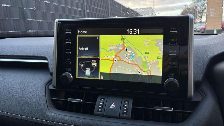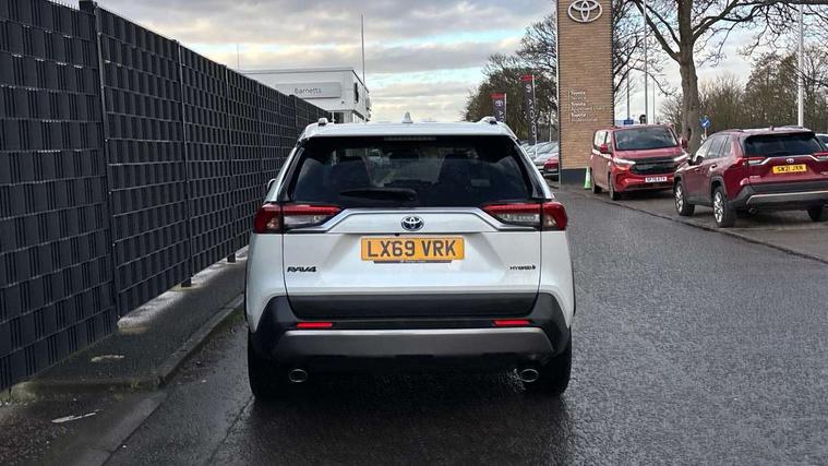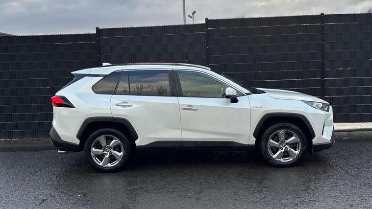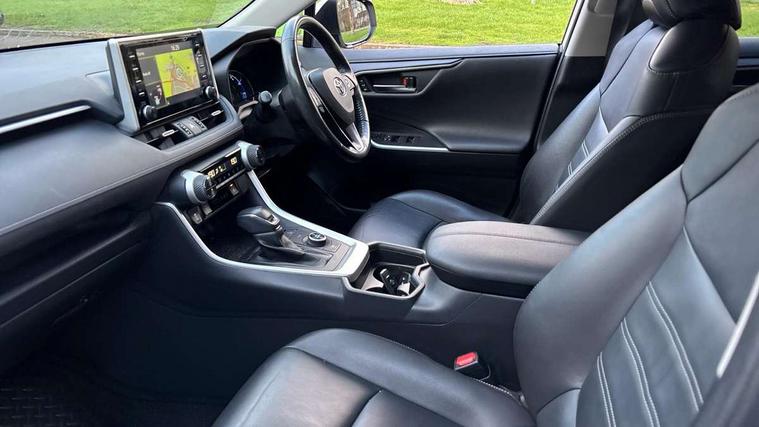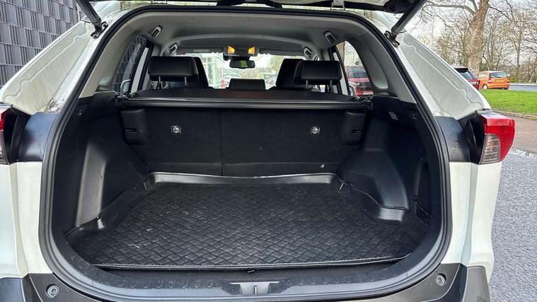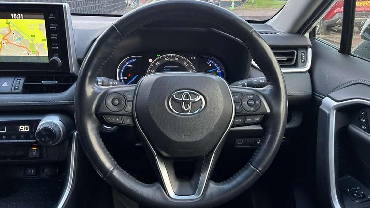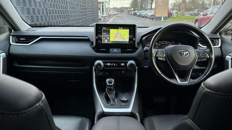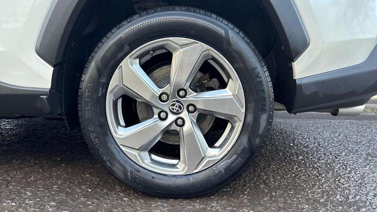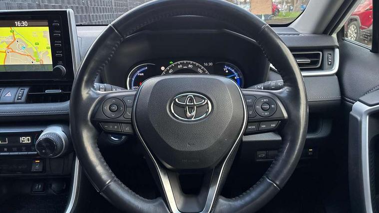 7" colour TFT display, Adaptive cruise control with lane trace assist, Adjustable speed limiter, Blind spot monitoring with rear cross traffic alert, Bluetooth system, Cyclist Detection, Drive mode selector, eCall emergency call system, ECO-driving indicator, Electric power steering, Hybrid system indicator, Lane departure warning system, Lights on warning, Low screen washer fluid warning, Night Time Pedestrian Detection, Pedestrial detection, Power boot opening and closing, Rear parking camera, Rear parking sensors, Remote boot door release in cabin, Tachometer, Touch 2 Go navigation system including 3D maps and voice control, Traffic sign recognition, Trip computer, Voice control system, Vehicle Stability Control (VSC), 6 speakers, 8" Multimedia display touch screen, Auxiliary socket for external MP3 player, DAB audio, Steering wheel mounted audio controls, Toyota touch media system, USB connection, Auto dimming interior mirror, Auto high beam, Automatic headlamp levelling, Automatic headlights, Automatically retractable door mirrors, Black roof rails, Body colour door handles, Body colour door mirrors, Body colour rear spoiler, Body coloured bumpers, Body coloured Shark-fin antenna, Door mirror puddle lights, Electric adjustable door mirrors, Emergency brake-light signal (EBS), Follow me home headlights, Front fog lights, Headlight cleaners, Heated door mirrors, LED daytime running lights, LED High mounted stop lamp, LED rear lights, Meshed shape upper front grille, Power front windows, Power rear windows, Privacy glass, Projector LED headlights, Rear screen wiper - intermittent, Rear windscreen defogger, Silver front under-run, Silver rear under-run, Trailer sway control, Turning signal integrated indicators in door mirrors, Windscreen wiper de-icer, 3 rear headrests, 60/40 split fold rear seat back, Boot light, Clean air filter, Driver and front passenger personal light, Driver and front passenger Whiplash Injury Lessening seats, Driver and passenger sunvisors with illuminated vanity mirrors, Driver seat memory function, Dual sided deck board in boot, Dual zone automatic air conditioning, Floor mats, Folding rear centre armrest, Front and rear bottle holders, Front centre armrest, Front footwell lights, Front headrests, Front seat and rear pockets, Front/rear roof mounted assist grips, Grey roof lining, Heated driver and front passenger seats, Heated steering wheel, Isofix child seat preparation, Leather gear shift with chrome surround, Leather upholstery, Light blue ambient lighting on front cupholders and open tray, Manual telescopic and tilt 3-spoke leather steering wheel with Chrome insert, Manually reclining and sliding front passenger seat, Pollen filter, Power height-adjustable sliding reclining and lumbar support for driver seat, Rear coat hooks, Rear door armrests, Rear passenger air vents, Reclining rear seats, Satin chrome interior door handles, Sunglasses holder, Parking pack - Rav4, 3x3 point rear seatbelts, ABS/EBD, Adjustable front driver and passenger seat belt extender, Brake assist function, Child proof door locks, Collision mitigation braking system, Driver/Front Passenger airbags, Driver/front passenger side airbags, Drivers knee airbag, Electronic parking brake, Electronic Stability Programme (ESP), Emergency brake light system (EBS), Front and rear curtain airbags, Front and rear seatbelt reminder, Hill start assist, Passenger airbag cut-off device, Seatbelt pretensioners with load limiters, Traction control, Tyre pressure warning, Alarm/immobiliser, Glass-breaking alarm sensors, Light - on and Key in reminder, Remote central locking, Smart entry + Smart start, Speed sensitive auto door locking, Tilt detection sensors, Piano black centre console with silver insert, Soft-touch black lower dashboard, Soft-touch black upper dashboard with silver insert, Full size spare wheel,