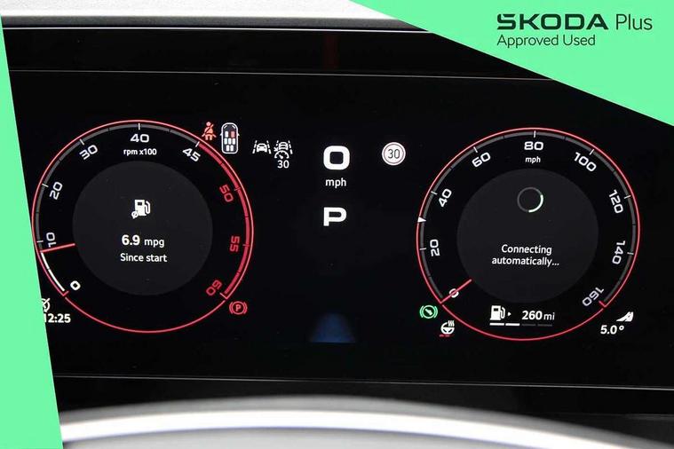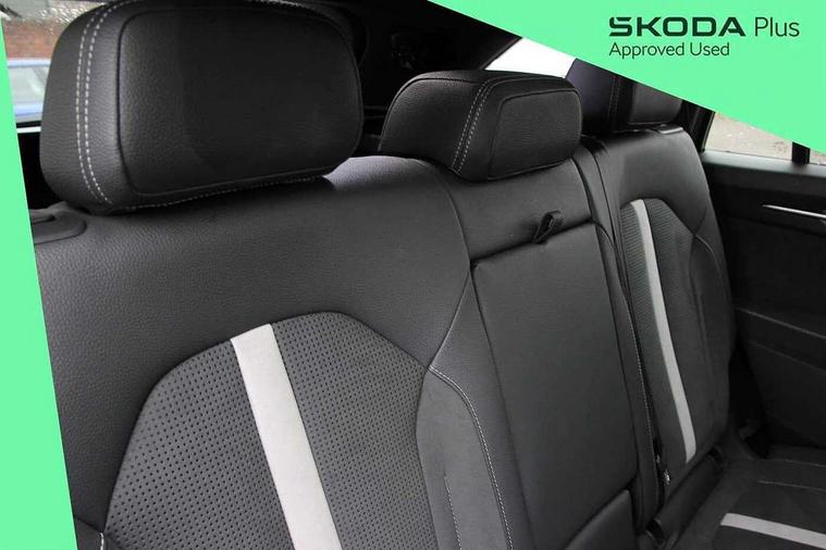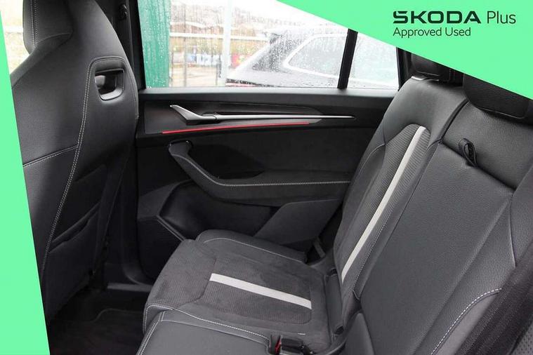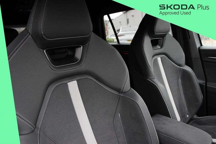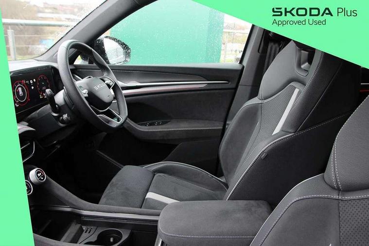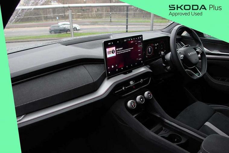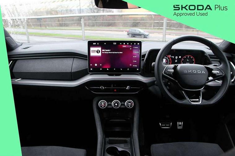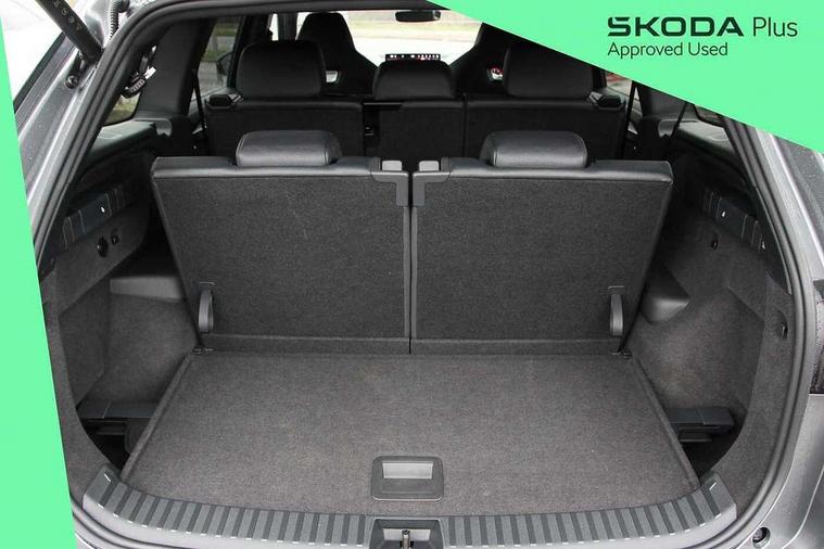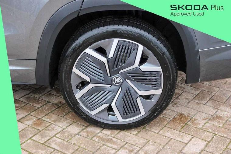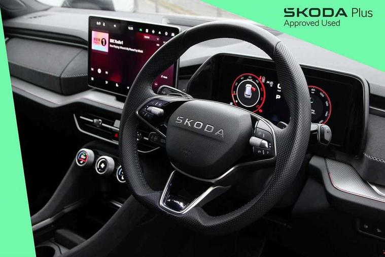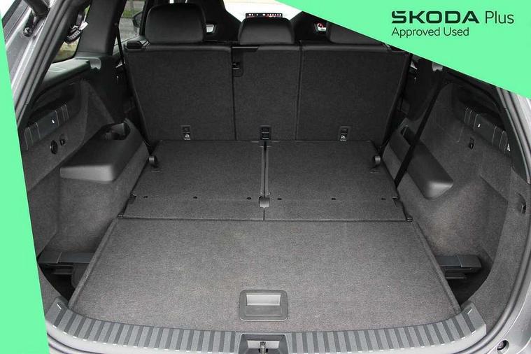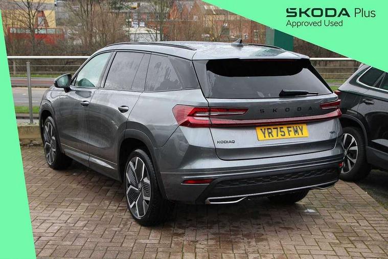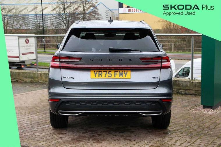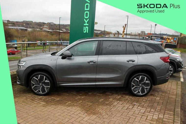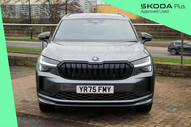 13" satellite navigation touchscreen display, Blind spot detection with door exit warning, Bluetooth system, ChatGPT functionality, Driver alert - Fatigue and drowsiness monitor, Dry display cleaner, Emergency call, Front and rear parking sensors, Front cross traffic assist, Lane assist, Off road modes, PAS, Rear traffic assist, Tailgate unlocking from outside, Traffic sign recognition, USB C Port x 2 in front centre console, Virtual Cockpit - 10.25" digital display, Voice control system, Wireless charging for two smartphones (15W) with cooling function, Wireless SmartLink for Apple CarPlay and Android Auto, Stop/start function, 2x USB-C in the rear, DAB Digital radio, Aero front windscreen wipers with intermittent function, Auto dimming rear view mirror, AWL (all weather lighting) and all weather light with cornering function, Black diffuser and decorative tailpipe with a unique dark chrome finish, Black roof rails, Black sports styling including front grille and window surrounds, Black wheel arch surrounds, Body colour door handles, Cornering light and poor weather light, Electric folding /adjustable/separted heated/folding door mirrors, auto dimming with boarding sports and memory function, Electric front and rear windows, Exterior black decorative trims, Front and rear sports bumpers including lower rear chrome strip, Gloss black door mirrors, Gloss black window frame and D pillar, Heat insulating glass in windshield, Heated rear window, Ice scraper in fuel tank cap, LED daytime running lights, LED third brake light in rear spoiler, Light assistant with automatic headlight control and coming home feature, Logo projection in door mirrors, Privacy glass, Rear roof spoiler, Rear side wing doors, Rear window wiper, Red decorative strip between rear LED lights, Safety reflectors on front and rear doors, Sportline badge on front fenders, Tailgate lettering in Black, Unique dark chrome design logo on alloy wheels, Window control switches with black trim, Windscreen wipers with rain sensor, Without engine designation, 1.5l bottle holder points in all door, 1x centre rear reading light, 2 seat bench in 3rd row, 3 configurable smart dials with 32mm coloured display, 3 seat bench in 2nd row, 4 foldable roof handles with rear coat hooks, Aluminium pedals, Ambient interior lighting - Dashboard, front-door stowage compartments, front and rear door panels and footwell lighting, Automatic gear selector on steering column, Chrome interior door handles, Driver/front passenger reading lights, Fabric headlining, Fixed bench 40:60:40 split folding backrests, Front and rear floor mats, Front centre armrest with jumbo box storage compartment, cup holder and 12V socket, Front sport seats, Height adjustable front headrests, Interior black decorative trims, Isofix child seat fittings in outer middle row rear seats and front passenger with top tether, Manually adjustable steering column, Pollen filter, Rear centre armrest with cupholders, Rear seat boot backrest release, Single front passenger seat, Skoda lettering on steering wheel, Storage pocket including mobile phone pockets on the backs of the front seats, Sunvisors with illuminated vanity mirrors, Three rear height adjustable headrests, Ticket holder on A Pillar, Tri zone climate control, Umbrella in door panel x1 made from sustainable materials, Upper and lower glovebox with card holder and coin compartment, USB C port by rear view mirror for charging only (15W), Acoustic package - Kodiaq, Performance package - Kodiaq, Sportline design selection pack - Kodiaq, Auto door release and activation of warning lights in the event of an accident, Driver and front passenger airbag with knee airbag and front passenger airbag deactivation, Electric child locks, Electronic parking brake, ESC (incl. ABS+EMD+MSR+ASR+EDL+HBA+DSR+RBS+ESBS+MCB+TSA+XDS), Front assist with braking reaction to vehicles, pedestrians and cyclists, Front disc brakes, Fuel cut off safety device, Height adjustable front 3 point seatbelts + pretensioners, Hill hold assist, Junction assist with automatic emergency braking, Rear disc brakes, Safety vest holder in door, Seat belt reminder for all seats, Three point rear seat belts, Two tone horn, Tyre pressure monitor, Alarm with interior monitoring and tilt sensor with safe function, Anti-theft wheel bolts, Immobiliser, Remote central locking with 2 keys, 20" Rila anthacite polished alloy wheel with black matte aero covers,