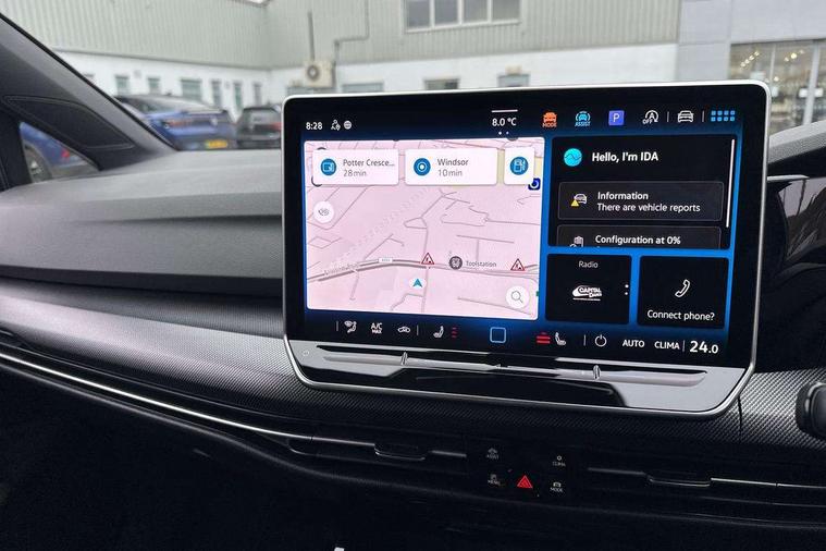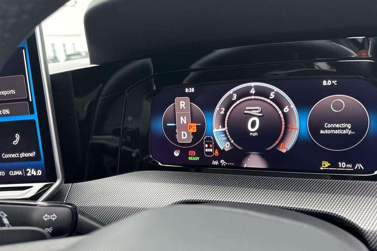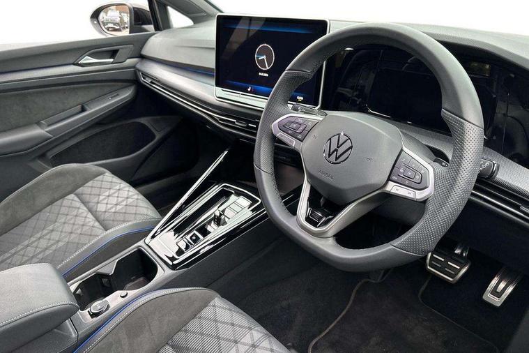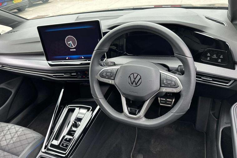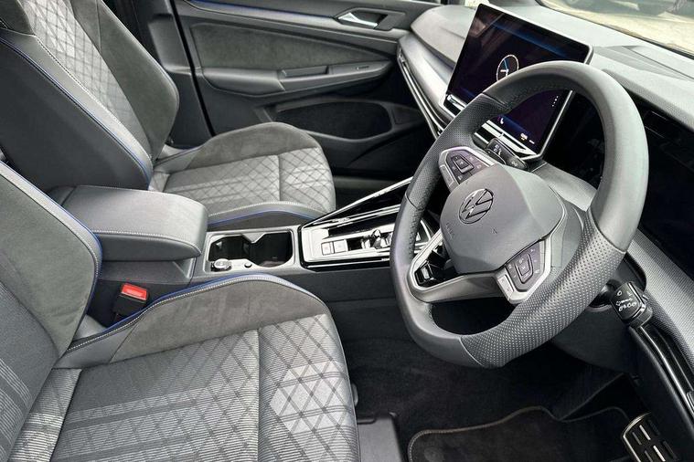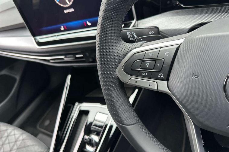 Activated carbon canister, Adaptive cruise control (ACC), Advanced driver attention and drowsiness monitor, Dynamic road sign display, Dynamic steering, E-Sim card for online connectivity, eCall emergency call system, Multi-color Digital cockpit pro, selection of different info profile possible, Multifunction front facing camera for distance control, Navigation system, Oncoming vehicle braking when turning including swerve support, Speed limiter, Speedo, rev counter, electronic odometer, trip, service interval display, exterior temperature and fuel gauge, Traffic jam assist, Voice enhancer and voice control, Warning signal and warning light for front and rear seatbelts not fastened, We connect plus preparation, We connect preparation, Wireless app connect, Hybrid propulsion system, Petrol Particulate Filter, Start-stop system with battery regeneration (recuperation - energy recovery during braking), XDS electronic differential lock for improved traction and handling, 2 USB C ports in front, 2 USB charging sockets on the centre console in the rear charging capacity upto 45W, Digital radio reception (DAB), Diversity antenna for FM reception, Gaming platform via car app, Infotainment system with 12.9" display, Mobile phone interface with inductive charging feature, 3rd brake light, Auto dimming rear view mirror, Automatic headlamp activation with Coming home and Leaving home feature, Body colored bumpers in R-Line style, Body colour door handles, Exterior ambient lighting, Exterior mirrors convex on the left and aspherical on the right, Front and rear electric windows, Heat insulating windshield made of laminated glass, LED separate daytime running light, Rain sensor, Rear exhaust tailpipe, Rear fog light on one side and reversing lights on both sides, Rear side wing doors, Rear windscreen washer and wiper with interval delay, Remote electrically foldable door mirrors, puddle lights and reverse activated passenger's door mirror, Volkswagen logo in front, illuminated lighting animation with wake up/goodbye scenario and illuminated door handles, Welcome light with surround lighting, 12V socket in front centre console, 12V socket in luggage compartment, 3 rear head restraints, 3 seat bench in 2nd row, Ambient lighting with 30 colour including LED light unit in front footwell with selectable light colour, Black roof lining, Brushed stainless steel pedals, Chrome plated radiator grille inserts, air vent surrounds and light switch surrounds, Door insert, side trim panel and arm support in leatherette, Front + rear black carpet mats, Front centre armrest, Front seat lumbar support adjuster, Integrated front head restraints, ISOFIX anchors for child seats on outer rear bench seats and on front passanger seat compatible for i-Size, Luggage compartment lighting, Manual height adjustable front passenger seat, Manually height adjustable driver seat, Plastic gear knob, Premium sports seats in front, Rear cupholder and loadthough, Sardegna cloth upholstery with front and outer rear seats Art Velour inner sides of bolsters, Single front passenger seat, Split folding backrest with centre armrest and unsplit rear seat bench, Sun visors with illuminated vanity mirrors, Titanium black instrument panel, Black exterior Styling package with Matrix LED headlights - Golf, Winter package - Golf DSG Estate/Hatchback, 3 point height adj front seatbelts + pretensioners, 3 rear three point seatbelts, ABS, Autonomous emergency braking front assist with pedestrian and cyclist monitoring, Child locks on rear doors, Driver and front passenger airbag with front passenger airbag deactivation, Electronic parking brake with auto hold, ESC (Electronic Stability Control), Extended pedestrian protection measures, Hill start assist, Rear disc brakes, Two tone horn, Tyre pressure loss indicator, Volkswagen roadside assistance, Anti theft wheel bolts, Preparation for alcohol interlock, Decorative inserts carbon grey for dashboard and front door trim panels, 18" Leeds alloy wheels, Tool kit for tyre mobility set, Tyre mobility kit Includes 12V compressor and tyre sealant,