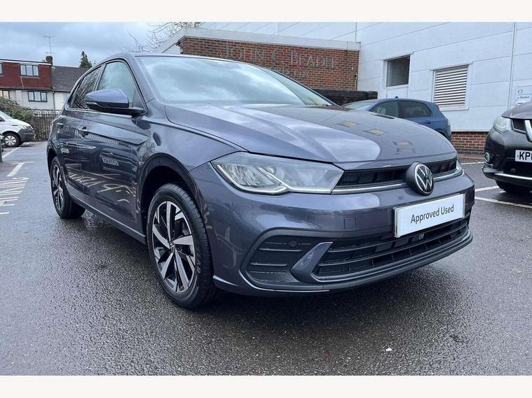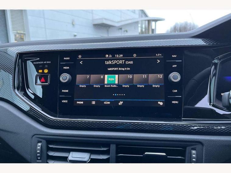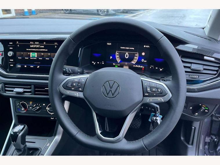 Advanced driver attention and drowsiness monitor, Bluetooth mobile phone interface, Dynamic road sign display, Emergency call service, Mobile phone preparation with inductive charging function, Multifunction front facing camera for distance control, Power assisted speed sensitive steering, Predictive adaptive cruise control without follow-to-stop and speed limiter, Preparation for navigation system with media and internet package, Preparation for We connect and We connect plus, Rear view camera, Speedo and rev counter, electronic odometer, trip, service interval display and exterior temperature gauge, Standard rear axle, Travel Assist - Lane keeping system and traffic jam assist, Travel assist including emergency assist, Trip computer, Warning signal and warning light for front and rear seatbelts not fastened, Washer fluid level indicator, Wireless app connect, Front wheel drive, Rear shock absorpion, Start-stop system with battery regeneration (recuperation - energy recovery during braking), DAB Digital radio, Diversity antenna for FM reception, Automatic dimming interior rear view mirror, Automatic headlight control with LED separate daytime running lights with coming/leaving home function, Body colour bumpers with chrome inserts, Body colour door handles, Body colour door mirrors, Electric front windows, Engine badge deletion, Headlight range adjustment, Heat insulating and laminated safety glass windshield, LED Headlights, LED rear combination lamps, Power folding adjustable/heated exterior mirrors and front passenger exterior mirror lowering function, Rain sensor, Rear electric windows, Rear fog light, Rear side wing doors, Rear tinted glass from B-pillar backwards approx 65% tinted, Rear windscreen washer and wiper with interval delay, Third brake light, 12V power socket in centre console, 2 front and 2 rear reading lights with switch off delay and dimmer, 2 USB-C ports in the front, 2 USB-C charging sockets on the center console in the rear, 3 rear head restraints, 60/40 split folding rear seat and rear seat bench not split, Carpet mats, front and rear, Ceramique roof lining, Chrome plated radiator grille inserts, air vent surrounds and light switch surrounds, Door and side trim panel, Driver and front passenger seat height adjustment, Driver/passenger sunvisors with illuminated vanity mirrors, Front centre armrest, Front seat backrest storage pockets, Front standard seats, Handbrake lever handle in leather, Hartley/Thomas cloth upholstery, Headliner in recycled material, Isofix child seat preparation easy-fit (for two outer rear seats, and front passenger seat) compatible with I-size, Leather trimmed gear knob, Luggage compartment cover, Luggage compartment lighting, Removable luggage compartment floor, Single front passenger seat, Standard climatic zones, Standard pedal cluster, Three spoke leather wrapped multifunction steering wheel with shifting paddles, Light and vision pack - Polo, 3 point height adj front seatbelts + pretensioners, 3 point seat belt for centre rear seat, 3 point seatbelts, outer rear with ECE lable, ABS, Driver and front passenger airbag with front passenger airbag deactivation, Drivers and front passengers safety optimised head restraints, ESC (Electronic stability control) + EDL (Electronic Differntial lock) and ASR (Traction control), Extended and predictive pedestrian/ cyclist protection, Front assist with autonomous emergency braking (for Adaptive Cruise Control ACC up to 130 mph), Front curtain and side airbags with center airbag, Front disc brakes, Hill hold control, Manual child lock in rear doors, Rear drum brakes, Single tone horn, Tyre pressure loss indicator, Alarm with interior protection, Anti-theft alarm system with interior monitoring, backup horn, and towing protection, Anti-theft wheel bolts, Electronic engine immobiliser, Lava stone black gloss/matt decorative inserts in dash and front door panels, 16" Torsby alloy wheels, Low rolling resistance tyres,