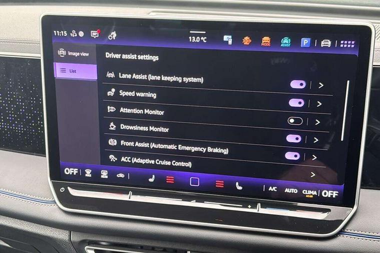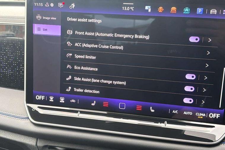 Adaptive cruise control (ACC), Advanced driver attention and drowsiness monitor, Bluetooth mobile phone interface, Car2X technology, Digital Cockpit Pro - 10.25" high resolution dash display screen with customisable menus and information, Dynamic road sign display, E-Sim card for online connectivity, eCall emergency call service, Front Assist - Autonomous emergency braking with pedestrian and cyclist monitoring, Lane change system, Side assist, Rear traffic alert and Exit warning system, Lane keeping system Lane Assist, Oncoming vehicle braking when turning including swerve support, Park assistance plus with front and rear parking sensors, Power assisted steering with speed sensitive, Start/stop system with regenerative braking, Warning signal and warning light for front and rear seatbelts not fastened, Wireless App-Connect, Adaptive chassis control DCC pro includes driving mode selection, Charging cable Mode 3 Type 2 / 3 (16A), Front shock absorption, Front wheel drive, Rear shock absorption, Digital radio reception (DAB), Diversity antenna for FM reception, Air intake with Chrome trim, Ambient lighting with logo projection, Auto dimming interior rear view mirror, Automatic headlight control system, Body coloured door handles, Chrome moldings on the side windows, Coming/leaving home lighting function, Heat insulating glass in side and rear windows, Heated rear window, Heated windscreen washer jets, High level 3rd brake light, Illuminated door handle recesses, Illuminated lightline between headlamps, Laminated safety glass windshield, LED Day time running light, Puddle lights and reverse activated passengers door mirror, Rain sensor windscreen wipers, Rear fog light on one side, reversing light on both sides, Rear side wing doors, Rear wiper, 12V outlet in center console rear and in luggage compartment, 12V socket in centre console, 3 bench rear seats in 2nd row, Air care climatronic 3 zone air conditioning system with rear air conditioning control panel, Black roof lining, Brushed stainless steel pedals, Carpet mats, front and rear, Centre console with illuminated storage compartment with sliding cover and two drinks holders, Chrome elements on the mirror switch and power window switches and door pulls, Door and side trim panel with leatherette insert, Door sill protectors, Front centre armrest, Interior ambient lighting with 30 colour options, ISOFIX anchors for child seats on outer rear seats and front passenger seat compatible with i-Size, Mechanical rear seat release, Power adjustable lumbar support in front, Rear bench seat, split folding, longitudinally movable and folding with load-through hatch and centre armrest, Single front passenger seat, Soul headlining, Sports comfort seats in front, Sun visors with illuminated vanity mirrors, Three rear head restraints, Variable luggage compartment floor, 3 point seat belt for centre rear seats, 3 Point seat belts in front with pretensioners, 3 point seatbelts in outer rear with ECE label, Driver and front passenger airbag with front passenger airbag deactivation, Electronic parking brake with auto hold, Front and rear curtain airbags, Front and rear side airbags, Front centre airbag, Front disc brakes, Manual child proof rear door locks, Rear disc brakes, Two tone horn, Warning triangle, Decorative inserts, Interior door handle in matte chrome, Soul instrument panel, Tyre mobility kit including compressor and sealing foam,