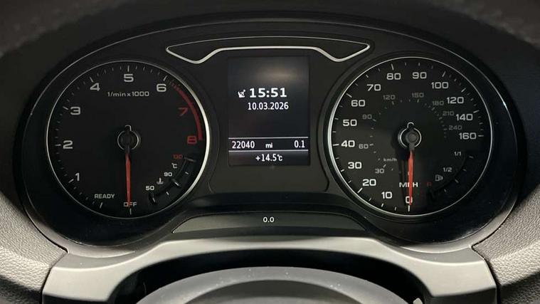 Audi connect, Audi drive select, Audi smartphone interface, Bluetooth interface, Colour driver's information system display, Service interval indicator, Voice control system, 2 USB ports, Audi music interface, Aux-in socket, DAB Digital radio, SD card slot, Aluminium side window trim, Automatic lights and wipers, Body colour bumpers, Body colour door mirrors with integral indicators, Body colour roof spoiler, Chrome exhaust tailpipes, Electric operated/heated door mirrors, Front and rear electric windows, Heated rear window, LED daytime running lights, Rain and light sensors, Sport specific side air inlet grille and diffuser insert, 3 adjustable rear headrests, 4 lashing points to secure luggage, Adjustable front armrest, Aluminium door sill trims, Driver/passenger sunvisors, Dual zone electronic climate control, Front and rear interior lights with delay, Front sports seats, Front/rear floor mats, Height/depth adjustable steering column, Illuminated glovebox, ISOFIX child seat preparation+airbag deactivation, Jack and tool kit, Storage compartment in centre console, Storage compartments in doors, Storage under driver's seat, 3 point seatbelts on all seats, ABS/EBD, ASR, Curtain airbags, Driver and passenger side airbags, Driver/Front Passenger airbags, Drivers knee airbag, EDL, Electromechanical parking brake, ESC - Electronic Stability Control + traction control, Front passenger airbag deactivation, Seatbelt warning, Tyre pressure monitor, Warning triangle and first aid kit, Anti theft alarm, Anti-theft wheel bolts, Remote control central locking, Aluminium air vent surrounds, Aluminium trim elements, Space saver spare wheel,