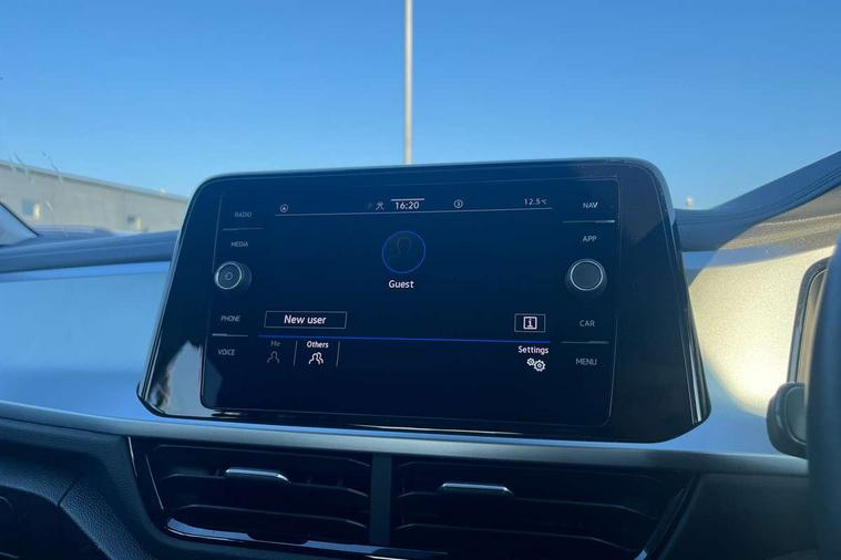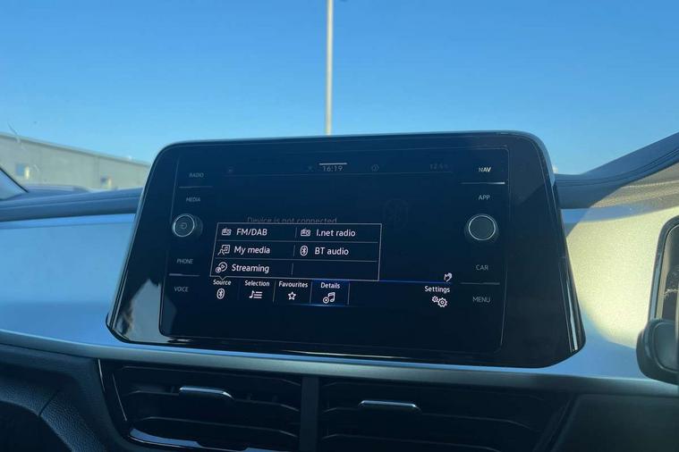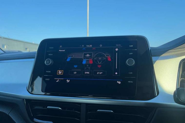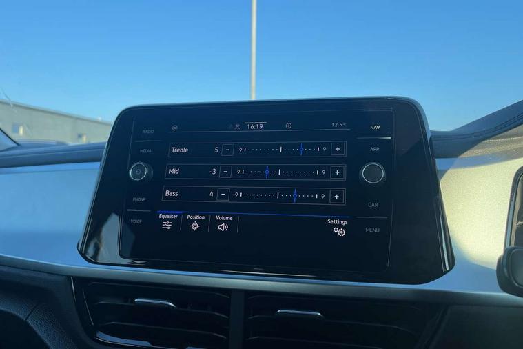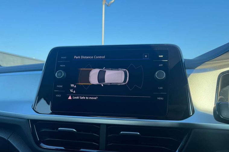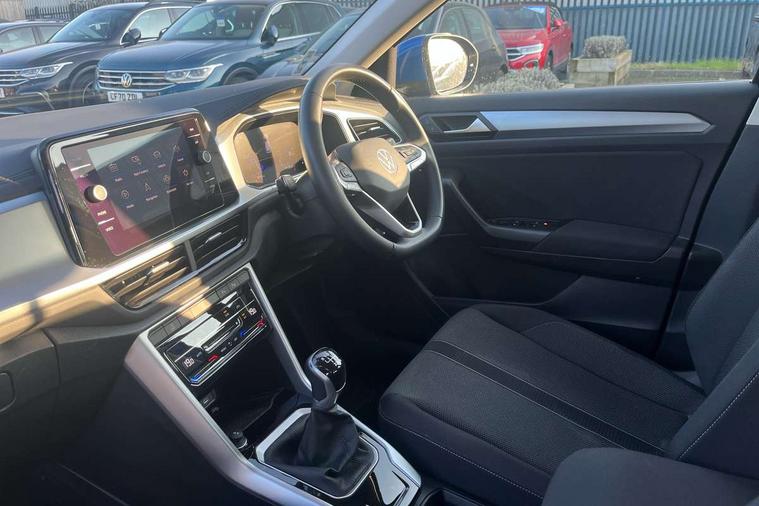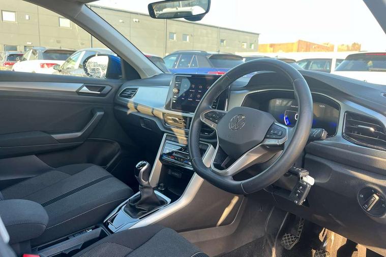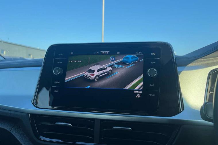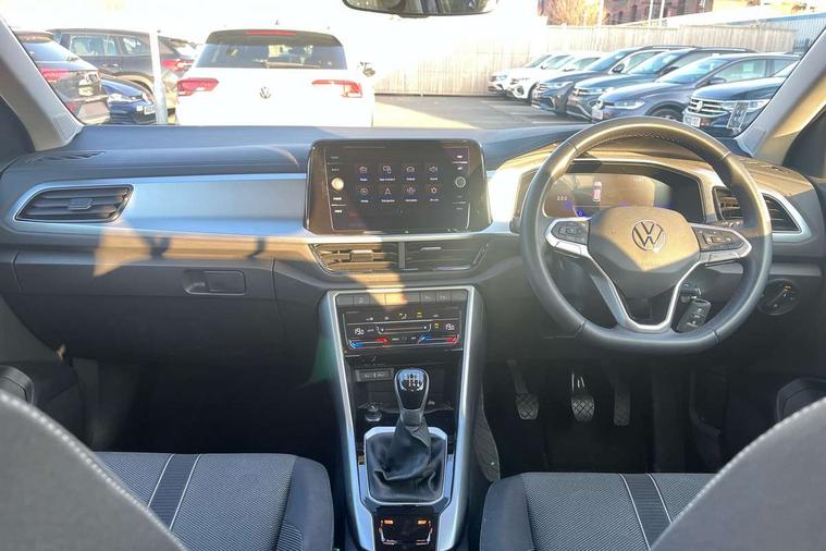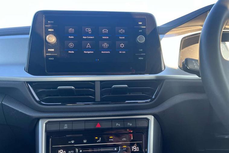 Bluetooth mobile phone interface, Driver alert system with fatigue detection, Driver tips and journey analysis, Emergency call service, Lane keeping system Lane Assist, Modified key software - reduce switch off time for key status change to Long no motion, Online services, Park assist including front and rear parking sensors, Power assisted speed sensitive steering, Service interval indicator, Tailgate/trunk lid release from outside, Think blue trainer driver tips and journey analysis, Warning sound and light for front seatbelts unfastened, Wireless app connect, Battery regeneration during braking, Front shock absorption, Rear shock absorption chassis with increased ride height, Start/stop function with battery regeneration, DAB Digital radio, Diversity antenna for FM reception, Front and rear 6 speakers, Music playback - MP3, WMA and AAC files, Premium USB cable in choice of either Apple or Android smartphone compatibility, SD card slot, Simultaneous pairing of 2 compatible mobile devices, Title and cover art display, We Connect and We Connect Plus functionality, 3rd brake light, Auto dimming interior rear view mirror, Automatic hazard lights activation under emergency braking, Automatic headlight control with LED separate daytime running lights with coming/leaving home function, Black roof rails, Body coloured bumpers and radiator grille with chrome trim and front fog lamps with chrome bezel, Body coloured exterior mirror housings and door handles, Extended roof spoiler, Exterior mirrors aspherical on driver side, convex on front passenger side, External USB type C socket and charging sockets, Front windscreen wiper with intermittent wipe and 4 position delay, Heated rear window, LED Headlights, LED rear combination lamps, LED rear number plate lights, LED tail lamp rear comination lamps, Power windows with comfort operation and circuit breaker, Rain sensor, Rear exhaust tailpipe, Rear fog light on one side and reversing lights on both sides, Rear side wing doors, Rear wash/wipe with intermittent wipe setting, Remote electrically foldable door mirrors, puddle lights and reverse activated passenger's door mirror, 12V power socket in centre console, 3 rear head restraints, 3 seat bench in 2nd row, 4 load lashing points in luggage compartment, Air care climatronic air conditoning system with active combination filter and 2-zone temperature control, Ambient lighting with mirror logo projection, Cloth upholstery, Door and side trim panel in cloth, Drawer under drivers seat, Driver/front passenger seat height adjustment, Front centre armrest, Front comfort sports seats, Front cupholders x 2, Front reading light, Instrument lighting, white adjustable panel illumination, Interior light delay, Isofix child seat preparation, Leather gearshift handle, Load-through provision with cup holder when folded down ('Unsplit rear seat bench, split folding backrest, with centre armrest), Luggage compartment lighting, Lumbar support for driver's and front passengers seat, Non-folding front passenger seat backrest, Single front passenger seat, Storage compartment in left and right luggage area, Storage compartment in rear doors, Storage compartments in driver and front passenger doors, Sunvisors with illuminated vanity mirrors, Variable boot floor, height adjustable and removable, Driver assistance pack without proactive passenger protection - T-Roc, 3 point height adj front seatbelts + pretensioners, 3 point seatbelts in outer rear with ECE label, ABS, Child locks on rear doors, Driver and front passenger airbag with front passenger airbag deactivation, Driver and front passenger safety-optimised head restraints, Drivers seatbelt reminder, Electronic parking brake, Electronic Stability Control (ESC) inc EDL (Electronic Differential Lock) and ASR (Traction Control), Front and rear passengers curtain airbag system including front side airbags, Front assist with city emergency braking and pedestrian monitoring, Front disc brakes, Front seat side impact airbags, Hill start assist, Predictive pedestrian protection, Rear disc brakes, Single tone horn, Tyre pressure loss indicator, Volkswagen roadside assistance, Alarm with interior protection, Anti-theft alarm system with interior monitoring, backup horn, and towing protection, Remote central locking with SAFELOCK, radio remote control with 2 remote control folding keys, Pewter matt decorative inserts for intrument panel, centre console and door panels at the front, Trims for alloy wheels,