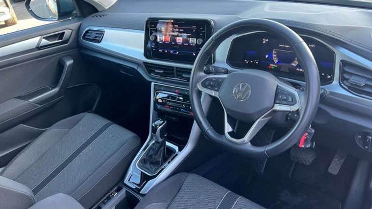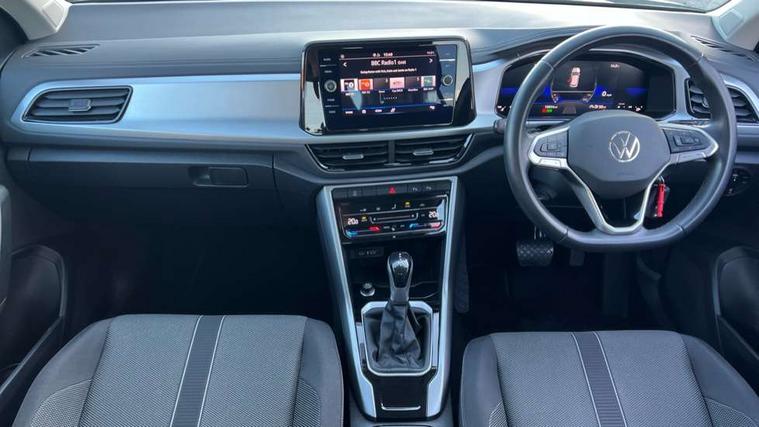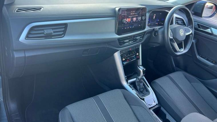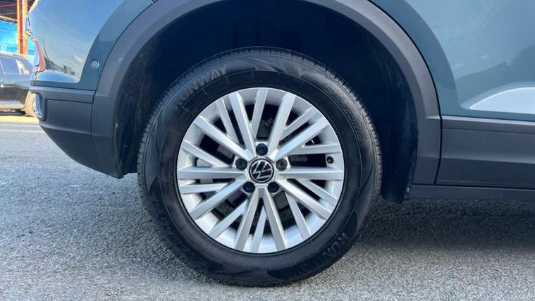 Bluetooth mobile phone interface, Driver alert system with fatigue detection, Driver tips and journey analysis, Emergency call service, Lane keeping system Lane Assist, Modified key software - reduce switch off time for key status change to Long no motion, Online services, Park assist including front and rear parking sensors, Power assisted speed sensitive steering, Service interval indicator, Tailgate/trunk lid release from outside, Think blue trainer driver tips and journey analysis, Warning sound and light for front seatbelts unfastened, Wireless app connect, Battery regeneration during braking, Front shock absorption, Rear shock absorption chassis with increased ride height, Start/stop function with battery regeneration, DAB Digital radio, Diversity antenna for FM reception, Music playback - MP3, WMA and AAC files, Premium USB cable in choice of either Apple or Android smartphone compatibility, SD card slot, Simultaneous pairing of 2 compatible mobile devices, Title and cover art display, We Connect and We Connect Plus functionality, 3rd brake light, Auto dimming interior rear view mirror, Automatic hazard lights activation under emergency braking, Automatic headlight control with LED separate daytime running lights with coming/leaving home function, Black roof rails, Body coloured bumpers and radiator grille with chrome trim and front fog lamps with chrome bezel, Body coloured exterior mirror housings and door handles, Extended roof spoiler, Exterior mirrors aspherical on driver side, convex on front passenger side, External USB type C socket and charging sockets, Front windscreen wiper with intermittent wipe and 4 position delay, Heated rear window, LED rear combination lamps, LED rear number plate lights, LED tail lamp rear comination lamps, Power windows with comfort operation and circuit breaker, Rain sensor, Rear exhaust tailpipe, Rear fog light on one side and reversing lights on both sides, Rear side wing doors, Rear wash/wipe with intermittent wipe setting, Remote electrically foldable door mirrors, puddle lights and reverse activated passenger's door mirror, 12V power socket in centre console, 3 rear head restraints, 3 seat bench in 2nd row, 4 load lashing points in luggage compartment, Air care climatronic air conditoning system with active combination filter and 2-zone temperature control, Ambient lighting with mirror logo projection, Cloth upholstery, Door and side trim panel in cloth, Drawer under drivers seat, Driver/front passenger seat height adjustment, Front centre armrest, Front comfort sports seats, Front cupholders x 2, Front reading light, Instrument lighting, white adjustable panel illumination, Interior light delay, Isofix child seat preparation, Leather gearshift handle, Load-through provision with cup holder when folded down ('Unsplit rear seat bench, split folding backrest, with centre armrest), Luggage compartment lighting, Lumbar support for driver's and front passengers seat, Non-folding front passenger seat backrest, Single front passenger seat, Storage compartment in left and right luggage area, Storage compartment in rear doors, Storage compartments in driver and front passenger doors, Sunvisors with illuminated vanity mirrors, Variable boot floor, height adjustable and removable, Driver assistance pack without proactive passenger protection - T-Roc, 3 point height adj front seatbelts + pretensioners, 3 point seatbelts in outer rear with ECE label, ABS, Child locks on rear doors, Driver and front passenger airbag with front passenger airbag deactivation, Driver and front passenger safety-optimised head restraints, Drivers seatbelt reminder, Electronic parking brake, Electronic Stability Control (ESC) inc EDL (Electronic Differential Lock) and ASR (Traction Control), Front and rear passengers curtain airbag system including front side airbags, Front assist with city emergency braking and pedestrian monitoring, Front disc brakes, Front seat side impact airbags, Hill start assist, Predictive pedestrian protection, Rear disc brakes, Single tone horn, Tyre pressure loss indicator, Volkswagen roadside assistance, Alarm with interior protection, Anti-theft alarm system with interior monitoring, backup horn, and towing protection, Remote central locking with SAFELOCK, radio remote control with 2 remote control folding keys, Pewter matt decorative inserts for intrument panel, centre console and door panels at the front, Trims for alloy wheels,