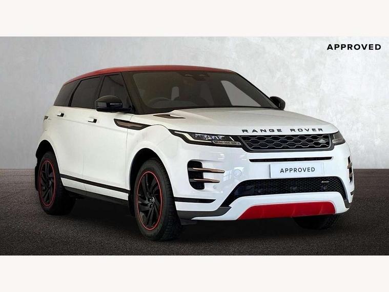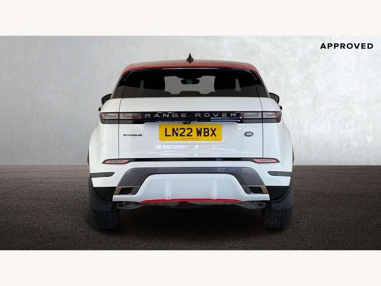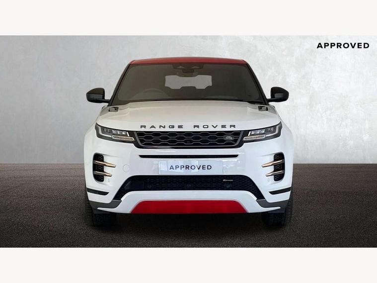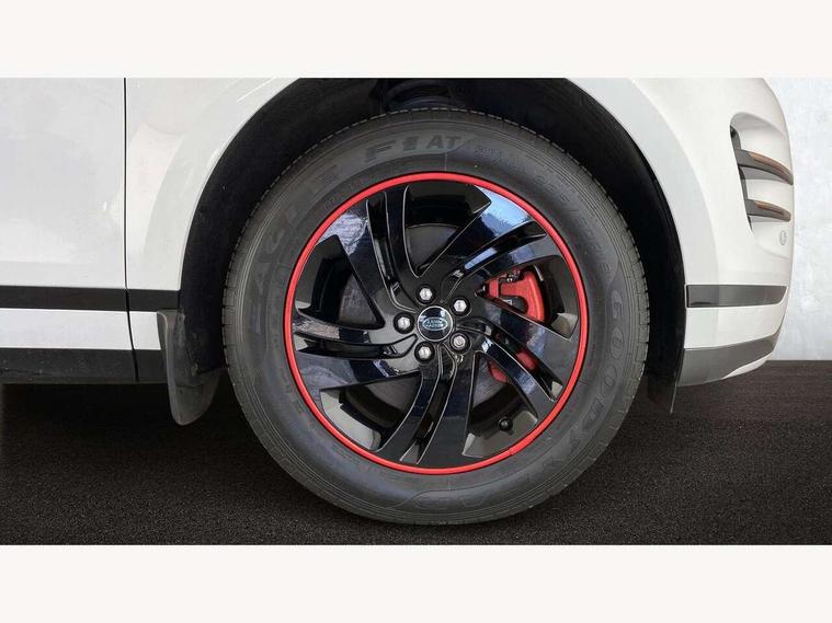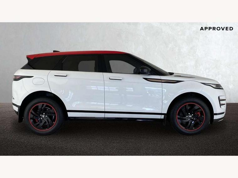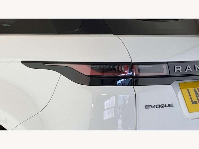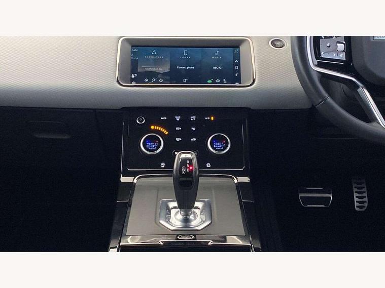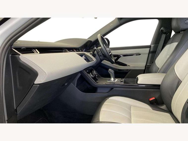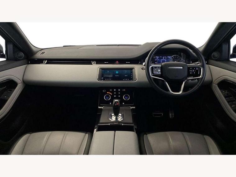 Android Auto, Apple car play, Bluetooth connectivity, Brake pad wear indicator warning light, Cruise control + speed limiter, Driver condition monitor, eCall emergency system, Electronic power assisted steering (EPAS), Front and rear parking aid, InControl remote, Land Rover InControl apps, Lane keep assist, Pivi pro connected includes upgraded infotainment, connected navigation pro, Nuance speech licence, Push button starter, Traffic sign recognition with adaptive speed limiter, Voice control system, All terrain progress control, Efficient Driveline, Passive suspension, Terrain Response 2 Auto, Digital Audio Broadcast radio-DAB, Steering wheel mounted controls, Auto headlights, Daytime running lights, Electric windows with one touch open/close and anti trap, Evoque and R-Dynamic badge, Flush deployable exterior door handles, Heated rear window with timer, Heated washer jets, Heated windscreen, Power fold, auto-dimming, heated door mirrors with approach lights and auto dimming driver side, Rain sensing windscreen wipers, Rear fog lights, Rear side wing doors, Rear wiper, Tailgate spoiler, Third brake light, 40:20:40 split folding rear seats with centre headrest and armrest, Ambient interior lighting, Bright metal pedals, Isofix system on outer rear seats, Overhead lighting console, Overhead stowage for sunglasses, Passive front head restraints, Rear air vents, Rear centre headrest, Rear head restraints, Satin chrome gearshift paddles, Single passenger seat, Sunvisors with illuminated vanity mirrors, Twin sliding front centre armrest, 3 rear 3 point seatbelts, Anti-lock braking system (ABS), Customer configurable autolock, DSC - Dynamic Stability Control, Electronic brake force distribution, Electronic parking brake, Electronic traction control, Emergency braking, Front and rear seatbelt reminder, Hill descent control, Hill launch assist, Low traction launch, Power operated child locks, Roll stability control, Six airbags - Driver and passenger airbags/driver knee airbag/front side airbag and curtain airbags, Torque vectoring brake, Tyre pressure monitoring system, Alarm, Immobiliser, Intrusion sensor, Locking wheel nuts,