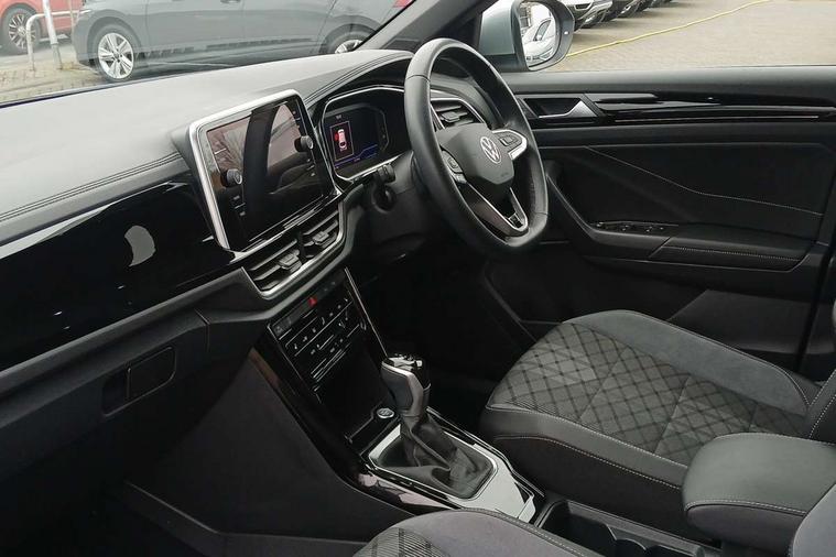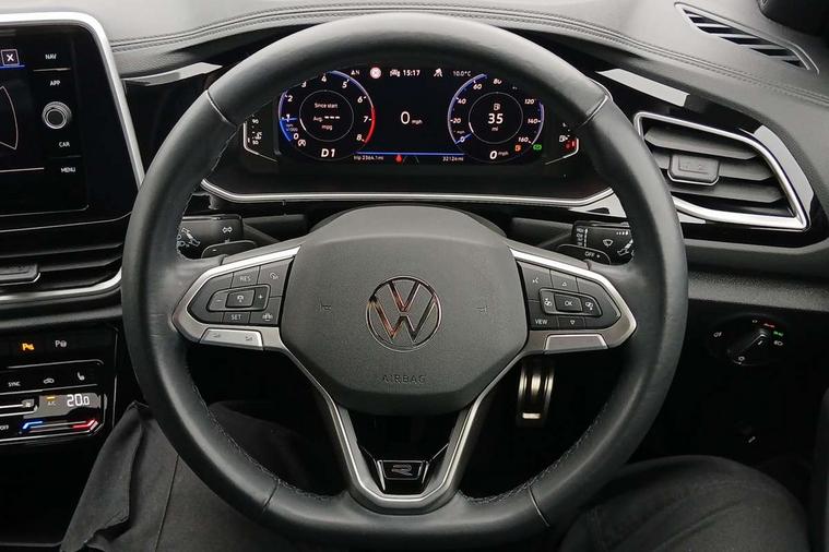 10.25" Digital cockpit pro, Advanced driver attention and drowsiness monitor, Bluetooth mobile phone interface, Emergency call service, Lane keeping system Lane Assist, Modified key software - reduce switch off time for key status change to Long no motion, Online services, Park assist including front and rear parking sensors, Service interval indicator, Tailgate/trunk lid release from outside, Think blue trainer driver tips and journey analysis, Warning sound and light for front seatbelts unfastened, Wireless app connect, Battery regeneration during braking, Start/stop function with battery regeneration, Diversity antenna for FM reception, Music playback - MP3, WMA and AAC files, Premium USB cable in choice of either Apple or Android smartphone compatibility, SD card slot, Simultaneous pairing of 2 compatible mobile devices, Title and cover art display, We Connect and We Connect Plus functionality, 3rd brake light, Auto dimming interior rear view mirror, Automatic hazard lights activation under emergency braking, Automatic headlight control with LED separate daytime running lights with coming/leaving home function, Electrically adjustable and heated door mirrors, Extended roof spoiler, Exterior mirrors aspherical on driver side, convex on front passenger side, External USB type C socket and charging sockets, Front windscreen wiper with intermittent wipe and 4 position delay, Heated rear window, LED rear combination lamps, LED rear number plate lights, Power windows with comfort operation and circuit breaker, R-Line design body coloured bumpers, Rain sensor, Rear exhaust tailpipe, Rear fog light on one side and reversing lights on both sides, Rear side wing doors, Rear wash/wipe with intermittent wipe setting, Remote electrically foldable door mirrors, puddle lights and reverse activated passenger's door mirror, 12V power socket in centre console, 3 rear head restraints, 3 seat bench in 2nd row, 4 load lashing points in luggage compartment, Air care climatronic air conditoning system with active combination filter and 2-zone temperature control, Black roof lining, Chrome plated radiator grille inserts, air vent surrounds and light switch surrounds, Door and side trim panel with leatherette insert, Front + rear carpet mats, Front centre armrest, Front cupholders x 2, Front footwell illumination, Front reading light, Front scuff plates with R Line logo, Front seat back storage pockets, Glove compartment door with light, Instrument lighting, white adjustable panel illumination, Interior ambient lighting and surround lighting, Interior light delay, Isofix child seat preparation, Leather gearshift handle, Load-through provision with cup holder when folded down ('Unsplit rear seat bench, split folding backrest, with centre armrest), Luggage compartment lighting, Single front passenger seat, Stainless steel pedals, Storage compartment in left and right luggage area, Storage compartment in rear doors, Storage compartments in driver and front passenger doors, Sunvisors with illuminated vanity mirrors, Variable boot floor, height adjustable and removable, Driver assistance pack without proactive passenger protection - T-Roc, 3 point height adj front seatbelts + pretensioners, 3 point seatbelts in outer rear with ECE label, ABS, Child locks on rear doors, City emergency braking and pedestrian monitoring, Driver and front passenger airbag with front passenger airbag deactivation, Driver and front passenger safety-optimised head restraints, Drivers seatbelt reminder, Electronic parking brake, Electronic Stability Control (ESC) inc EDL (Electronic Differential Lock) and ASR (Traction Control), Front and rear passengers curtain airbag system including front side airbags, Hill start assist, Predictive pedestrian protection, Rear disc brakes, Two tone horn, Tyre pressure loss indicator, Volkswagen roadside assistance, Anti-theft alarm system with interior monitoring, backup horn, and towing protection, Remote central locking with SAFELOCK, radio remote control with 2 remote control folding keys, Trims for alloy wheels,