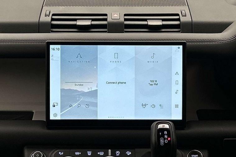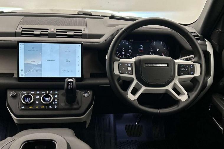 Customer Configurable Autolock, 11.4" touchscreen, 360 parking aid, 3D Surround Camera with 360 View, 180 Rear View, Front Traffic Detection, Forward Vehicle Guidance, Tow Hitch Assist and clear sight Ground View, Adaptive cruise control, Blind spot assist, Brake Hold, Driver condition monitor, Electric power assisted steering (EPAS), Interactive Driver display, Lane keep assist, Low traction launch, Pivi pro connected, Rear collision monitor, Rear traffic monitor, Traffic sign recognition adaptive speed limiter, Trip computer, Tyre pressure monitor, Android Auto, Apple CarPlay, DAB Radio (Digital Audio Broadcasting), Meridian 280W sound audio system with 7 speakers with subwoofer, Alpine lights, Assisted tailgate, Automatic headlight levelling, Automatic headlights and rain sensitive front wipers, Body coloured bonnet, Body coloured exterior Utility Panel, Centre high mounted stop light, Electric heated/power fold door mirrors with approach lights and auto dimming driver side, Electric windows with one touch open/close and anti-trap, Follow me home lighting, Front fog lights, Heated rear window with timer, Heated windscreen, LED tail light, Matrix LED headlights with signature DRL, Privacy glass, Puddle lights, Rear fog lights, Rear wash wiper, Side-hinged tailgate, Soft close tail door, Standard roof, Standard tail door, Standard tread plates, Additional lashing points, Black exposed rear recovery eyes, Configurable cabin lighting, Dual zone climate control, Durable rubber cabin flooring, Electric adjustable steering column, Footwell lights, Front jump seat and folding front centre armrest, Full height bulkhead behind row 1 seats, Glovebox storage, Heated steering wheel, High sided rubber mats, Leather steering wheel, Loadspace cover, Loadspace hooks, Loadspace rubber mat, Overhead stowage for sunglasses, Rear centre headrest, Rear reading light, Sunvisors with illuminated vanity mirrors, Upgraded loadspace LED lighting, Online pack - Defender with data plan, Brake pad wear indicator, Electronic traction control, Emergency braking, Front airbags, with passenger seat occupant detector, Power operated child locks, Remote for (e-Call, Optimised assistance call, InControl app, Climate, beep and flash and door), Seat belt reminder, Intrusion sensor, Keyless entry system, Locking wheel nuts, Spare wheel lock, 8 speed automatic transmission, ABS and EBA, All wheel drive, CBC - (Cornering brake control), Dynamic stability control, Electronic brake force distribution, Electronic park brake, Gradient acceleration control, Hill Descent Control, Hill start assist, Particulate filter (DPF), Push button start, Roll stability control, Trailer stability assist, Twin speed transfer box (high/low range), Extended leather upgrade,