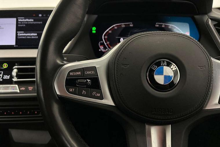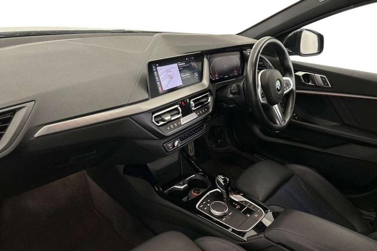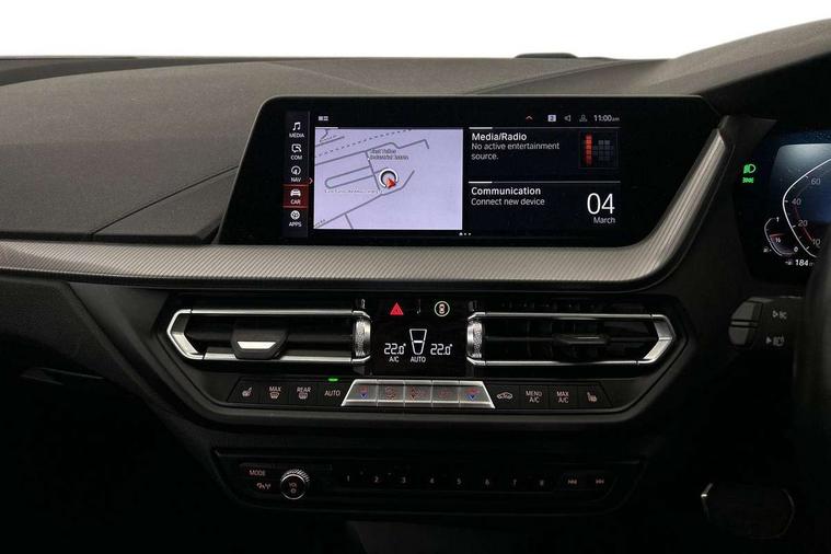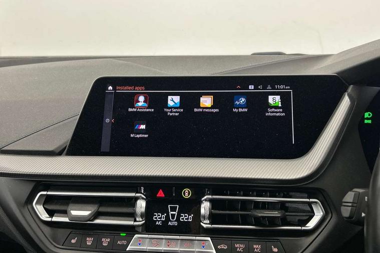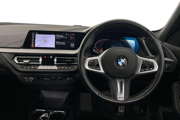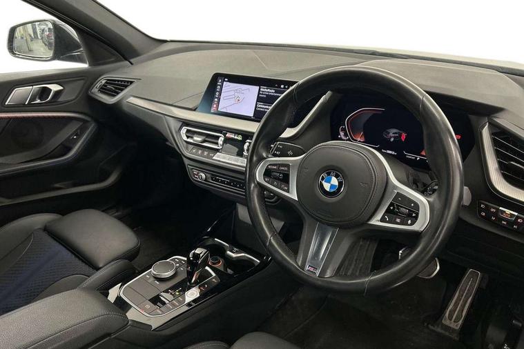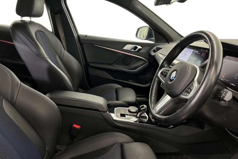 Active guard plus, Attentiveness assist, BMW Online services, BMW Teleservices, Check Control warning system for monitoring of lights and door/luggage compartment open warning, Connected eDrive Services, Eco pro mode, Integrated owners handbook, Oil sensor for level and grade, On board computer, Optimum shift indicator, Personal Profile, Pull away assistant, Speed limiter, Aluminium lightweight construction, Anti roll bar front and rear, Balancer shaft, Double VANOS, Drive Performance Control, Electronic differential lock, High precision injection, M sport suspension, Petrol Particulate Filter, VALVETRONIC engine management, Bluetooth audio streaming, DAB Digital radio, Auto dimming rear view mirror, Automatic headlight beam throw control, Automatic windscreen wipers and automatic headlight, Body colour door handles, Body colour mirror caps, Chrome 'M' logo side designation, Chrome exhaust tailpipe in single, round (Exhaust tailpipe, stainless steel - single, round), Chrome kidney grille frame with Satin Aluminium struts, Direction indicator side lights in exterior mirrors, Electric folding and anti dazzle exterior mirrors, Fading support, Follow me home headlights, Front and rear bumper system with replaceable deformation elements, Front and rear electric windows with open and close fingertip control, anti trap facility and comfort closing, Front door sill finishers in black plastic with M designation in metallic look, Green tinted heat protection glazing, Heated, electrically adjustable exterior mirror aspheric on driver side, convex on passenger side, High gloss shadowline window frame, Recess cover mirror frames and B/C pillar embelisher trim, High level third brake light, LED daytime running lights, LED eyebrow turn indicators, LED front fog lights, Lightweight engineering, Matt black air guide grilles, Model designation on right side of tailgate, Nearside reverse light in rear light cluster, Preparation for high beam assistant, Rain sensor including auto headlights activation, Rear fog lights, Rear window wiper, Shark fin antenna, Visible VIN plate, Welcome lighting, 12V power socket in centre console, 3 rear seat head restraints, 3 spoke M sports design leather steering wheel finished in nappa leather with specific M badge, Anthracite headlining, Anthracite Velour floor mats, Child seat ISOFIX attachment for two outer rear seats and front passenger seat with anchorage points, Conditioned based service, Dakota leather upholstery with perforation and contrast stitching, Driver and front passenger seat heating, Folding rear clothes hook, Four grab handles integrated in roof lining, Front and rear door pockets, Front and rear door pockets with bottle holders, Front and rear side armrest integrated into door trim, Front armrest foldable with integrated storage compartment, Front sports seats with electric side bolster adjustment, Glove compartment, Height adjustable front head restraints, Manual adjust steering wheel, Multi-function controls for steering wheel, Storage compartment in centre console, Sun visors with vanity mirrors and insert tab, Two zone automatic air conditioning, Additional interior lighting pack - 1 Series, Connected pack professional - 1 Series, Extended storage pack - 1 Series, Interior lights pack - 1 Series, Luggage compartment pack - 1 Series, M Sport exterior styling aerodynamics pack - 1 Series, 2 tone horn, 3 point seatbelts on all seats, front pyrotechnic belt tensioners, stopper and belt force limiters, rear coded belt buckles, Airbags - front driver/passenger, front & rear curtain, front side, Anti lock braking system (ABS) with brake assist, BMW emergency call, Brake drying, Braking readiness, Crash sensor activating central locking release, hazard warning lights, fuel cut off, interior lighting + activation of safety battery terminal clamp, Driver and front passenger seat belt security check, Dynamic stability control + (DSC+), Dynamic Traction Control - DTC, Electrically operated hand brake, Front and rear disc brakes, Front passenger manual airbag deactivation, Seatbelt warning, Side impact protection, Tyre pressure monitoring system, Warning triangle and first aid kit, Automatic drive away locking facility, Central locking switch for all doors, fuel filler cap and luggage compartment, Deadlocking function system to all doors, Locking wheel bolts, Remote control with integrated key with High-gloss Black inlay and M designation and 1 button for open/ close lock, window, open luggage compartment, Start/stop button with comfort go keyless engine start and auto start stop deactivation button, Thatcham Cat.1 alarm and immobiliser, Contrast stitching on instrument panel, Reduced rolling resistance tyres,