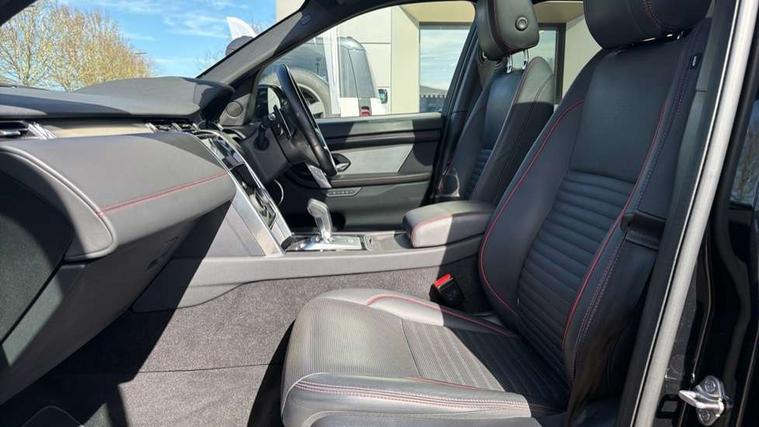 10" touch screen, Adaptive cruise control, Android Auto, Apple CarPlay, Blind spot assist, Clear exit monitor, Driver condition monitor, eCall emergency call system, Front and rear parking aid, InControl remote premium, Lane keep assist, Locking fuel flap, PAS, Pivi Pro connected navigation system with upgraded Infotainment, Powered tailgate/boot lid, Push button start, Rear collision monitor, Rear traffic monitor, Service interval indicator, Traffic sign recognition with adaptive speed limiter, Trip computer, Wade Sensing, 7 kW onboard charger, All terrain progress control, Coil suspension system, Configurable dynamics, Dynamic stability control, Home charging cable, Public charging cable, Terrain Response 2, Bluetooth connectivity including audio streaming, Digital Audio Broadcast radio-DAB, Steering wheel mounted audio controls, 3rd brake light, Automatic headlight levelling, Automatic headlights, Electric front/rear windows, Electric heated/power fold door mirrors with approach lights and auto dimming driver side, Front and rear recovery eyes, Front fog lights, Heated rear window, Heated windscreen including heated washer jets, Illuminated metal front treadplates with R dynamic branding, P300e badge, Privacy glass, R Dynamic badge, Rain sensing windscreen wipers, Rear fog lights, Rear side wing doors, Rear wing door, Rear wiper, 5 standard seating configuration, Bright metal pedals, Centre console with armrest, Configurable cabin lighting, Electrically adjustable steering column with memory, Footwell lights, Front and rear grab handles, Front passenger isofix child seat attachment, Heated steering wheel, Loadspace cover, Loadspace light, Overhead lighting console, Overhead stowage for sunglasses, Rear headrests, Satin chrome gearshift paddles, Sunvisors with illuminated vanity mirrors, Tilt/reach adjustable steering wheel, Black exterior pack - Discovery sport R-Dynamic SE/HSE, Online pack with data plan - Discovery, 3 point seatbelts on all seats, ABS, Brake hold function, Child locks on rear doors, Collision mitigation braking system, Cornering brake control (CBC), Driver/Front Passenger airbags, Drivers knee airbag, Electronic brake force distribution, Electronic parking brake, Emergency brake assist, ESP + traction control, Hill descent control, Hill launch assist, Pedestrian airbag system, Rear seat ISOFIX, Roll stability control, Side and curtain airbags for front and 2nd row seats, Trailer stability control, Tyre pressure monitoring system, Battery Back Up System (BBUS) with tilt sensor, Global lock and unlock switch on driver door, Intrusion sensor, Keyless entry, Locking wheel nuts, Centre stack rails in noble chrome,