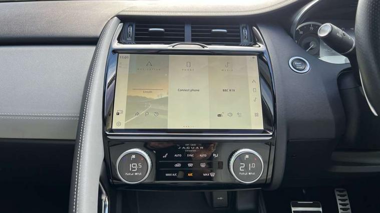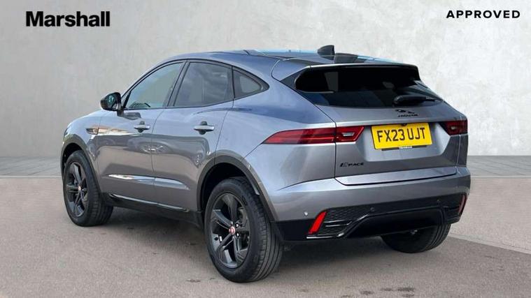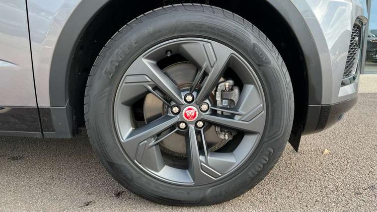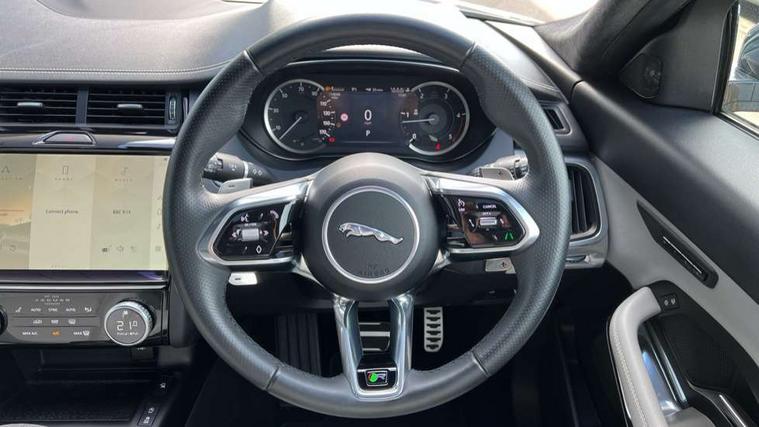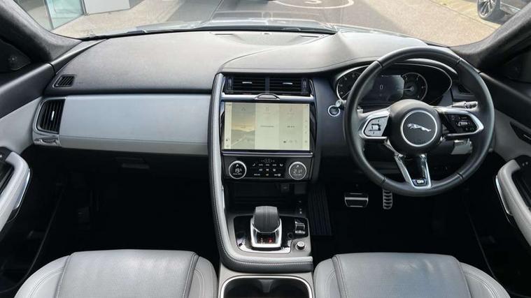11.4" touchscreen with central ICP, 12.3" full digital instrument panel, Adaptive cruise control, Android Auto, Apple car play, Driver condition monitor, Eco driving style assistant, Electric power assisted steering, Emergency services call system, Front and rear parking aid, InControl remote, Jaguar drive control with adaptive surface response, Jaguar Toggle sport shift selector, Lane keep assist, Outside temperature gauge, Pivi pro connected infotainment system with smart settings and navigation pro, Push button start, Speed proportional steering, Traffic sign recognition with adaptive speed limiter, Trip computer, Voice control system, Configurable dynamics, Diesel particulate filter, Efficient Driveline, Passive suspension, AM/FM DVD MP3 radio, Bluetooth connectivity including audio streaming, DAB digital audio broadcast, Dynamic volume control, 3 flash lane change indicators, Approach Illumination, Auto high beam assist, Automatic headlights, Body colour door handles, Body colour upper spoiler, Body coloured side sills, Centre high-mounted stop light, Electric front/rear windows with one touch/auto up/down, Electric heated/power fold memory door mirrors with approach lights and auto dimming driver side, Embossed leaper for grained and windsor leather, Fixed panoramic glass sunroof, Heated washer jets, Heated windscreen, Jaguar script and leaper, LED tail lights, LED third brake light, Narvik black antenna pod and side pillar finisher, Narvik black door mirrors, Narvik black front and rear low bumpers, Narvik black lower side cladding, Privacy glass, R Dynamic badge, Rain sensor windscreen wipers, Rear fog lights, Rear side wing doors, Rear wash wiper, Satin black grained front outer grille, low grill mesh and low bumper valence, side fender vent mesh and finisher, rear tow eye cover and grille mesh, Twin exhaust tailpipe, Variable front intermittent wipers, 3 rear head restraints, 3 seat bench in 2nd row, 40:20:40 rear seat fold, Bright metal pedals, Carpet mats, Centre console with armrest, Enhanced ambient lighting, Hooks loadspace, ISOFIX on outer rear seats, Loadspace cover, Loadspace light, Loadspace storage net, Luggage tie-downs in loadspace, Manual height/reach adjust steering wheel, Multifunction steering wheel, Overhead lighting console, Passive front head restraints, Power sockets, R-Dynamic branded leather steering wheel, Rear air vents, Rear bench seats, Satin chrome gearshift paddles, Single front passenger seat, Sunvisors with illuminated vanity mirrors, Twin front cupholders, Two zone climate control, Exterior black pack - E-pace, 3x3 point rear seatbelts, ABS, All surface progress control (ASPC), Child locks on rear doors, Customer configurable autolock, DSC - Dynamic Stability Control, Electronic brake force distribution, Electronic parking brake, Emergency brake assist, Emergency braking, Front airbags with passenger seat occupant detector, Front and rear curtain airbags, Front and rear seatbelt reminder, Front passenger airbag deactivation, Front seatbelt pretensioners, Front side airbags, Height adjustable front seatbelts, Hill start assist, Low friction launch, Power child locks, Torque vectoring brake, Tyre pressure monitoring system, Intrusion sensor and alarm, Locking wheel nuts, Remote central locking,