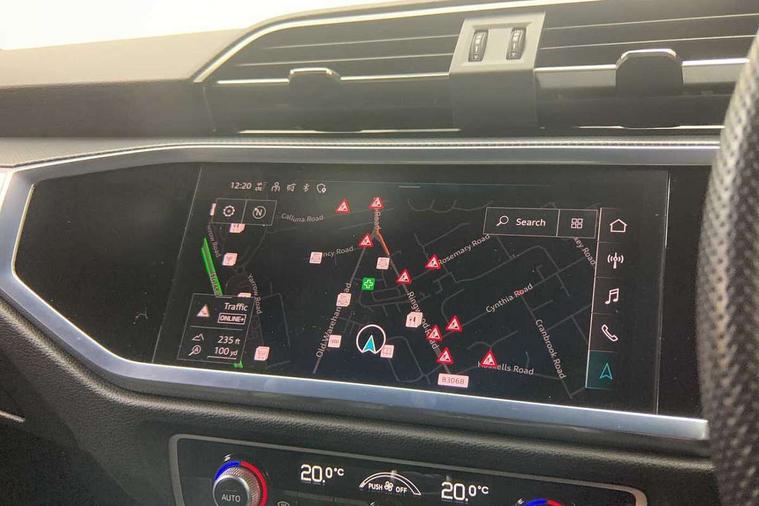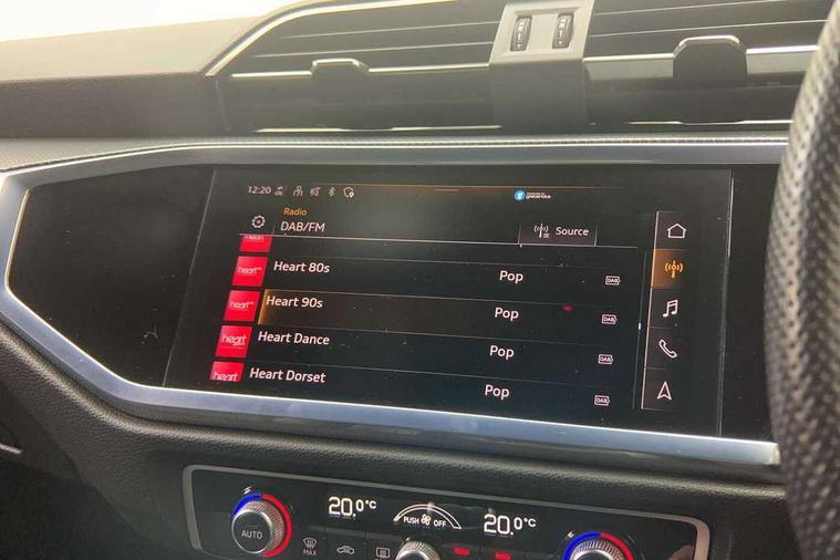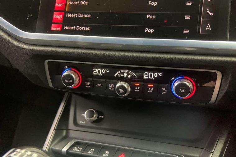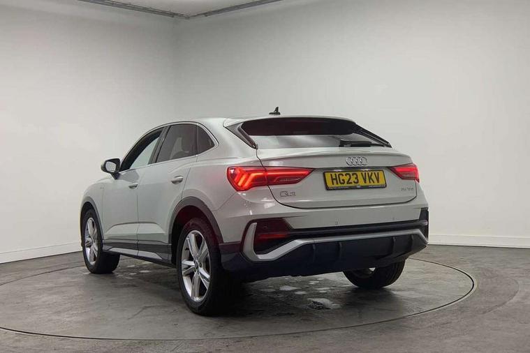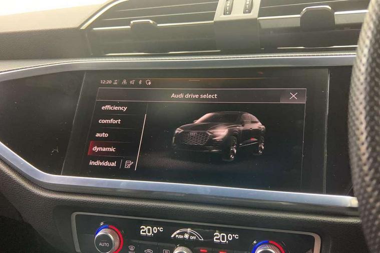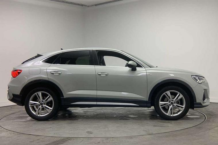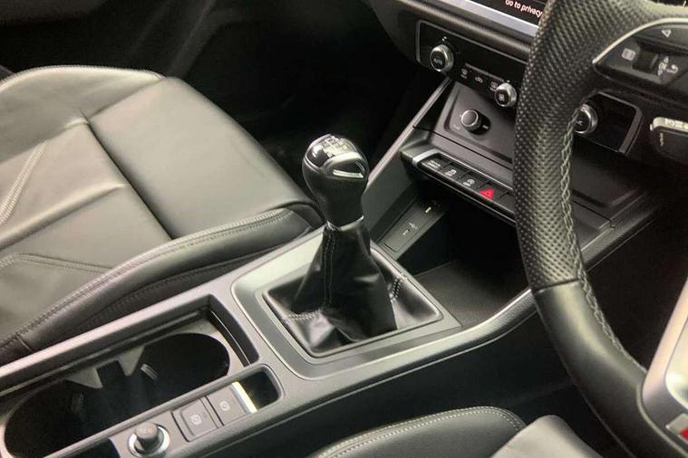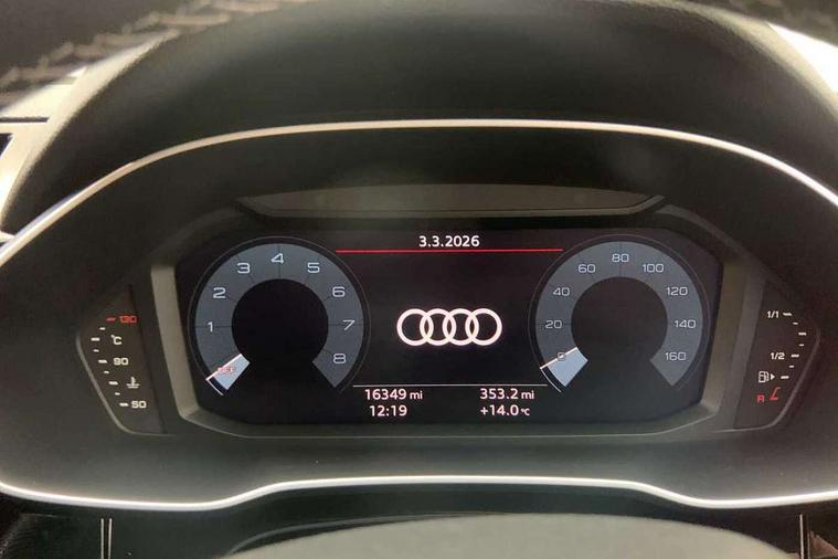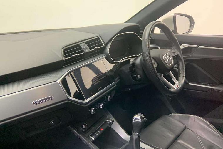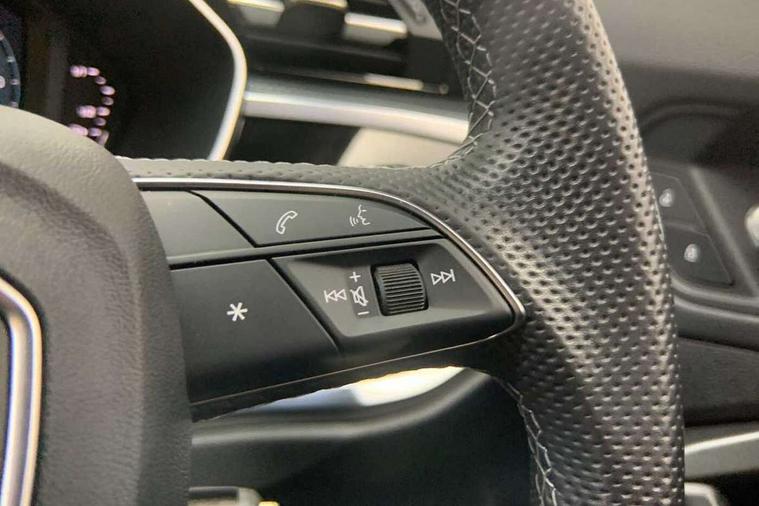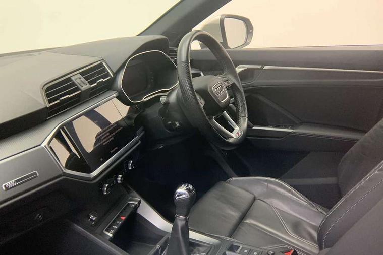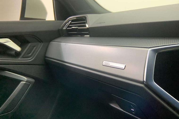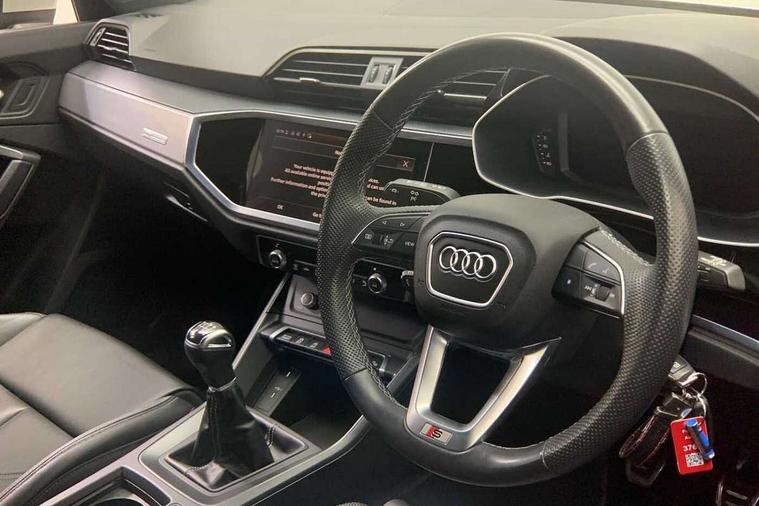 Audi drive select, Audi lane departure warning, Audi Virtual Cockpit - 10.25" display, Bluetooth interface, Camera based traffic sign recognition, Cruise control + speed limiter, Legal emergency call, MMI Navigation Plus with high resolution 10.1 inch touchscreen colour display, Power operated tailgate, Progressive steering, Rear parking sensors, Service interval indicator, Smartphone interface includes wireless Apple carplay/Android Auto, Start stop system with recuperation, Voice control system with natural language interaction, Sports suspension, 2 USB-C ports with charge and data functions, 6 passive loudspeakers, DAB digital radio module, Acoustic windscreen, Aluminium window trim, Auto dimming frameless rear view mirror, Diffuser grille in grained matt black, Diffuser trim in selenite silver, Electrically folding, adjustable and heated door mirrors with integrated LED side indicators and kerb view function for passenger side, Front and rear electric windows, Front fog lights, Front side air inlets in selenite silver, Front underbody protection in manhattan grey paint finish, Grille surround in aluminium silver matt, High gloss black finish B and C pillars, LED Dynamic rear indicators, LED headlights with LED daytime running lights, LED rear lights, LED third brake light, Privacy glass dark tinted rear and rear-side windows (from B-pillar backwards), Radiator grille in anthracite black with inlay in matt aluminium silver, Rain and light sensors, Rear side wing doors, Rear underbody protection in matt black, Rear wiper, S line badges on front wings, S line front and rear bumpers and side skirts in contrasting Manhattan grey paint finish, Side skirt insert in matt Platinium grey, Variable front intermittent wipers, 12V socket in rear centre console, 3 seat bench in 2nd row, 3 spoke leather multifunction steering wheel features S badging and grips in perforated leather with contrast stitching, 40:20:40 folding with manual adjustment for 60:40 forwards/backwards position and backrest angle, Adjustable rear seat bench/backrest with centre armrest and cupholder, Black cloth headlining, Dual zone electronic climate control, Front and rear black floor mats with contrast stitching, Front and rear headrests, Front and rear roof module including reading lights, Front centre armrest, Glove compartment lighting, Height and reach adjustable steering wheel, Illuminated door sill trims with S logo, ISOFIX child seat mounting for front passenger with airbag deactivation and outer rear seat including top tether attachment point for outer rear seats, Luggage compartment light right in white, Luggage compartment sill protection in stainless steel, Manual front seats with height adjustment, Perforated leather gearknob, Single front passenger seat, Stainless steel pedals, Ambient lighting pack - Q3, Non smoking pack - Q3, 3x3 point rear seatbelts, 6 airbags - Driver, front passenger, curtain and side windows, Audi pre-sense front with pedestrain and cyclist recognition, Electrically operated child locks on rear doors, Electromechanical parking brake, Electronic stabilisation control including ABS, ASR and EDL, Front seatbelt reminder, Hill descent control, Hill hold assist, Pre sense basic, Seatbelt monitoring, Tyre pressure warning, Warning triangle and first aid kit, Anti theft alarm, Anti theft wheel bolts, Immobiliser, Remote central locking, Aluminium look interior elements, Black dashboard, Dark matt brushed aluminium inlay, Detail dashboard around MMI touch colour display in glass look, black with surround in aluminium look, Leatherette door armrest,