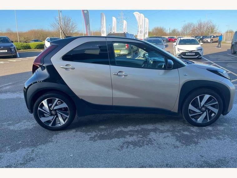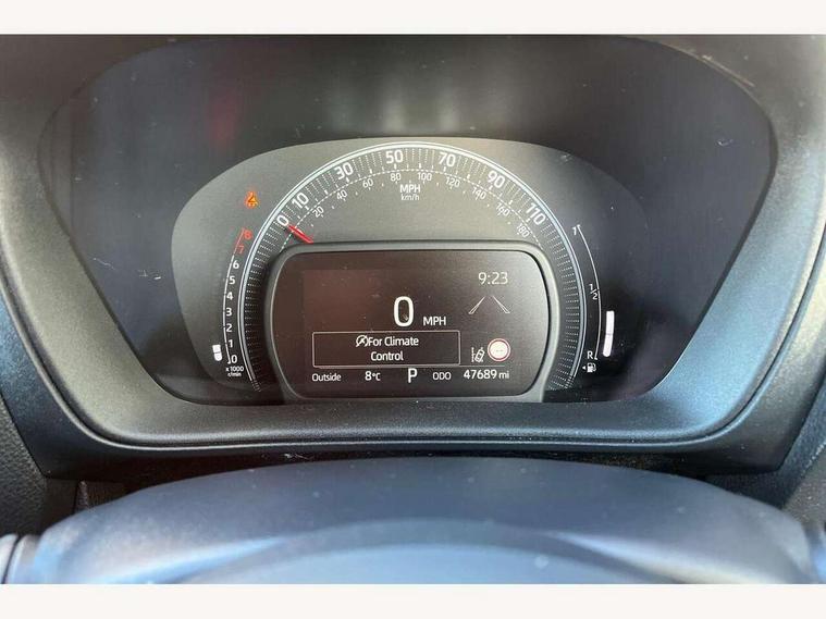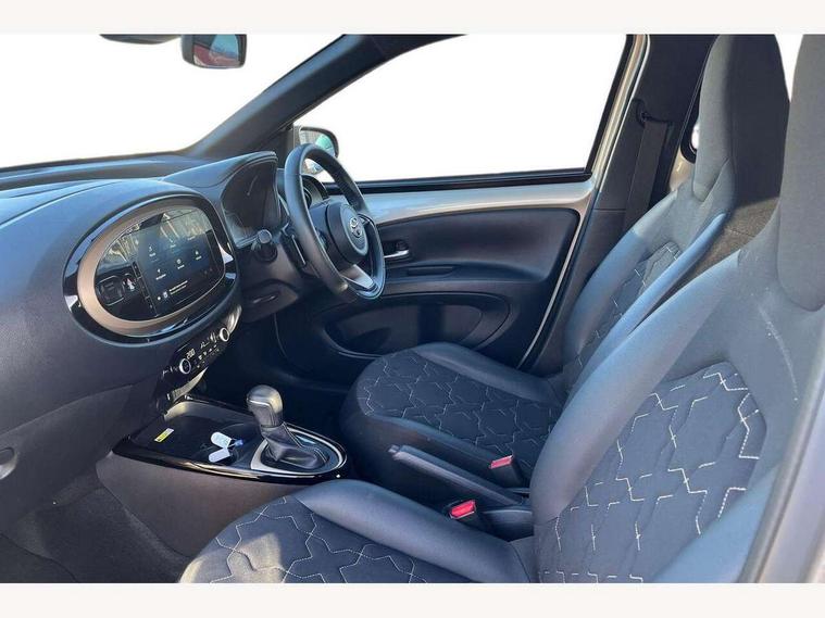 4.2" TFT colour screen, Adjustable speed limiter, Analogue speedometer, Bluetooth connectivity, Digital tachograph, Driver attention alert system, eCall emergency call system, ECO-driving indicator, Electric power steering, Front and rear parking sensors with auto brake, Intersection turn assist, Key reminder warning, Noise reduction kit, Pre collision system with emergency steering assist, Remote boot door release on key, Reversing camera with static guide lines, Smart entry and push button start, Speed limit display, Start and stop, Wireless charger, Wireless Smartphone Integration includes Apple CarPlay and Android auto, Vehicle Stability Control (VSC), 4 speakers, 9" HD multimedia display touch screen with Toyota smart connect, DAB digital audio broadcast, USB connector, Auto headlights, Auto wipers, Automatic headlights cut-off, Automatic high beam On/Off switch, Bicycle towing hook, Black fog light surrounds, Black side protection mouldings, Black wheel arch mouldings, Body colour door handles, Body coloured front bumper, Boot door scuff plate, Eclipse black rear bumper, Electric heated door mirrors, Follow me home headlights, Front and rear underruns in silver, Front fog lights, Front power windows, Gloss black door mirrors, Gloss black upper front grille, Headlight cut-off reminder, LED daytime running lights guide, LED front light guide, LED High mounted stop lamp, LED projector headlights, Manual day/night rear view mirror, Manual headlight levelling, Pagoda roof, Power adjustable door mirrors, Privacy glass, Rain sensor, Rear combination lights LED bulb type, Rear side wing doors, Rear windscreen defogger, Rear windscreen wiper, Remote hazard lights system, Short antenna, Variable intermittent windscreen wipers, 12v power outlet - front, 2 seat bench in 2nd row, 3 spoke leather steering wheel, 50/50 split folding rear seat, Adhesive roof headlining, Adjustable speed limiter switch on steering wheel, Audio and telephone switches on steering wheel, Auto air conditioning, Black roof lining, Body colour satin anodised insert on steering wheel, Boot light, Centre room light, Chrome interior door handles, Chrome surround on air conditioning buttons, Clean air filter, Floor mats, Front and rear cup holders, Front head rest deco art, Front head restraints, Gear shift indicator, Height adjustable driver seat, Intelligent adaptive cruise control switch on steering wheel, ISOFIX child restraint system on rear seats, Lane departure alert switch on steering wheel, Leather gearshift knob, Light blue ambient lighting in centre console, Manual tilt steering wheel, Manually reclining and sliding driver seat, Manually reclining and sliding front passenger seat, Multimedia switches on steering wheel, Paddle shift levers on steering wheel, Partial synthetic leather upholstery, Pollen filter, Rear door pockets, Rear head restraints, Remote air-conditioning system, Satin silver insert on gear shift knob, Single compartment glovebox with lights, Single front passenger seat, Soft tonneau cover, Sun visors with mirror on driver and passenger side, Voice recognition switch on steering wheel, Toyota safety sense pack - Aygo X, Anti lock braking system + Electronic brake force distribution, Child safety door lock, Emergency brake light signal (EBS), Hill start assist control (HAC), Passenger airbag on/off switch, Seat belt reminder for front and rear seats, Supplement restraints system (SRS) - 6 airbags, Traction control, Tyre pressure warning system, Immobiliser, Remote power door locks, Black wheel centre caps, Tyre repair kit,