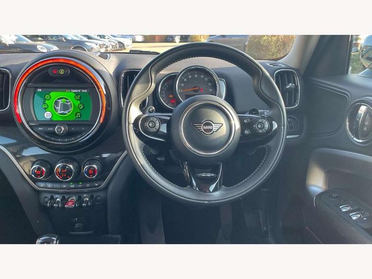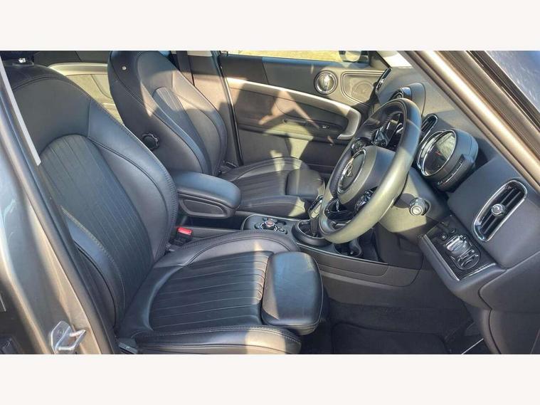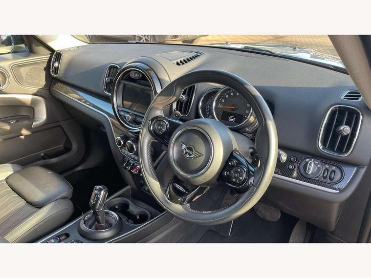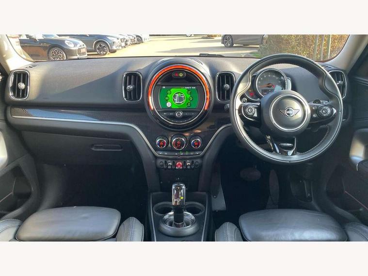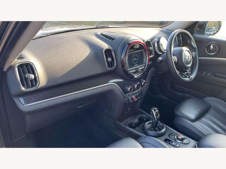 Active Guard incl speed limiting and lane departure functions with auto steering, and front collision warning with brake intervention, Automatic start/stop function with brake energy recuperation, Compatible mobile phone bluetooth with audio streaming, Electro-mechanical speed dependant steering assistance, Instrument cluster, MINI Driving Modes - centre toggle switch to control driving setting (sport, mid and green), Mini E-call, MINI TeleServices, On board computer, Rear parking distance control, Double Vanos system, Fully variable valve control, High precision injection, Performance Control, Steptronic sport transmission with double clutch and steering wheel paddles, FM tuner and DAB digital radio, Bonnet scoop, Chrome border honeycomb structure radiator grille with S badge, Chrome fuel filler cap, Chrome line exterior, Day time driving lights, Dynamic brake lights, Electric windows, Heated rear window, Heated windscreen washer jets, Metal door sill strips with Cooper S imprint, Model logo, Model logo on Tailgate, Rain sensor with auto headlights, Rear fog lights, Rear window wiper, Side scuttle panel with integrated indicator, Split rear doors, Sun/heat protection glass, Twin exhaust tailpipe, White indicator lenses, 12V Accessory socket in centre console, 360L luggage compartment capacity, 4 lashing eyes in luggage compartment, 40:20:40 split folding rear seats, Chrome interior highlights, Cupholders, English handbook, Front headrests, Glove compartment, Height and length steering column adjustment, Interior lighting with 12 basic colours selectable via toggle switch in roof, Isofix rear child seat preparation, Leather gearshift lever and handbrake gaiters, LED reading lights, vanity mirror lights, front foot well light and spotlight on front seats, Manual air conditioning, Mechanical seat adjustment, driver seat height adjust, forward/back and front seats backrest, MINI Yours fine walk nappa leather steering wheel with contrast stitching in silver and MINI Yours badge, Multifunction steering wheel, Passenger seat height adjuster, Rear headrests, Storage compartments in doors, Sunvisors with vanity mirrors, Excitement pack - Countryman, Navigation pack - Countryman, 2 tone horn, 3 point seatbelts on all seats, 6 Airbags - front, side, head and seat belt tensioners, Anti-lock braking system (ABS), DSC - Dynamic Stability Control, Electronic handbrake, Front and rear disc brakes, Hill start assist, Tyre pressure monitoring system, Alarm system with tilt sensor, monitoring doors, bonnet interior and tailgate, Auto drive away locking, Deadlocking function, Electronic vehicle immobiliser, Locking wheel bolts, Start/stop toggle with keyless go, Chrome line interior, Tool kit,